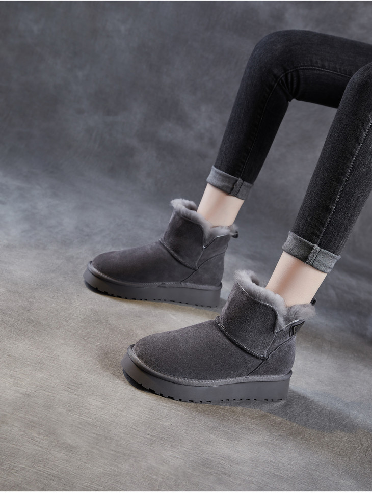 羊毛保暖厚底雪地靴子,加绒加厚百搭短筒真皮棉鞋ZM258715