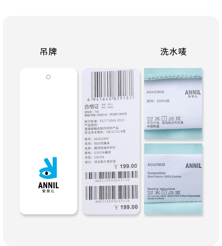 女童全棉短袖T恤圆领上衣夏季新款安奈儿童装实体店同款AG421800