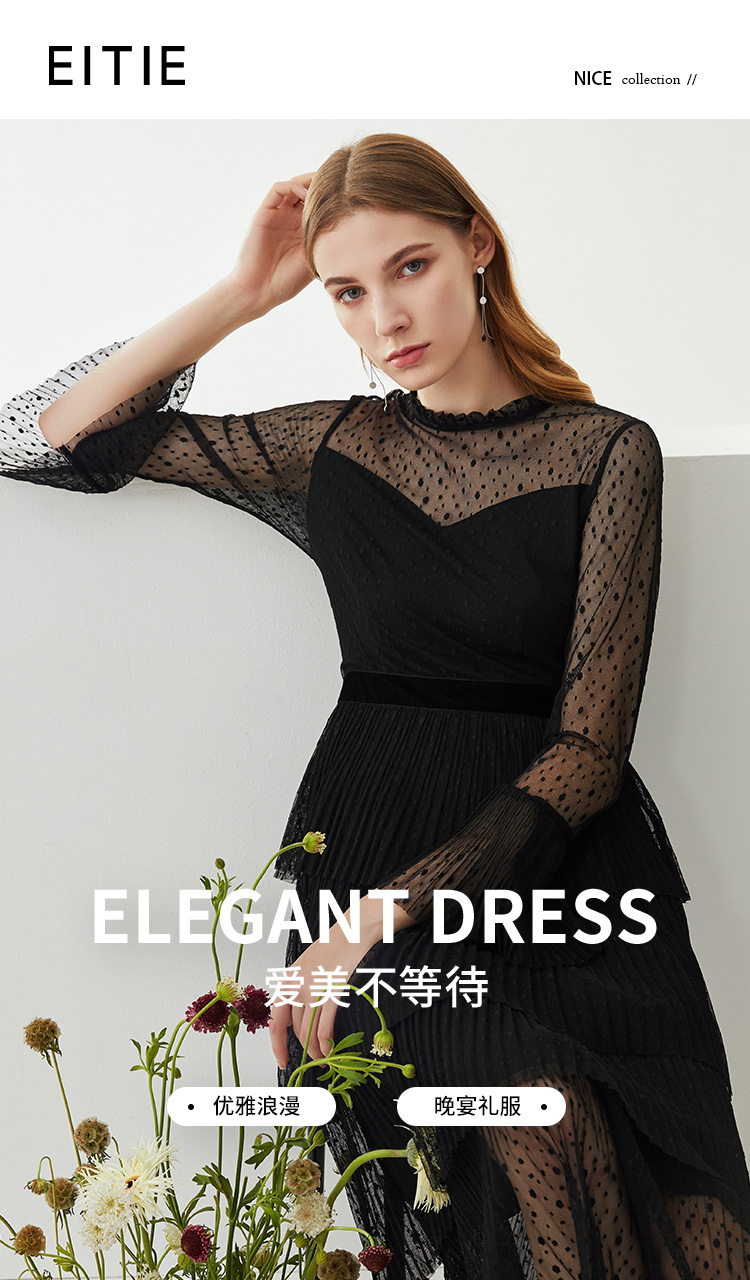 EITIE爱特爱夏季新款洋气西装领收腰显瘦灯笼袖连衣裙女B2107710