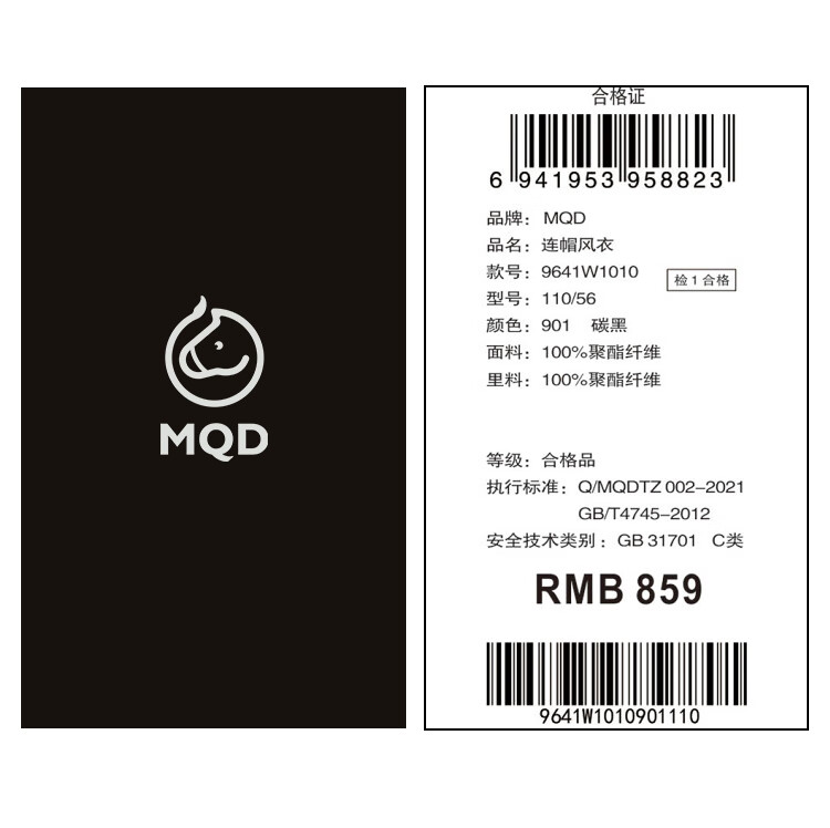 【MQD】童装男大童三防春新款户外撞色潮酷风衣外套