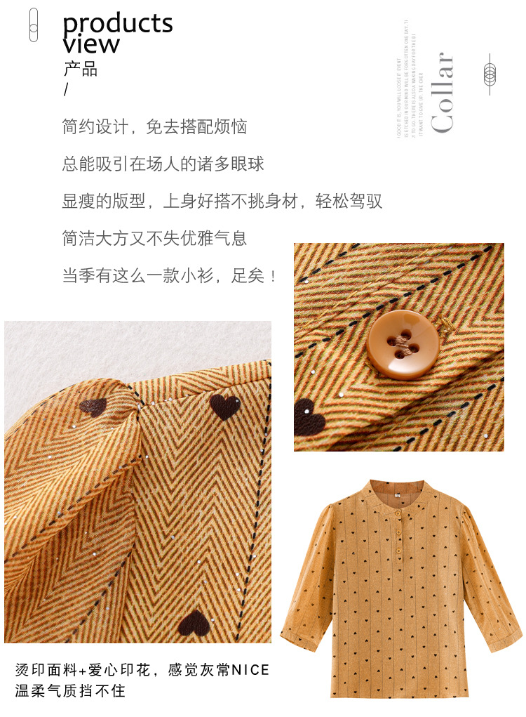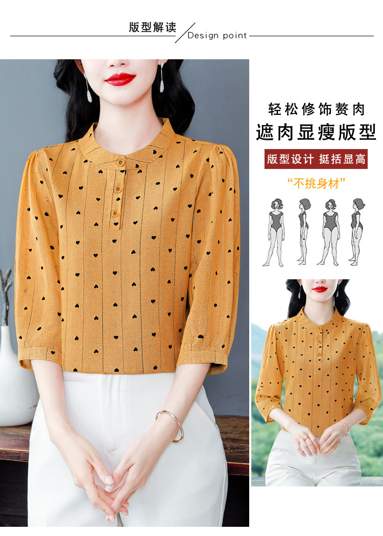 KQL B41N6586洋气七分袖复古衬衫时尚妈妈装气质薄款上衣