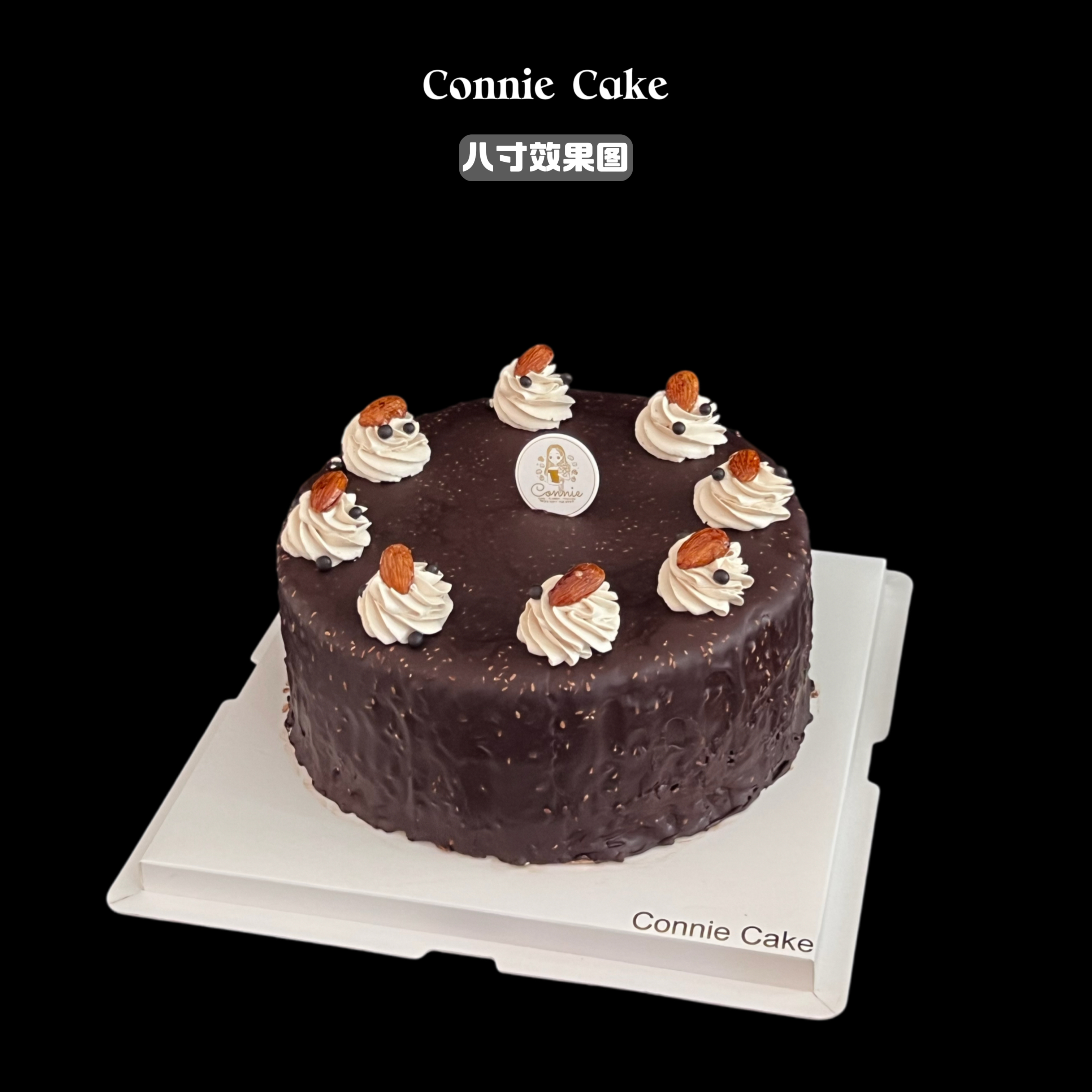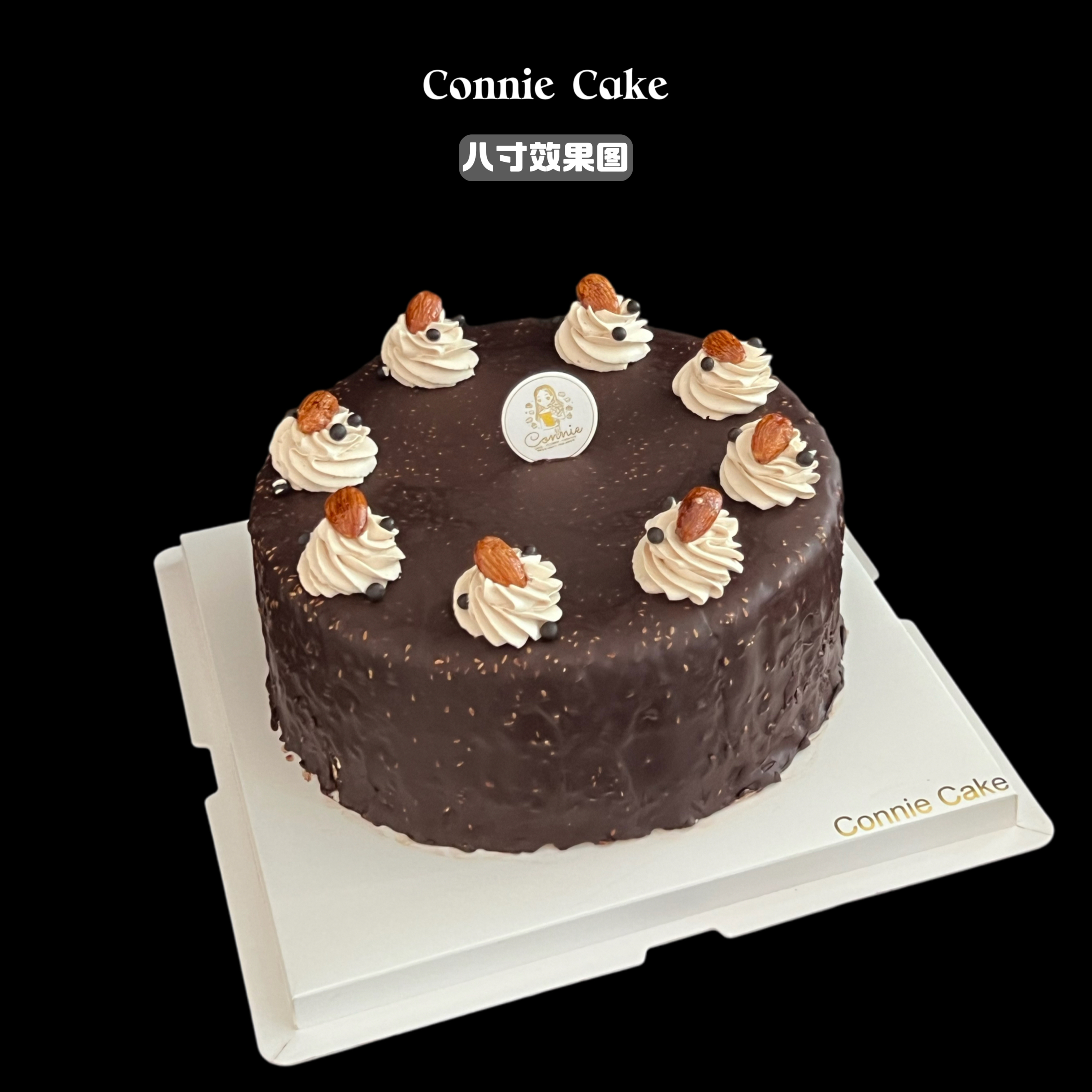 💗 不同于大家认知的巧克力甜点口感甜腻 费雷罗蛋糕双层夹心采用法芙娜爆珠和美国进口大杏仁自制焦糖杏仁增加口感💞 蛋糕体湿润香醇💕 蛋糕淋面当然也采用巧克力中的爱马仕法芙娜和野生白芝麻💓 让口感递进(上升)到了极点😍 还不快来找我吗
