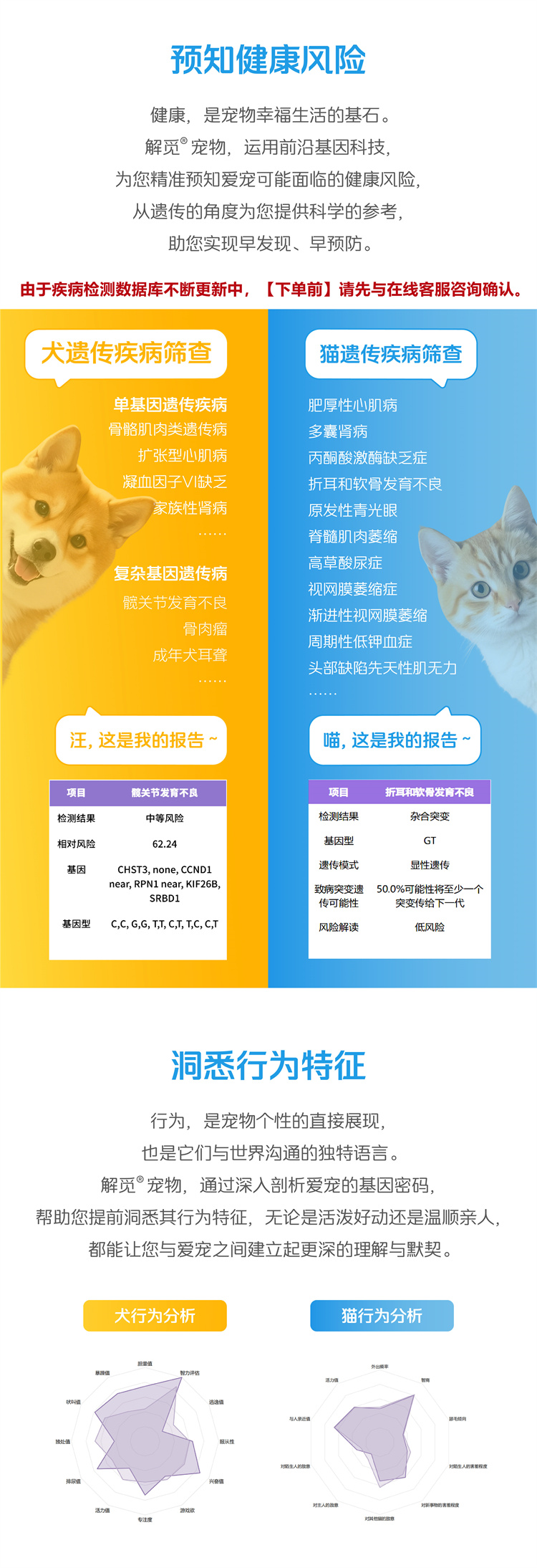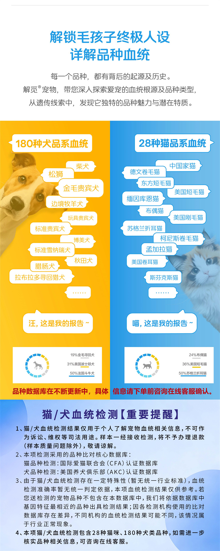 【解觅-华大宠物基因检测】猫犬品种鉴定血型遗传疾病性格饮食分析