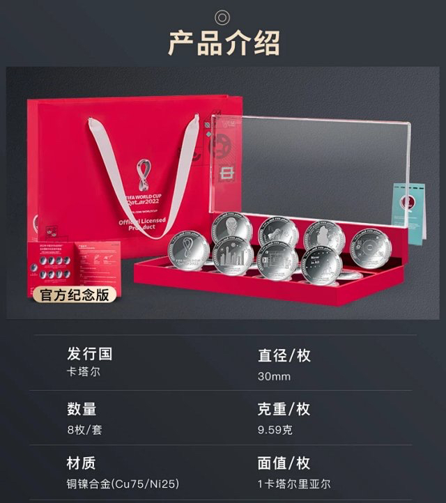 【特惠抢】卡塔尔世界杯纪念币套装(8枚装)