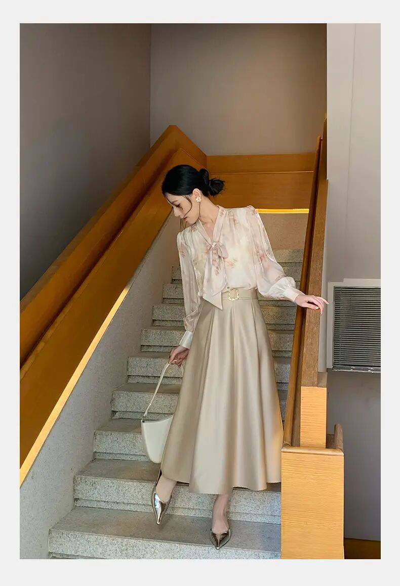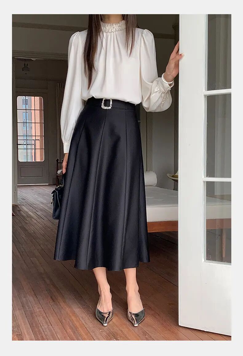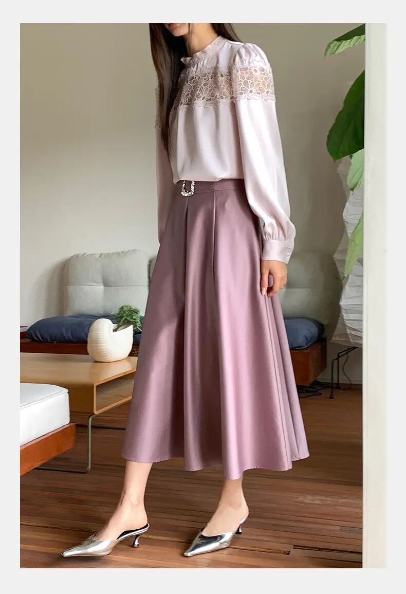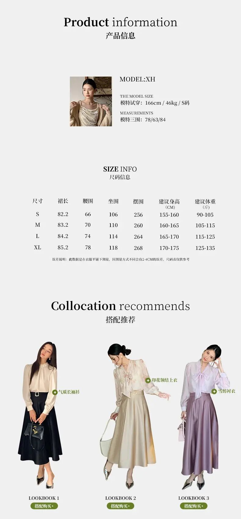 【自】全新升级【铂金会员174/天猫229/差价55】(10408) 洛诗琳春季新款法式气质a字半身裙中长款大摆裙高腰气质长裙