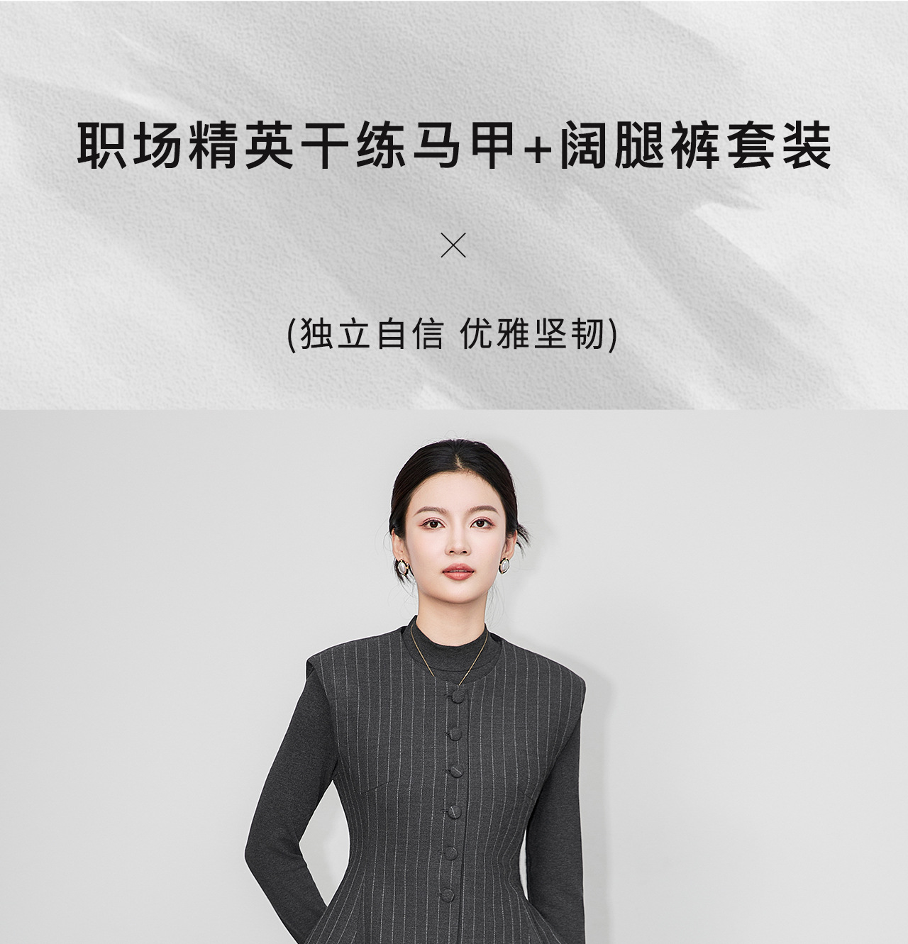「高货wl」全新升级【铂金会员441/天猫599/差价158】(99425)洛诗琳2025秋冬通勤老钱风马甲上衣阔腿直筒裤两件套女