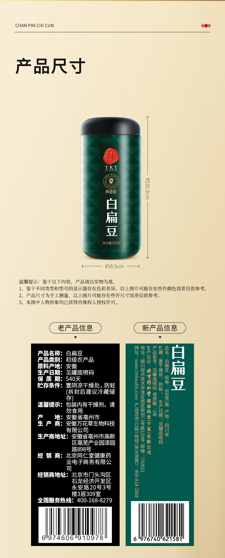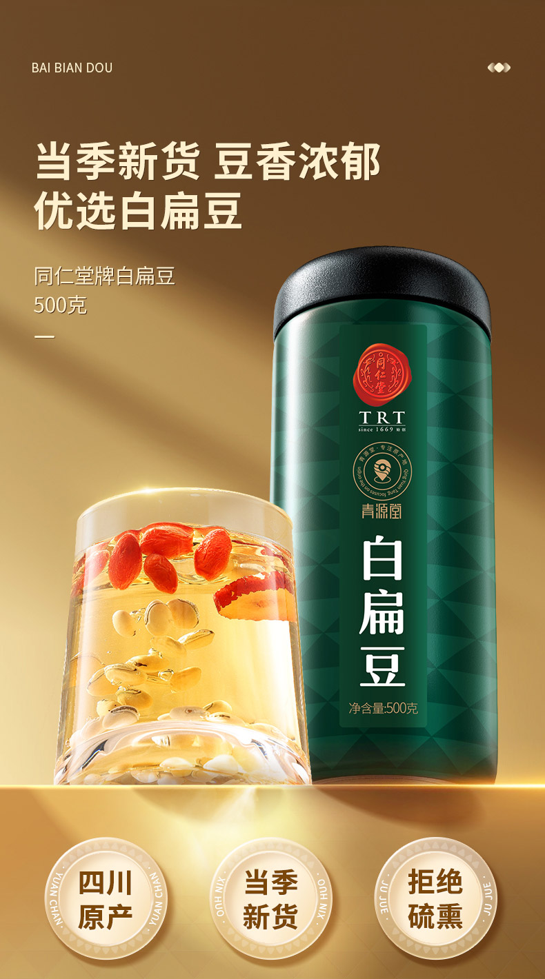 【积分兑换】【正宗同仁堂品牌】北京同仁堂 青源堂 白扁豆500g 源自安徽 手工采摘 自然晾晒 香糯美味SY