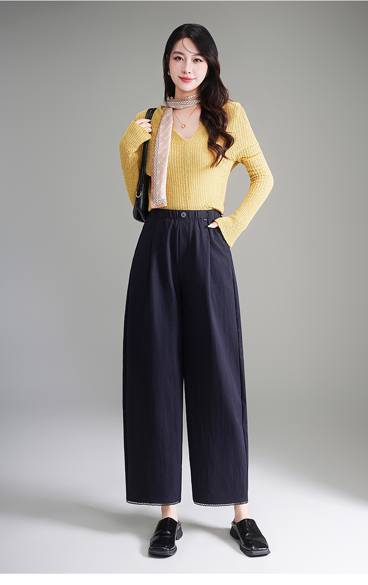 秋款灯笼阔腿裤花边裤子宽松显瘦九分裤气球裤休闲女裤CXCY2563