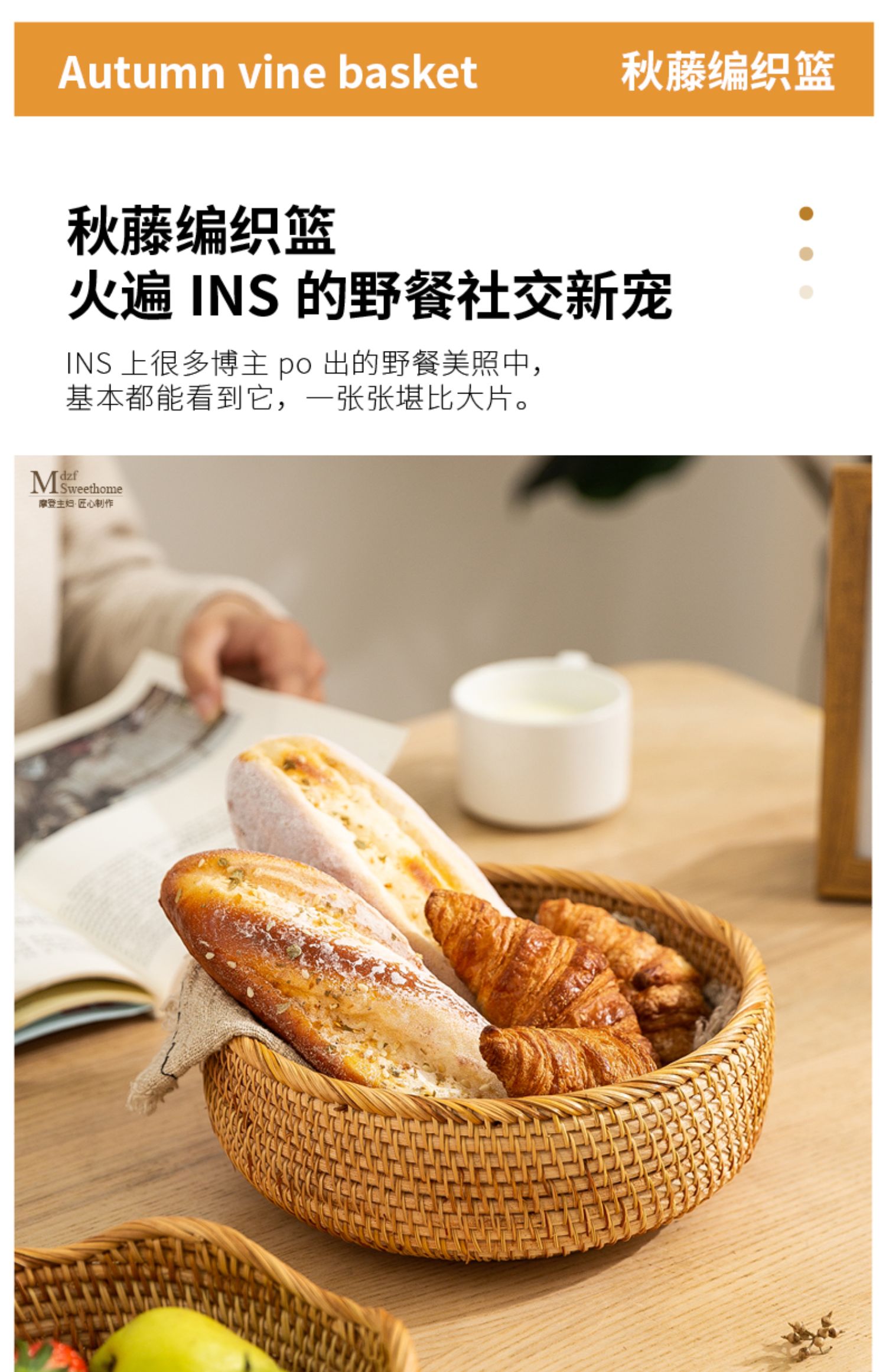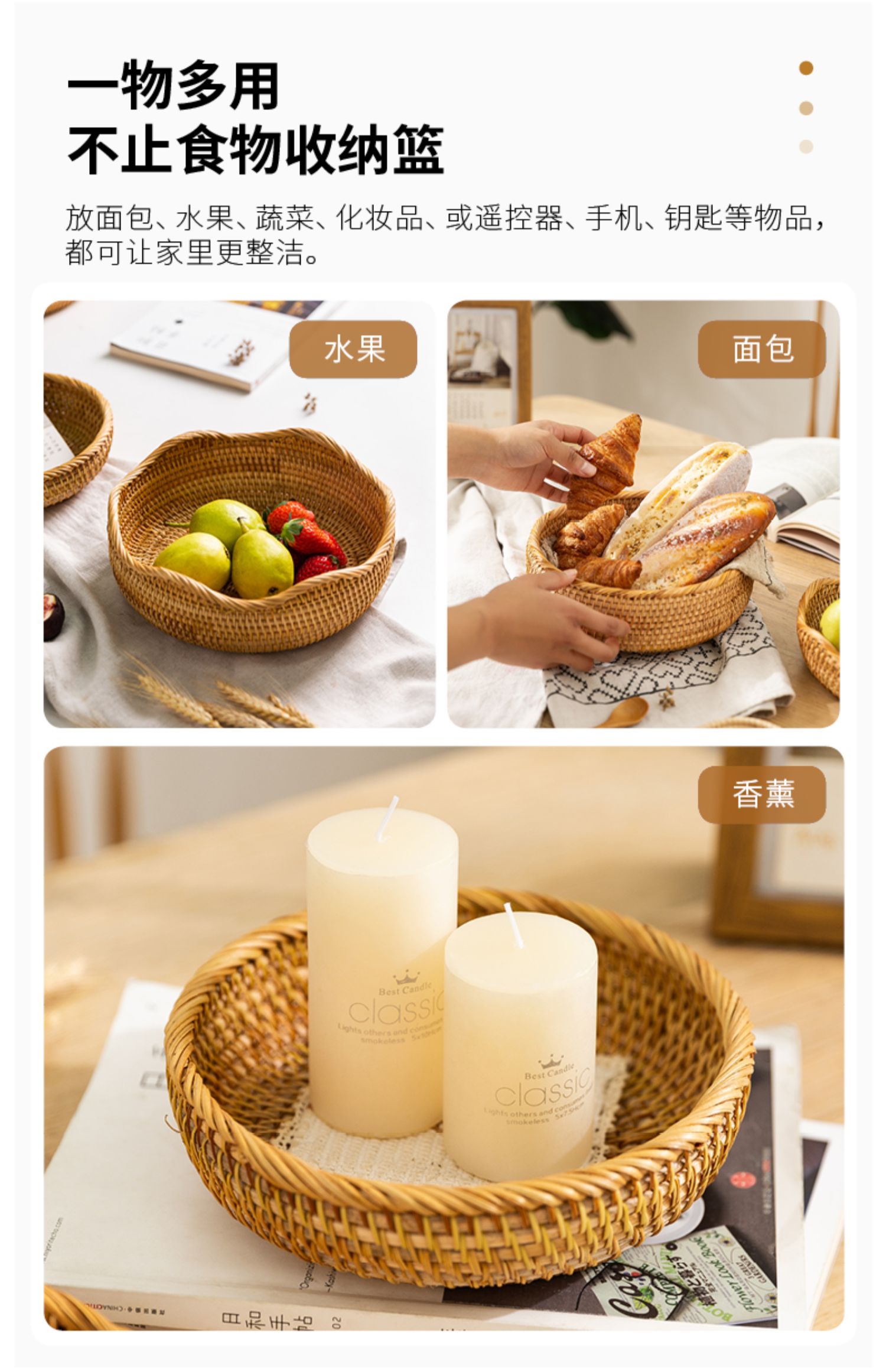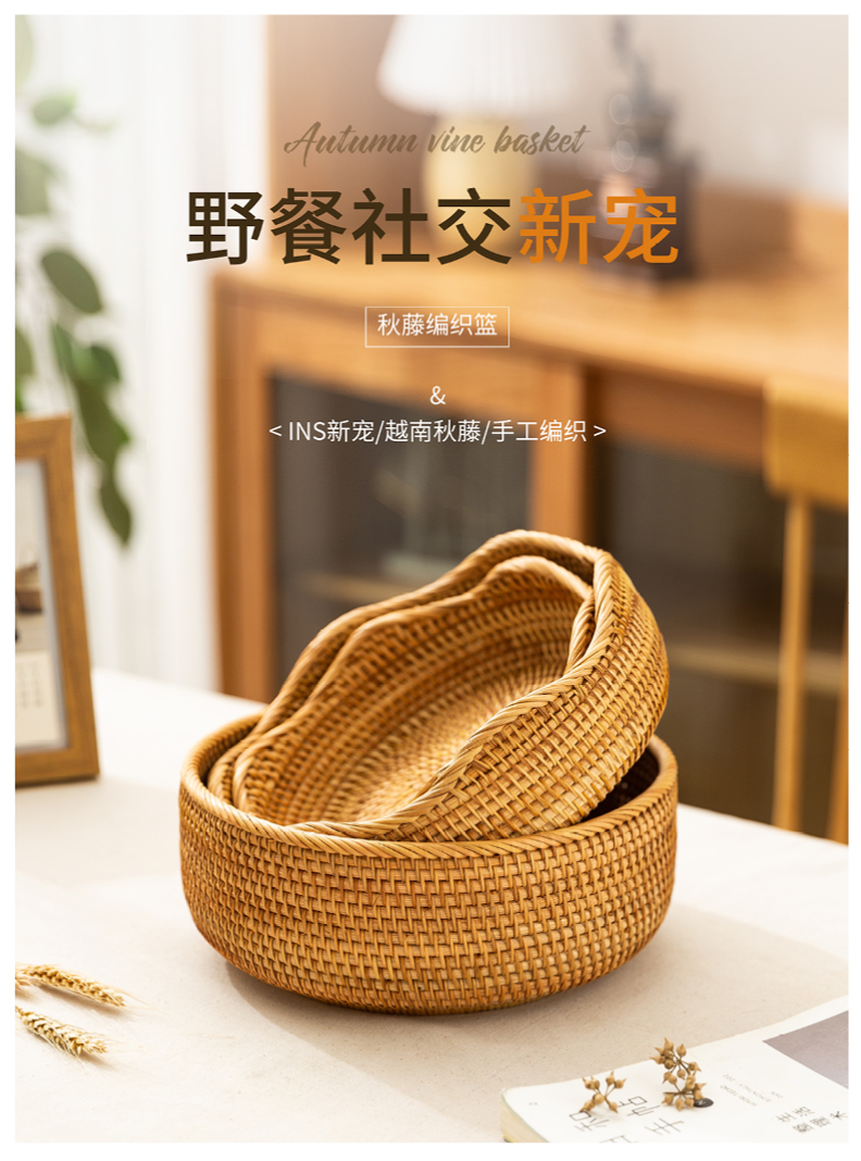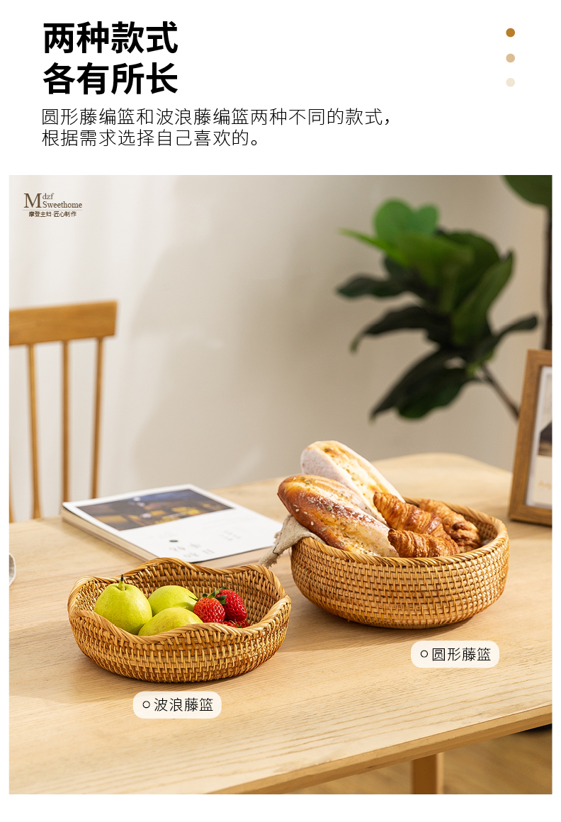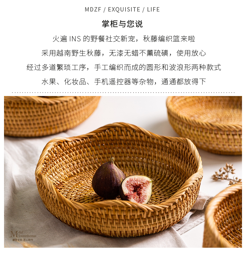 摩登主妇越南藤编收纳篮编织筐储物盒水果零食杂物馒头桌面收纳筐