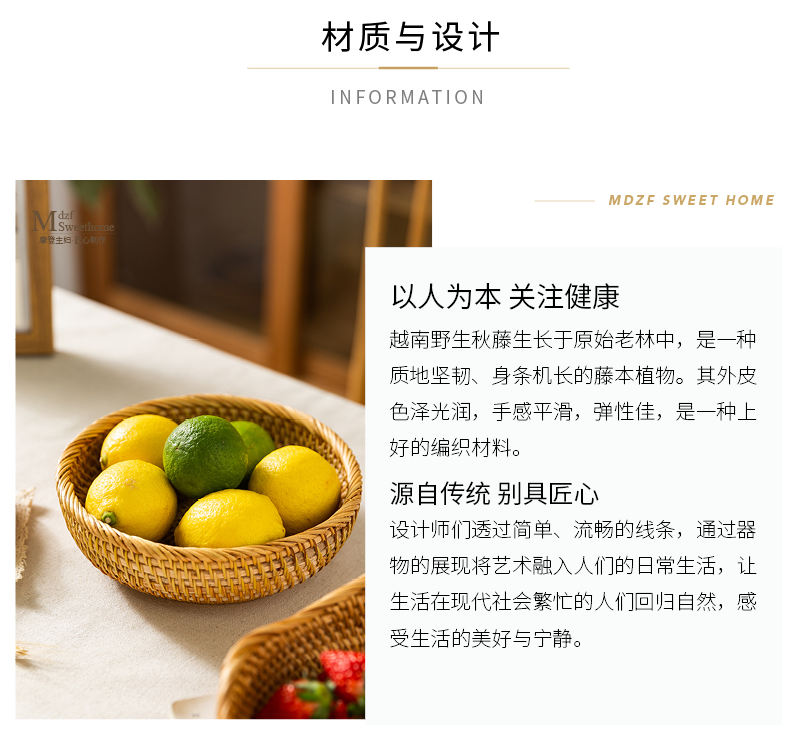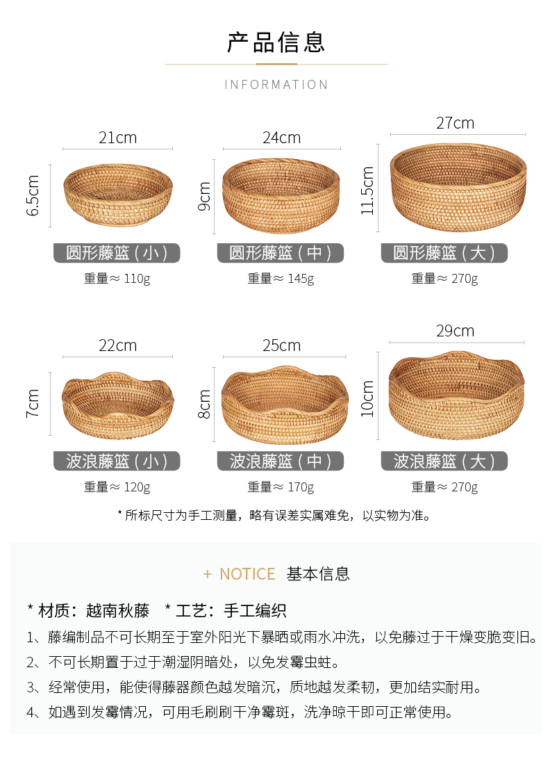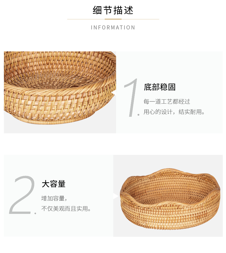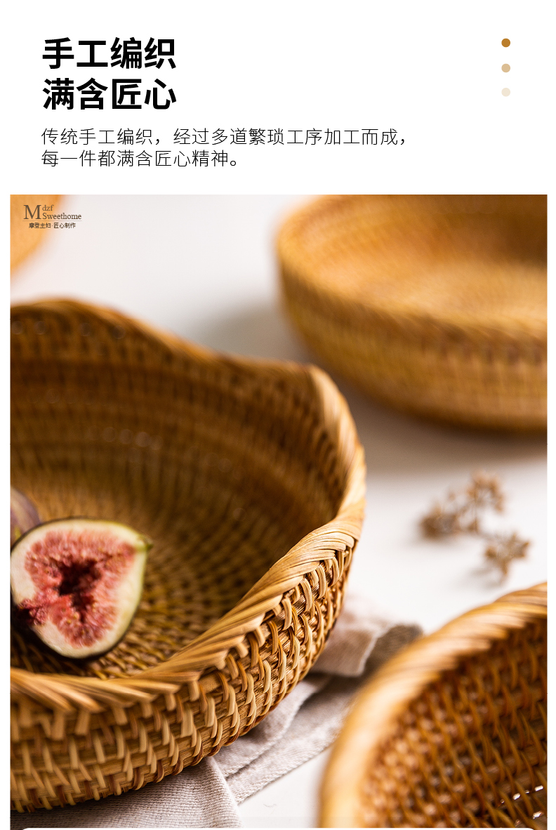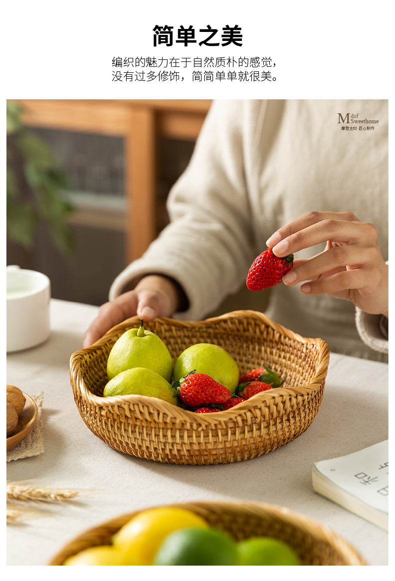 摩登主妇越南藤编收纳篮编织筐储物盒水果零食杂物馒头桌面收纳筐