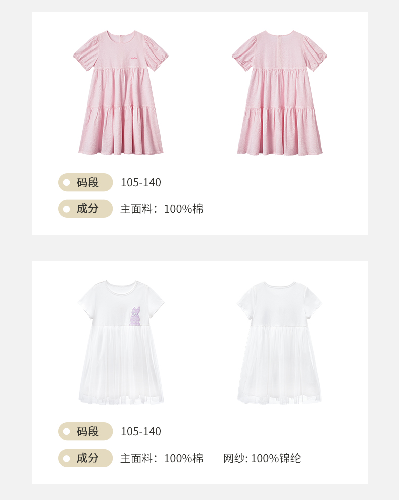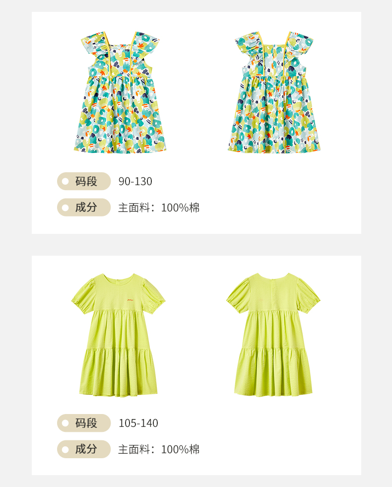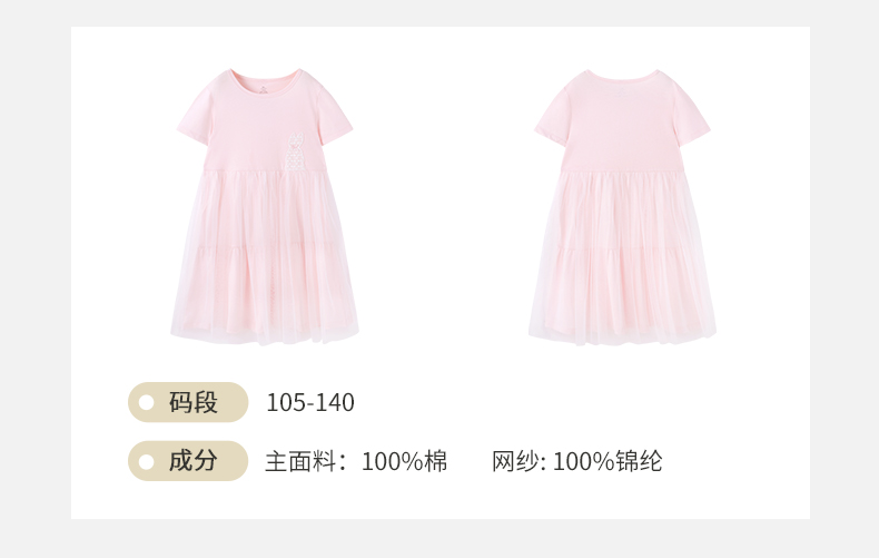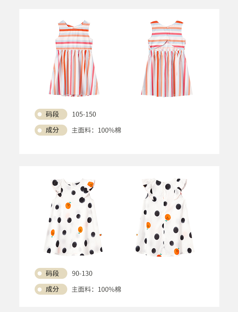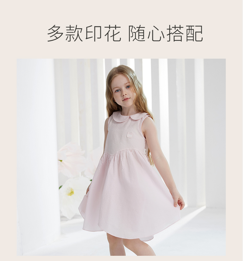 英氏【连衣裙】女宝可爱透气夏公主裙外出休闲裙子中大童童装连衣裙