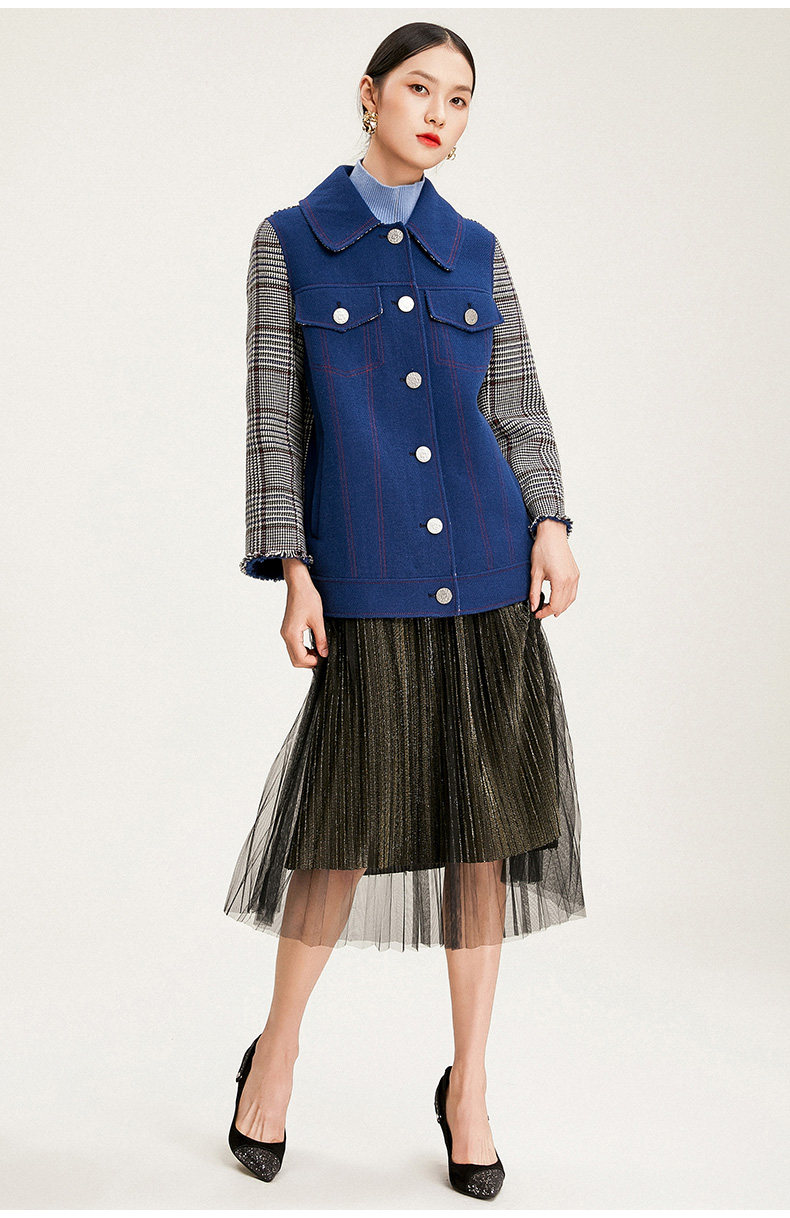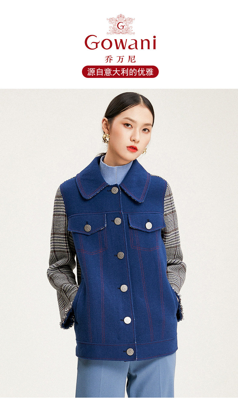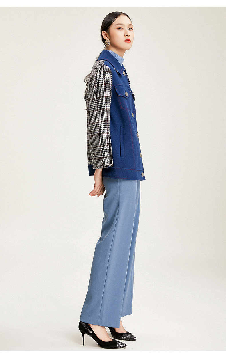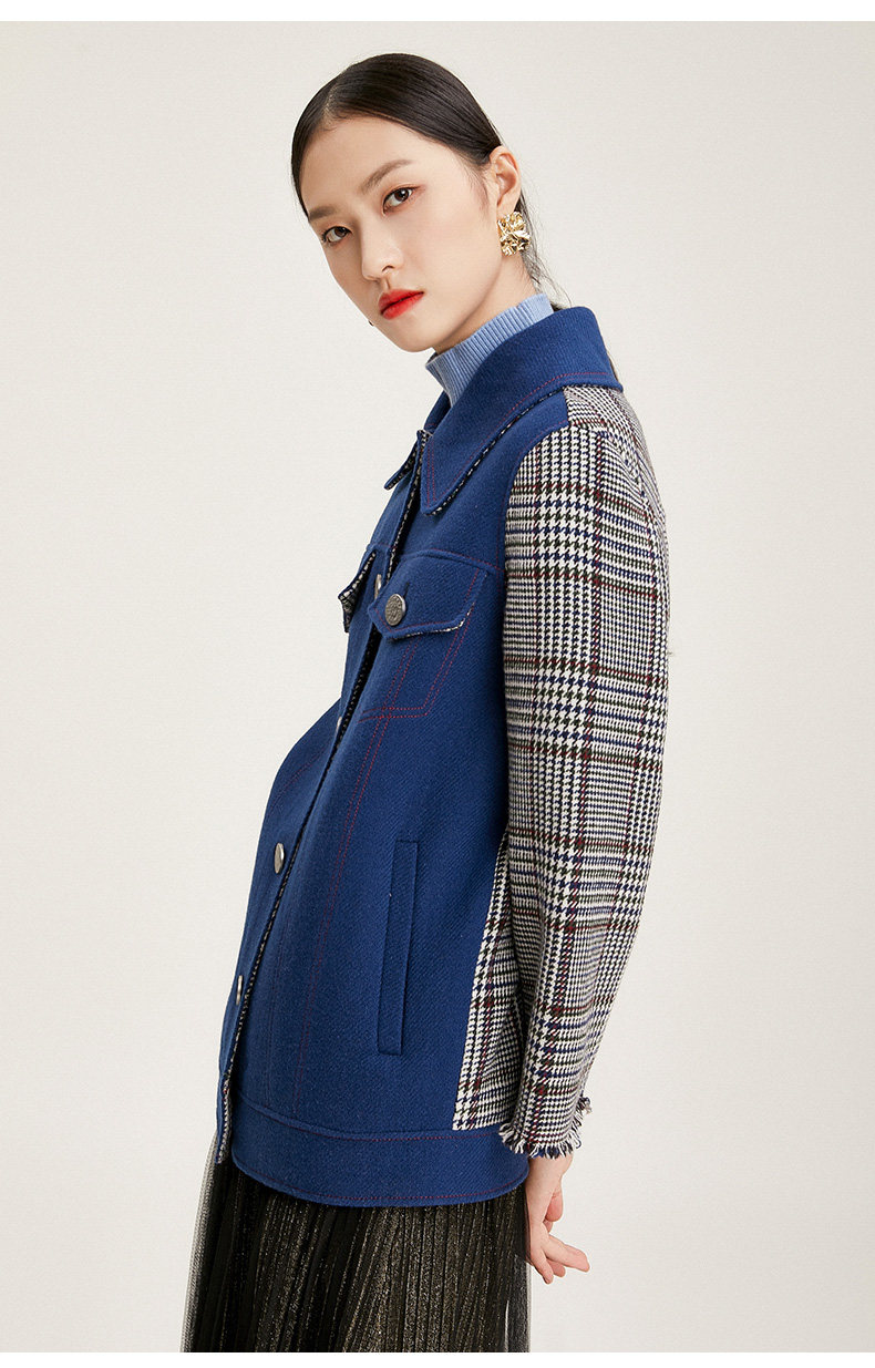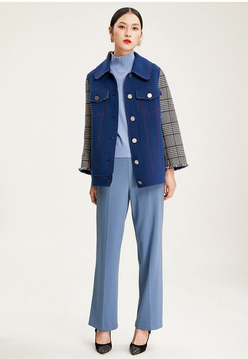 【100%绵羊毛】乔万尼外套女100羊毛直筒休闲双面呢拼接外套EN4B788