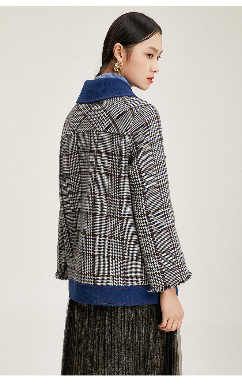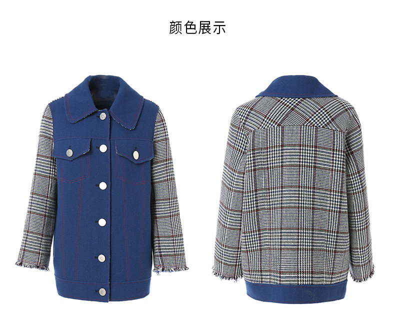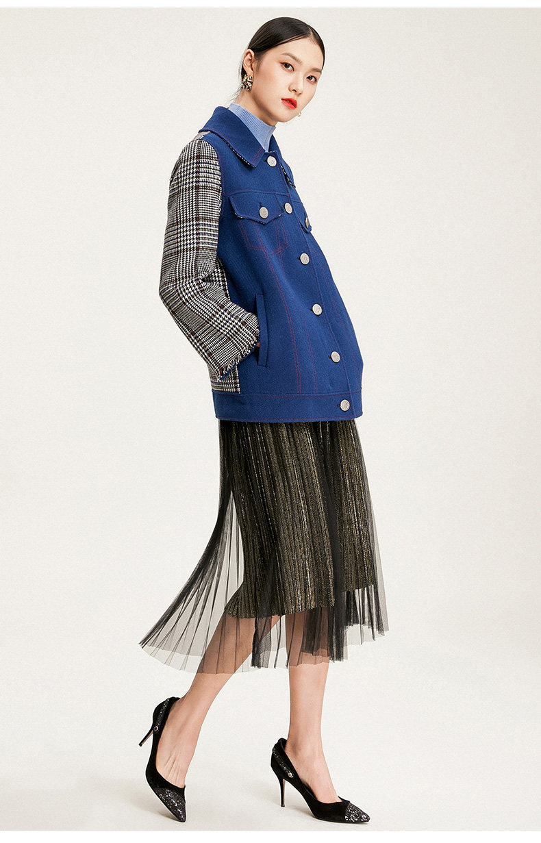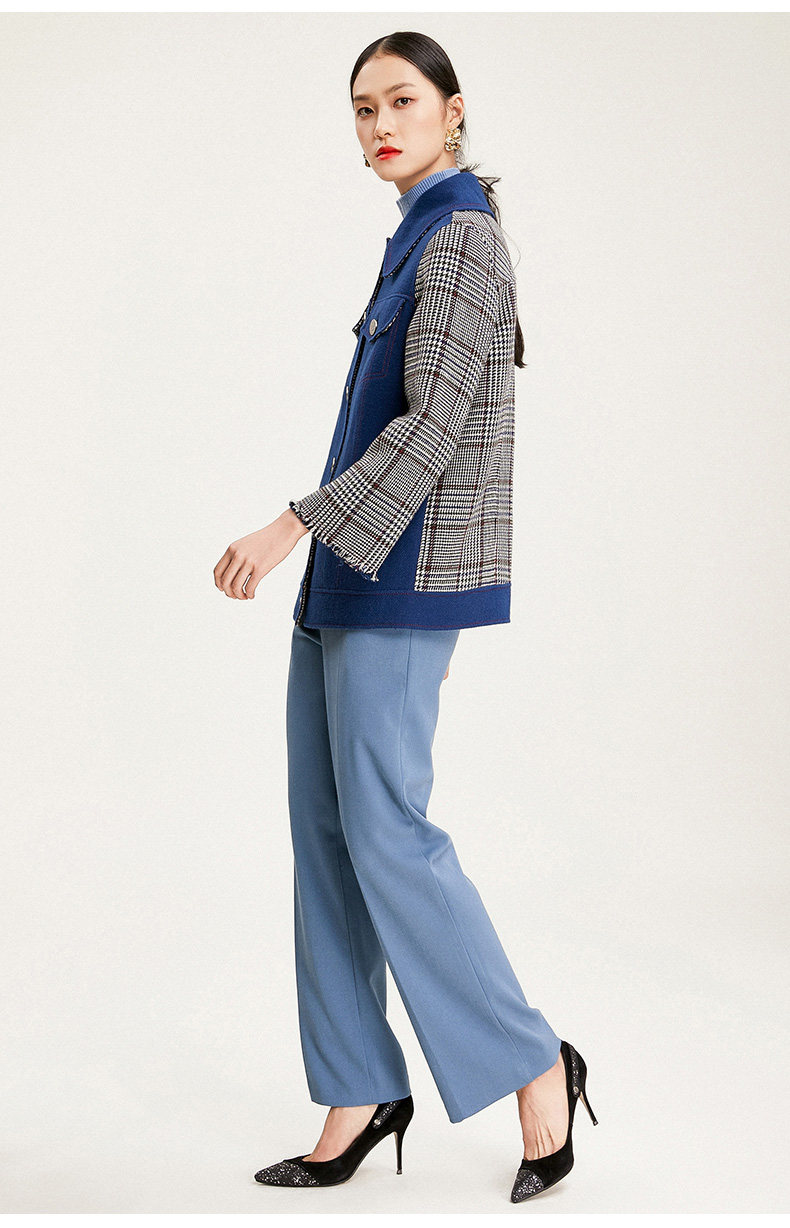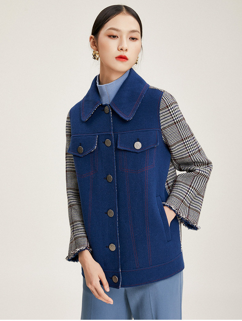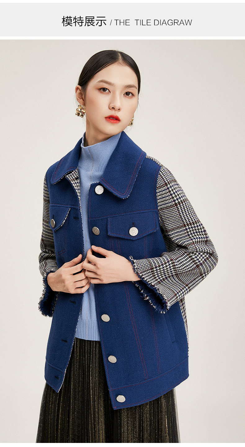 【100%绵羊毛】乔万尼外套女100羊毛直筒休闲双面呢拼接外套EN4B788