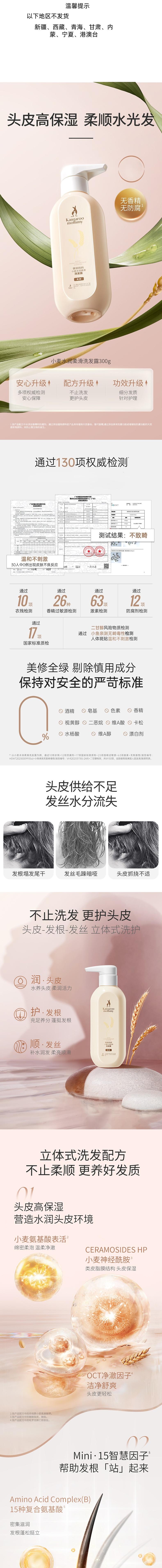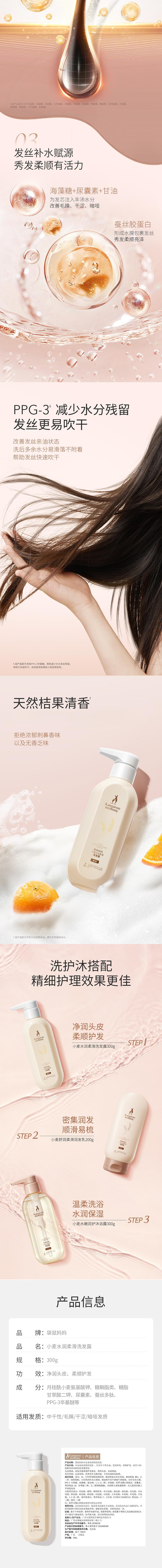 袋鼠妈妈 小麦水润柔滑洗发露(柔顺)-300g A100189901