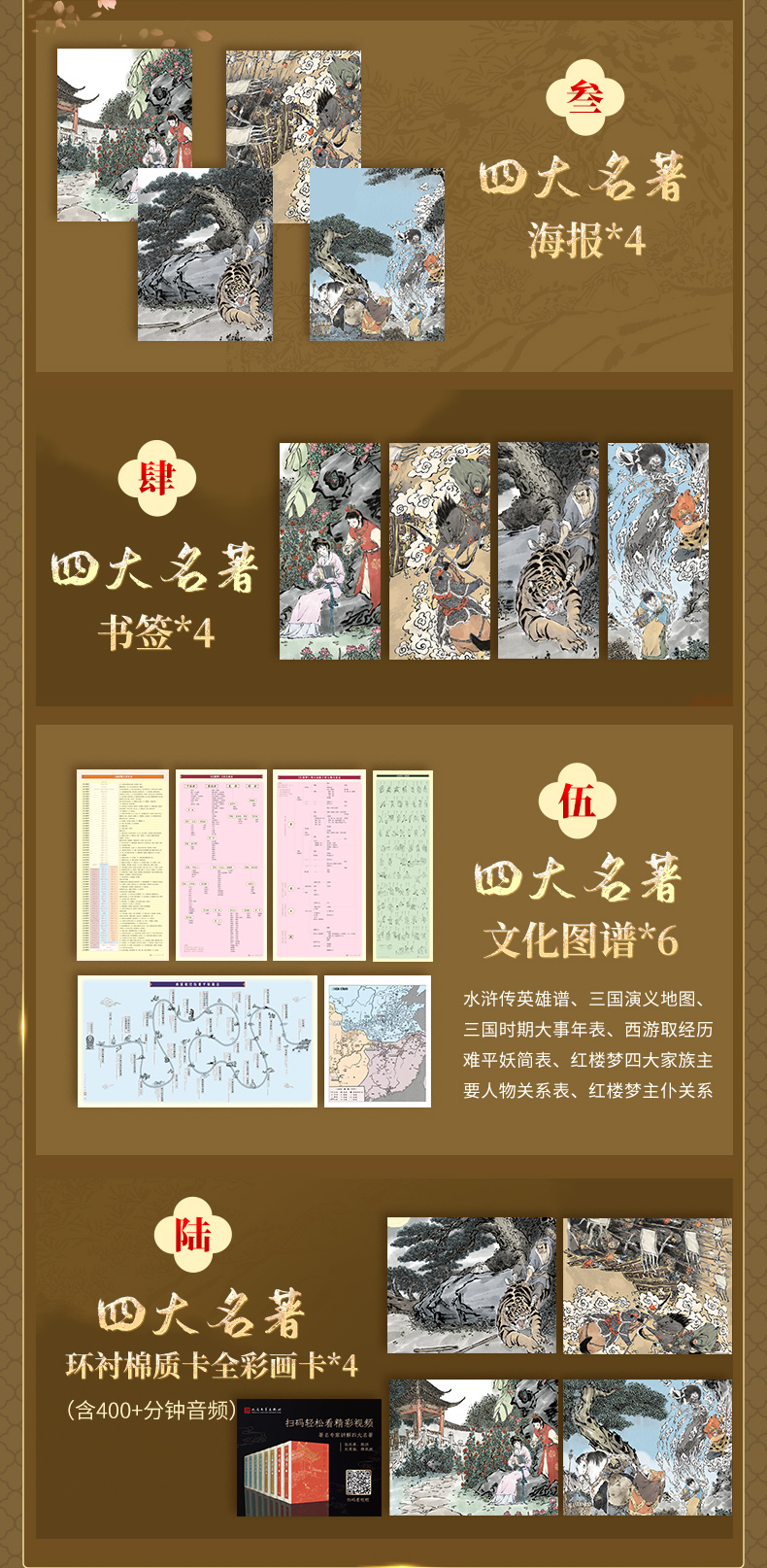 1、拆开快递盒,您可以看到赠品空调毯及4张全彩画卡,其中红楼梦彩卡后面,有收听400分钟视频的二维码,您可扫码收听。