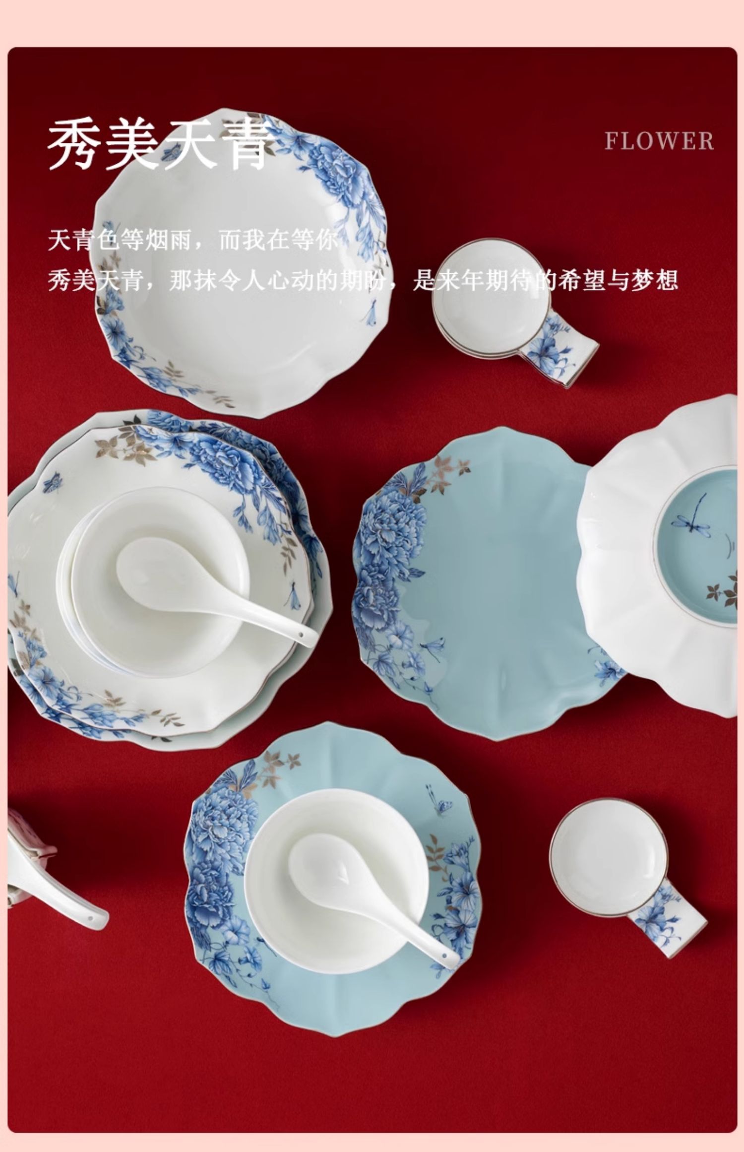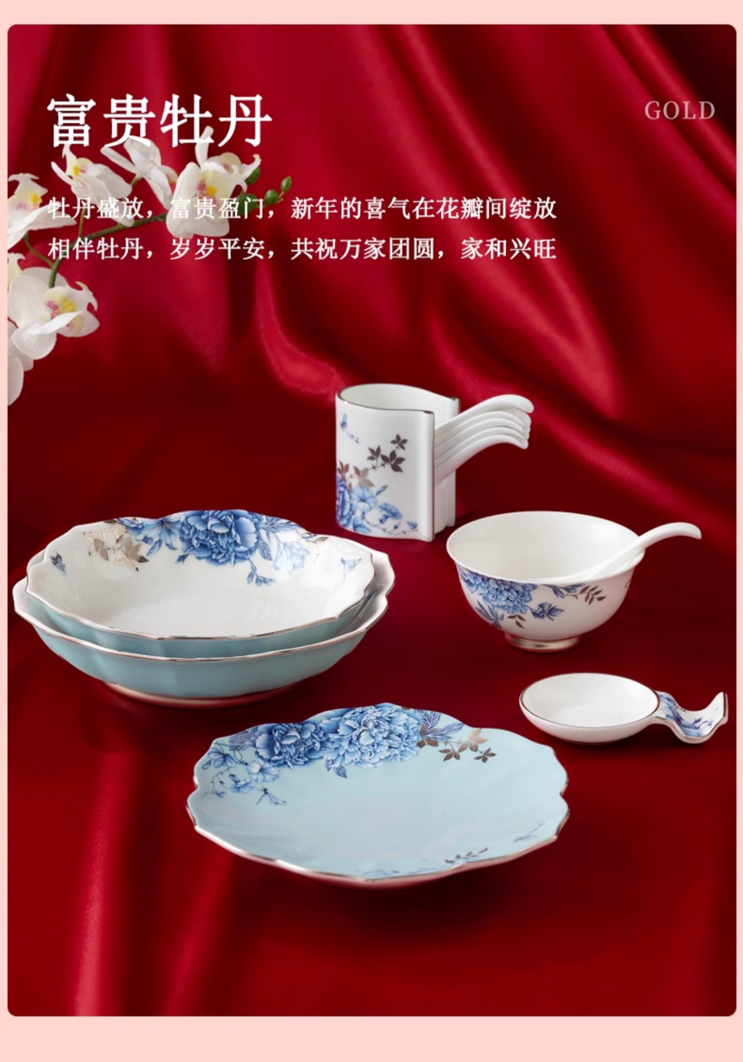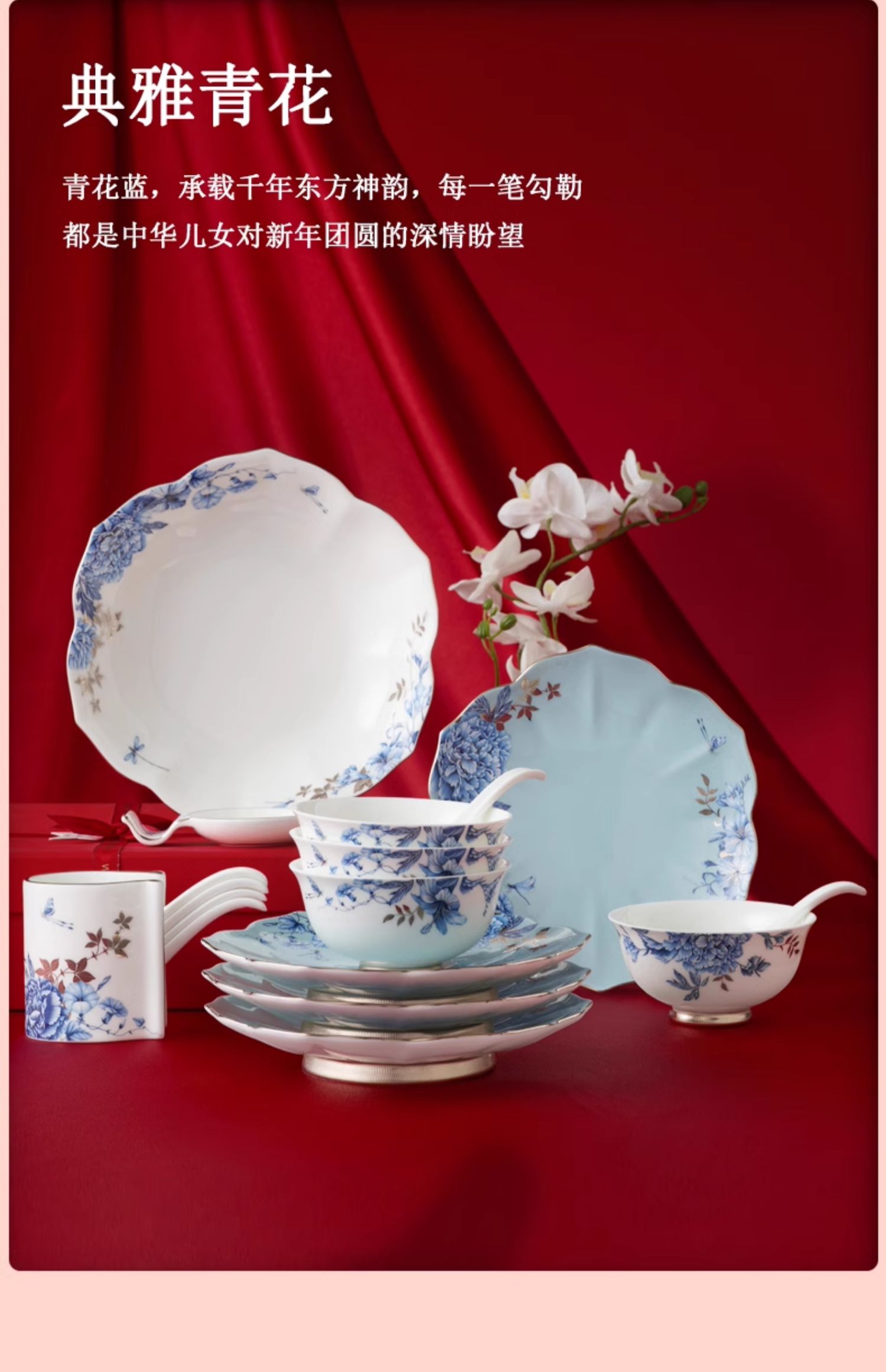 【彼达思】永丰源新年礼铂金青花31头6人位餐具