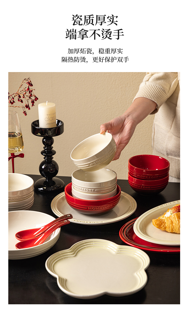摩登主妇MONAZONE碗碟套装2024新年礼盒乔迁家用炻瓷碗盘筷子餐具