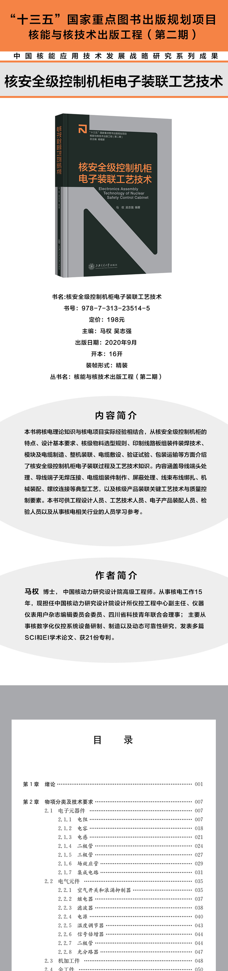 【核能与核技术出版工程】核安全级控制机柜电子装联工艺技术 9787313235145 马权 吴志强