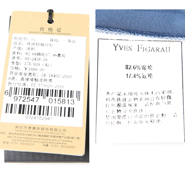 YvesFigarau伊夫·费嘉罗新品休闲短袖衬衫932418