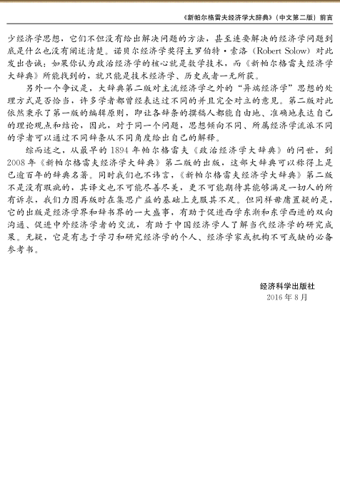 《新帕尔格雷夫经济学大辞典》(第二版)