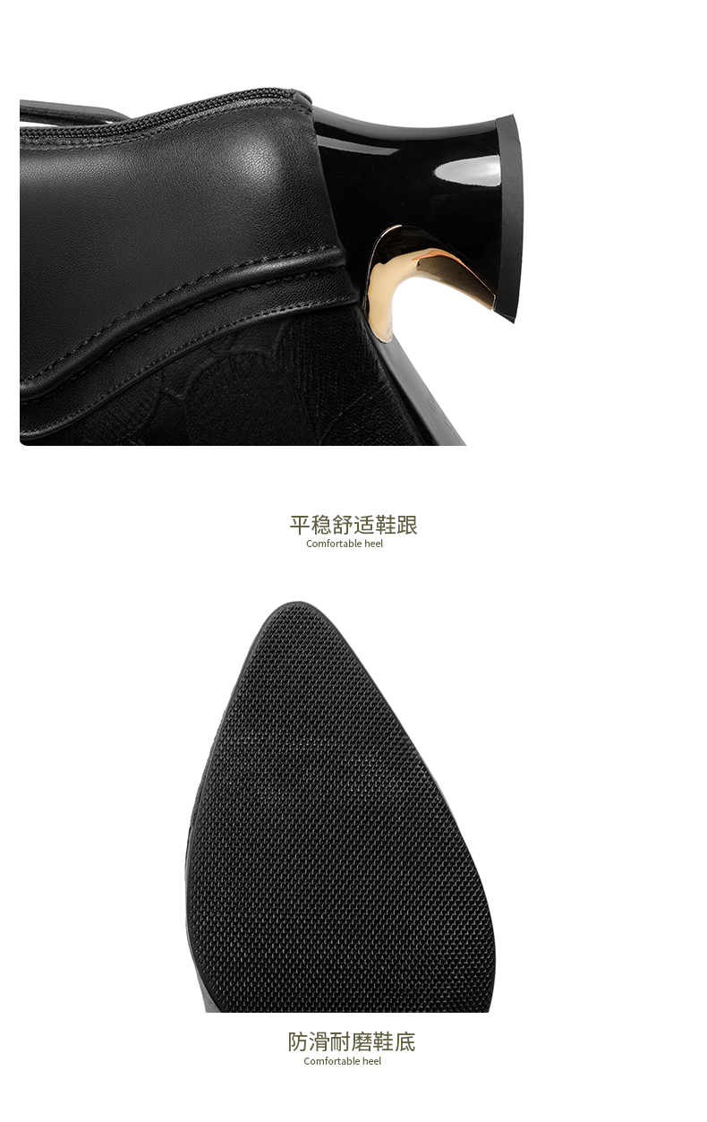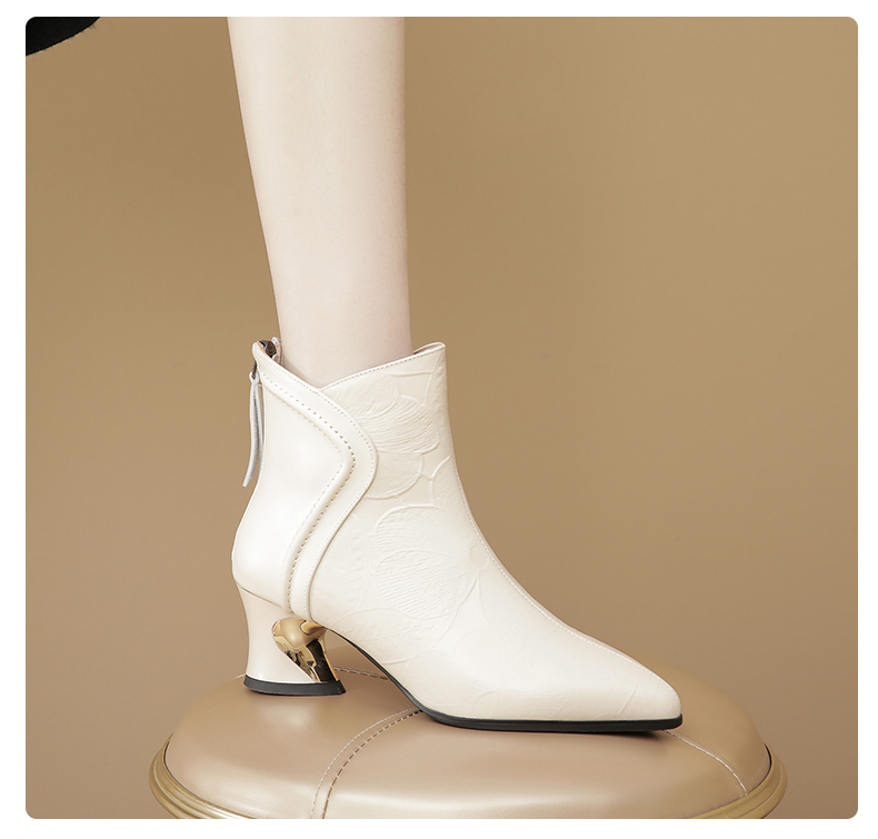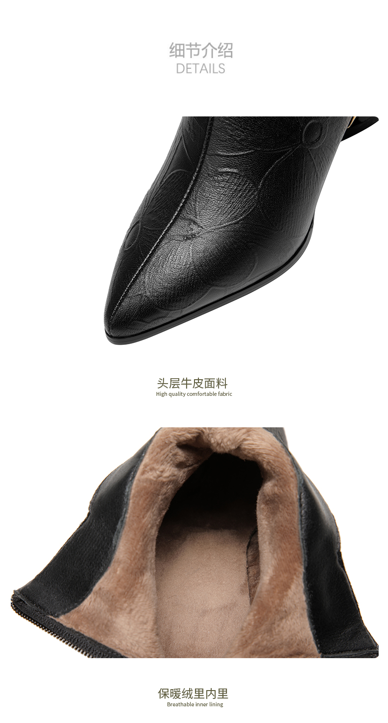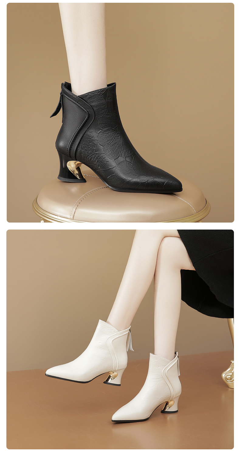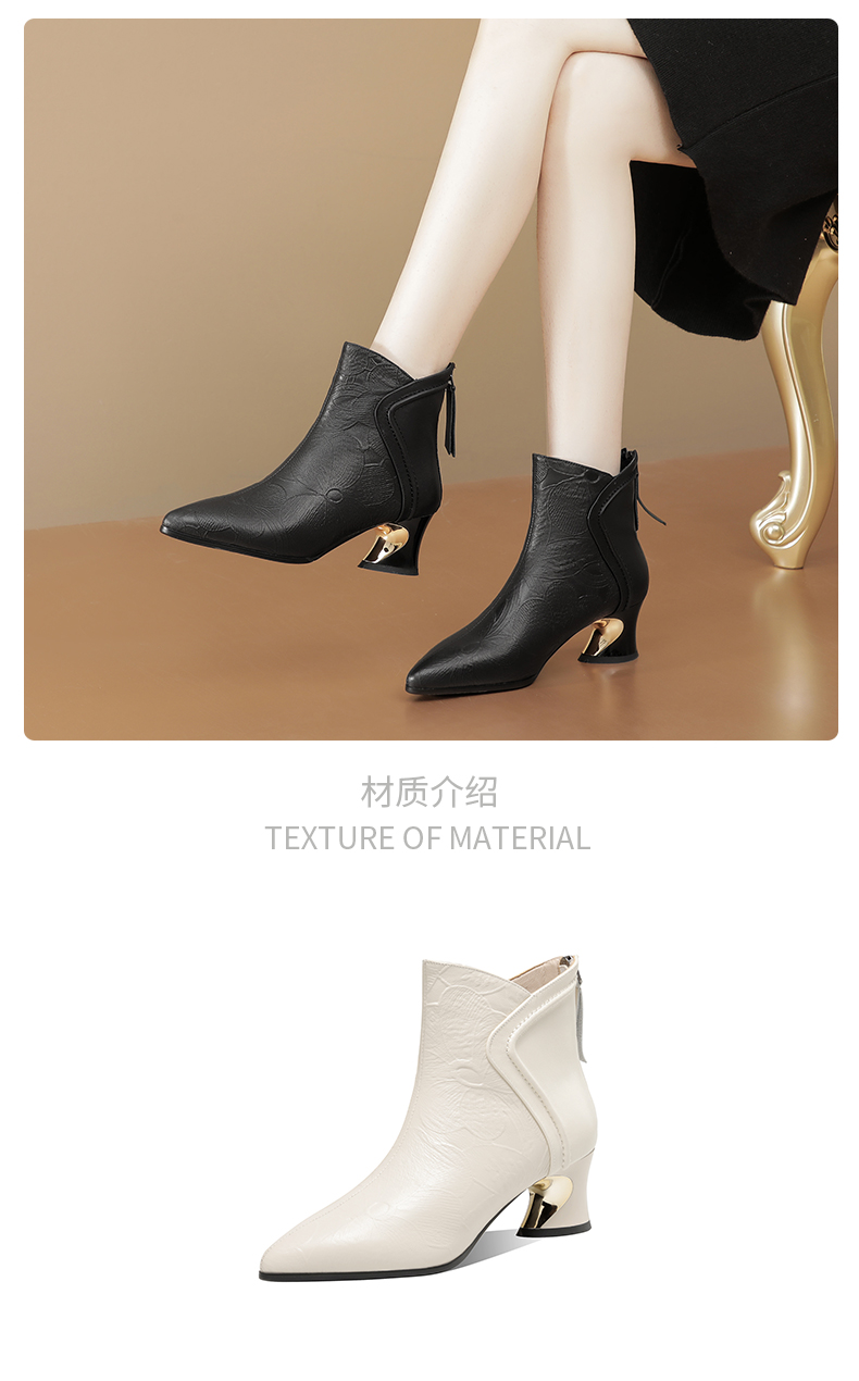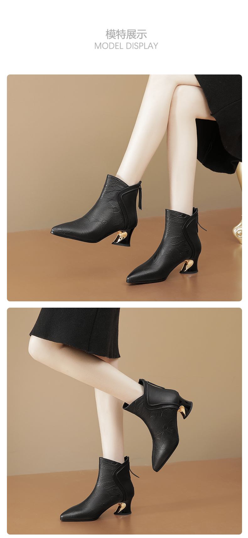 尖头粗跟高跟鞋,优雅时尚时装短靴TFJC-W161