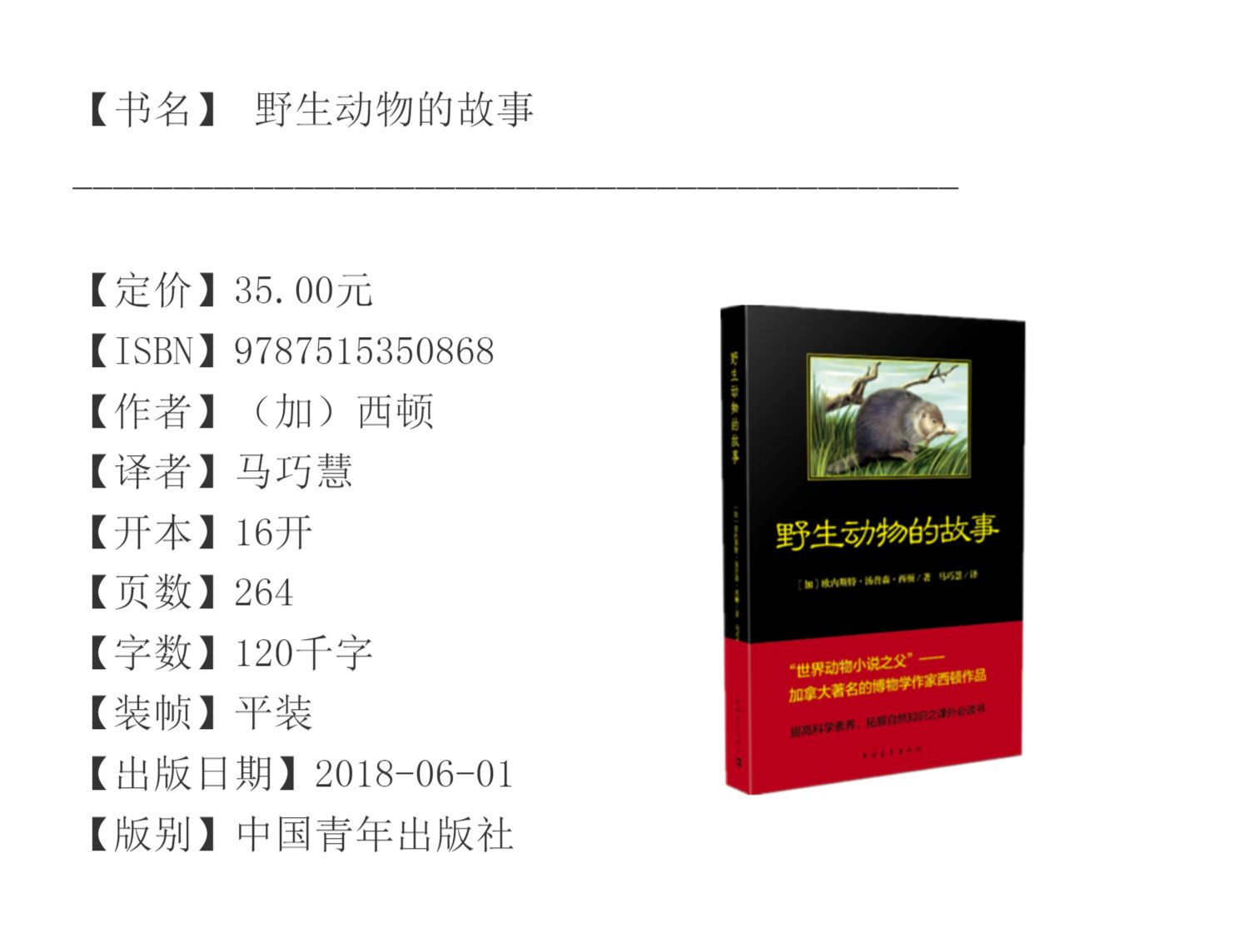 黑皮书 野生动物的故事 西顿 马巧慧译中国青年出版社名家插图本儿童文学博物学科普书籍课外阅读推荐书目正品直发