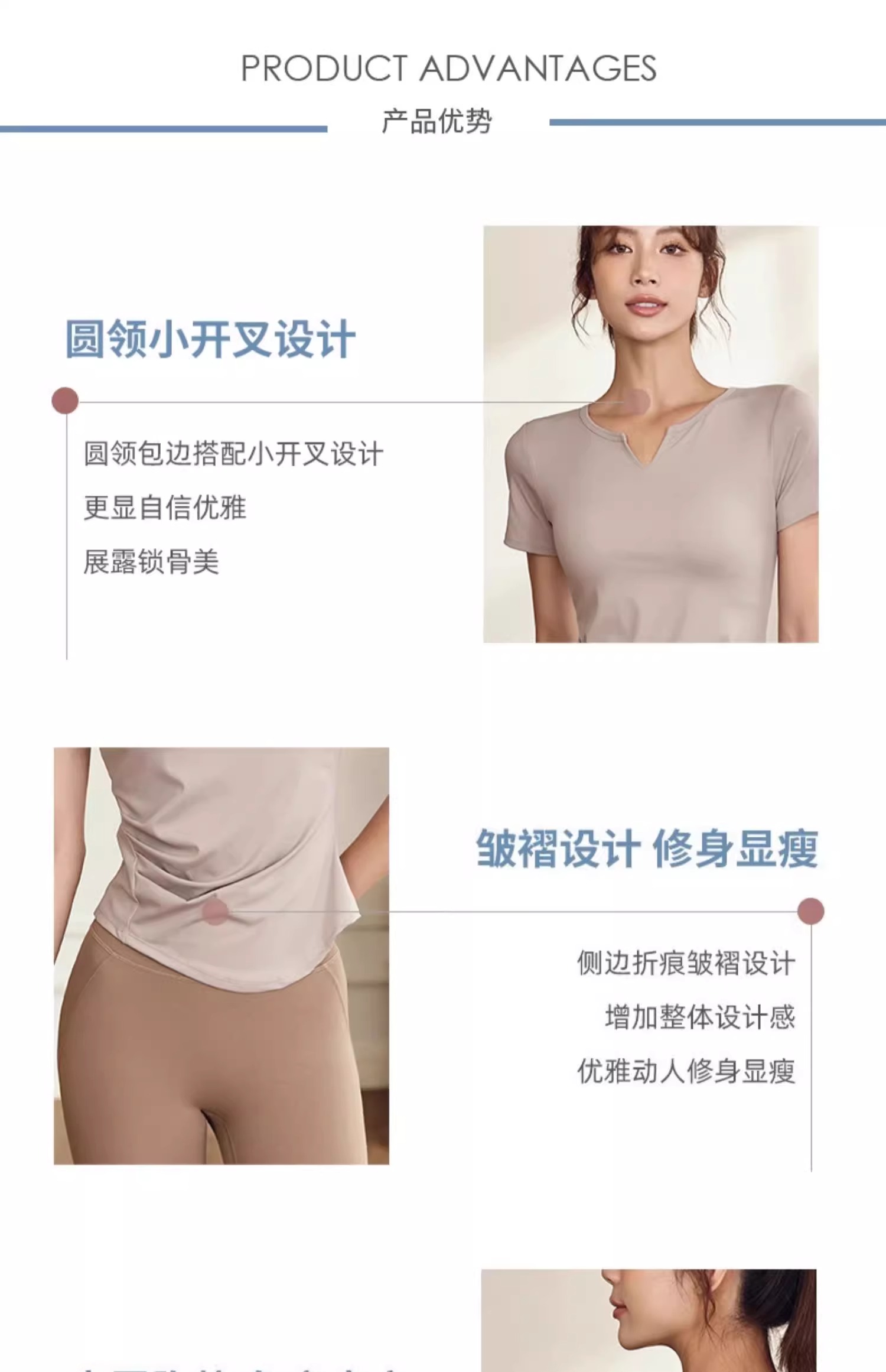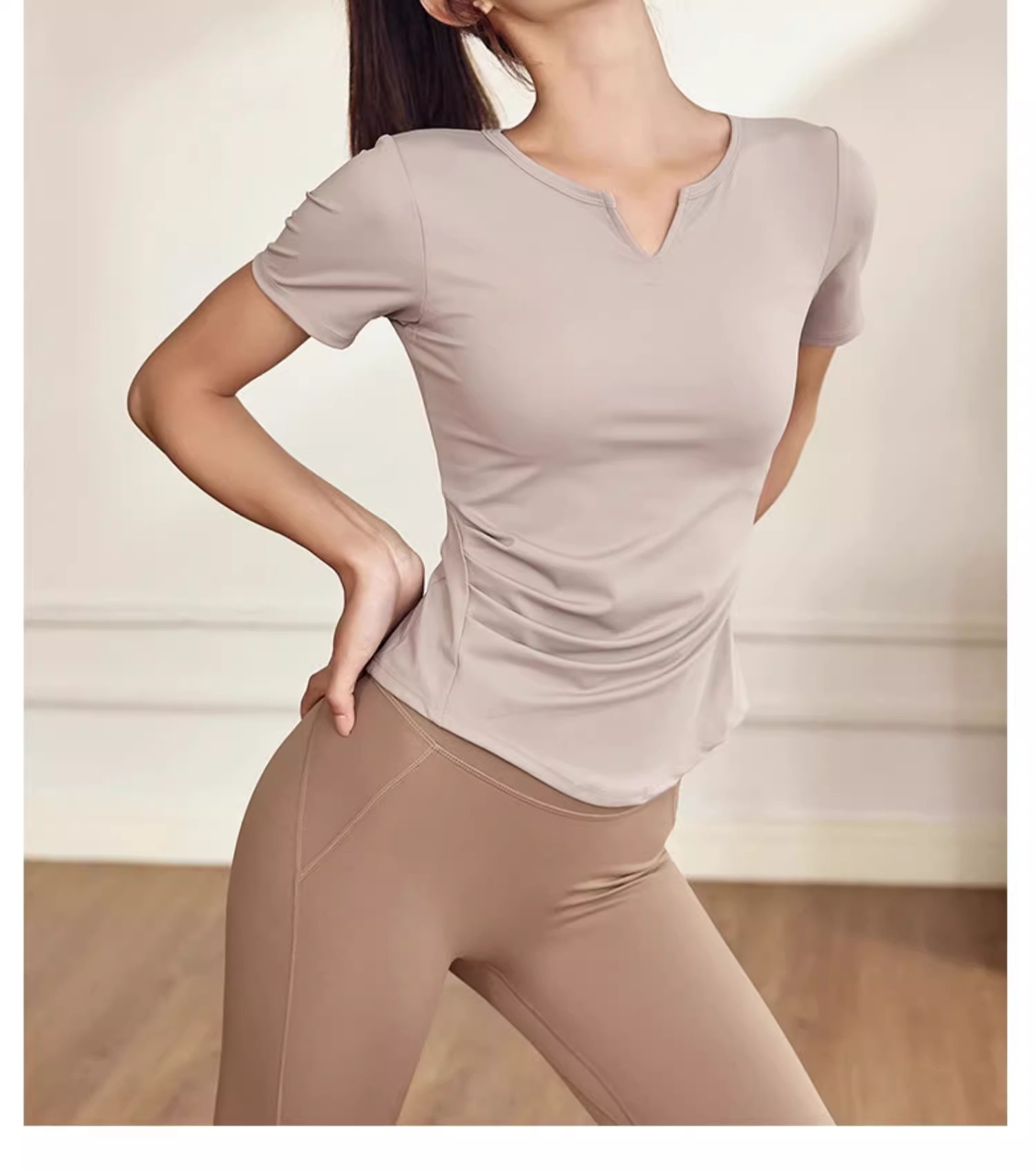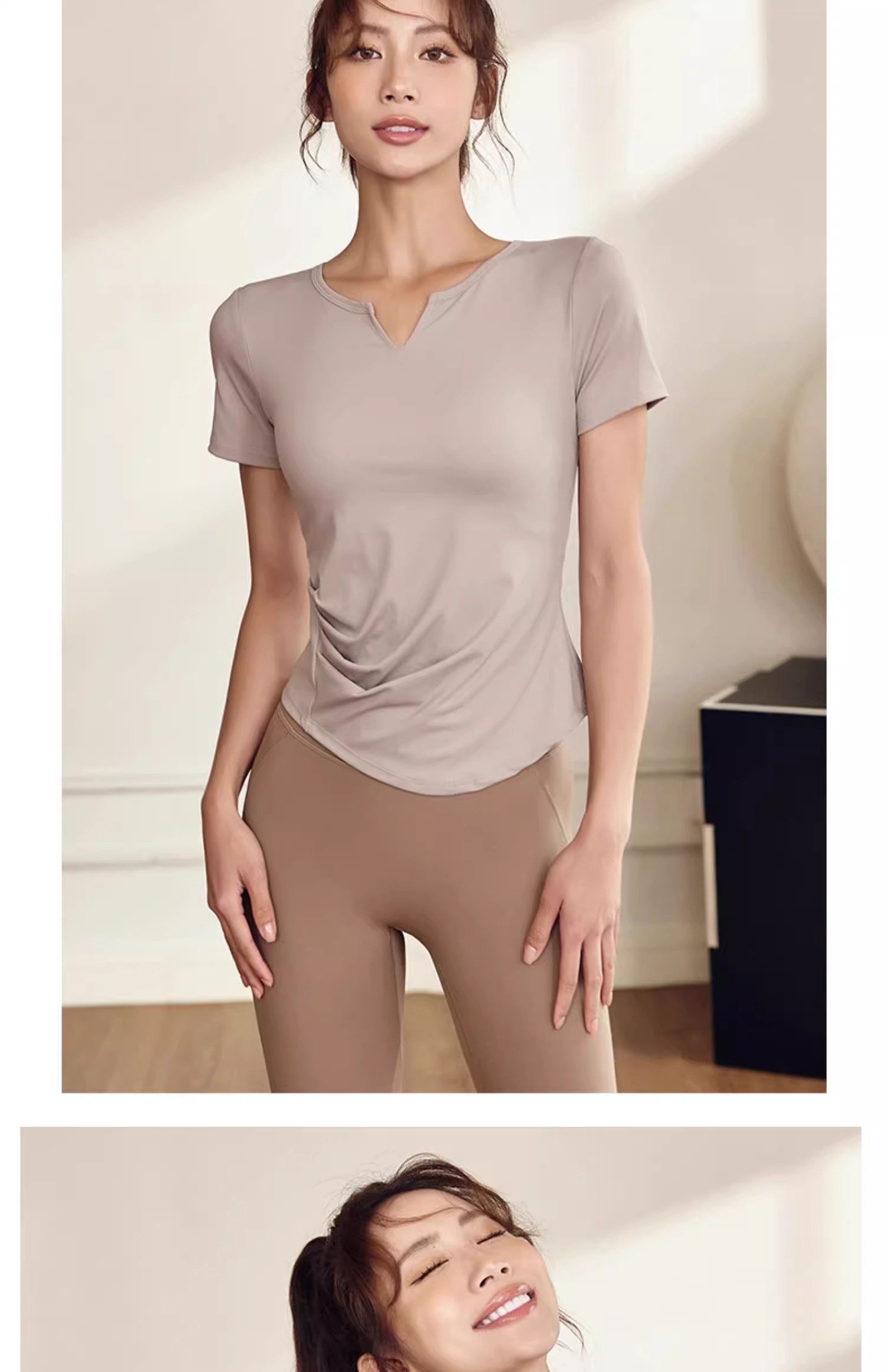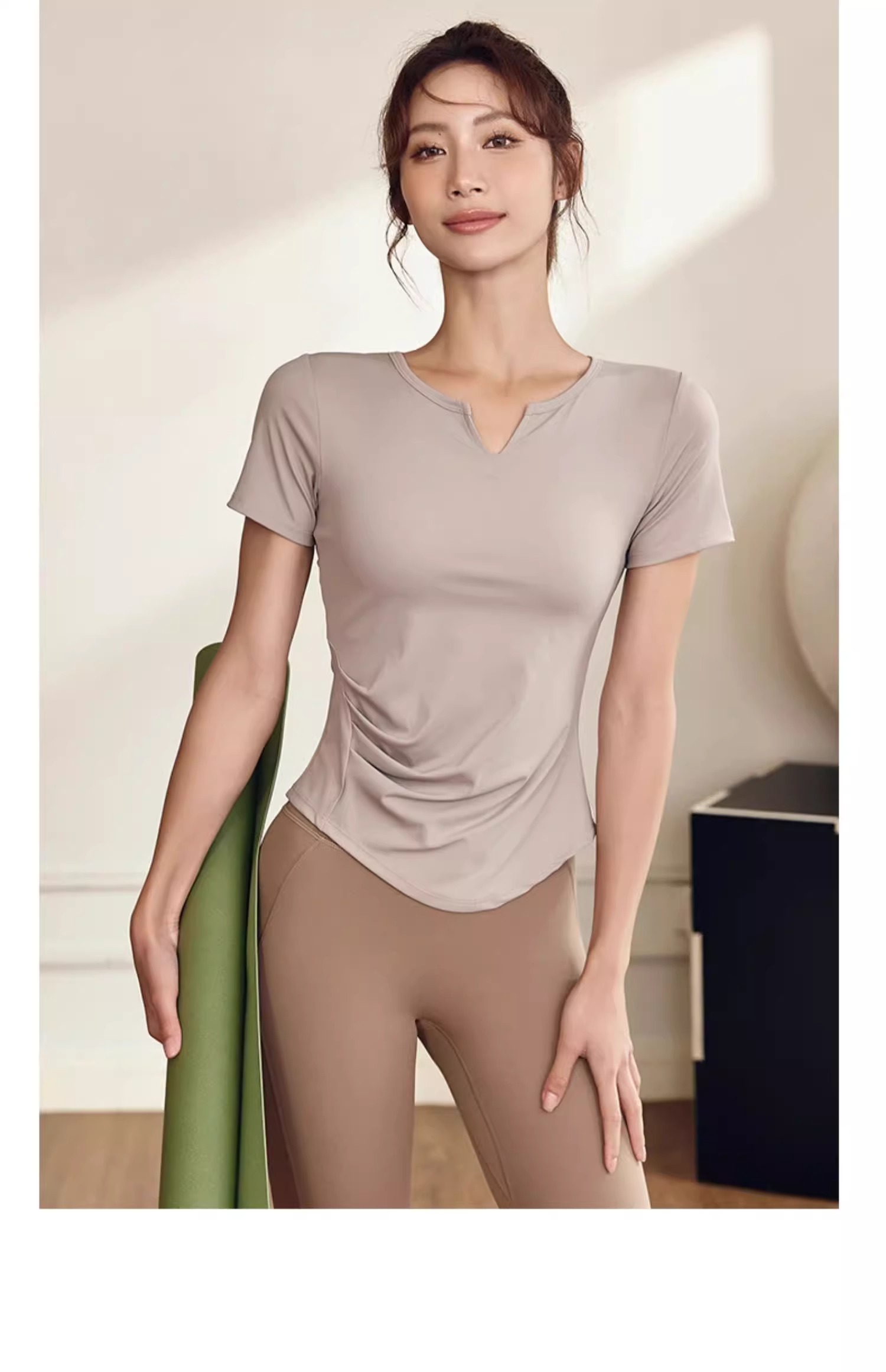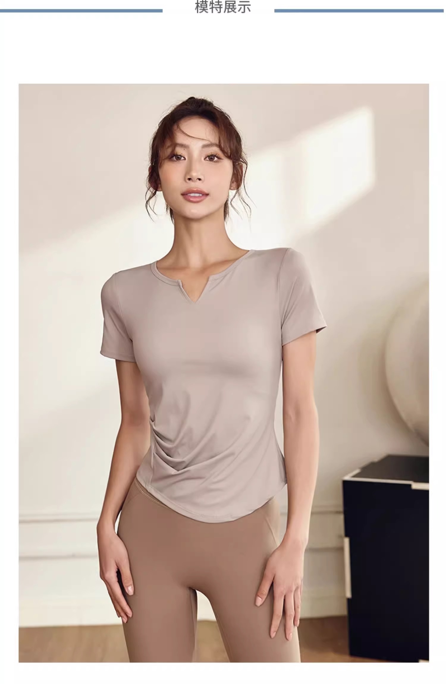 【147元任选3件】跃牌【蚂蚁运动】系列 固定杯T恤女V领瑜伽服上衣T2738(活动产品,收货7天内支持退换)