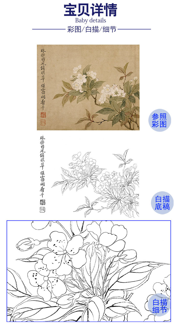 竖幅工笔花鸟白描底稿-寿字图-LQ12