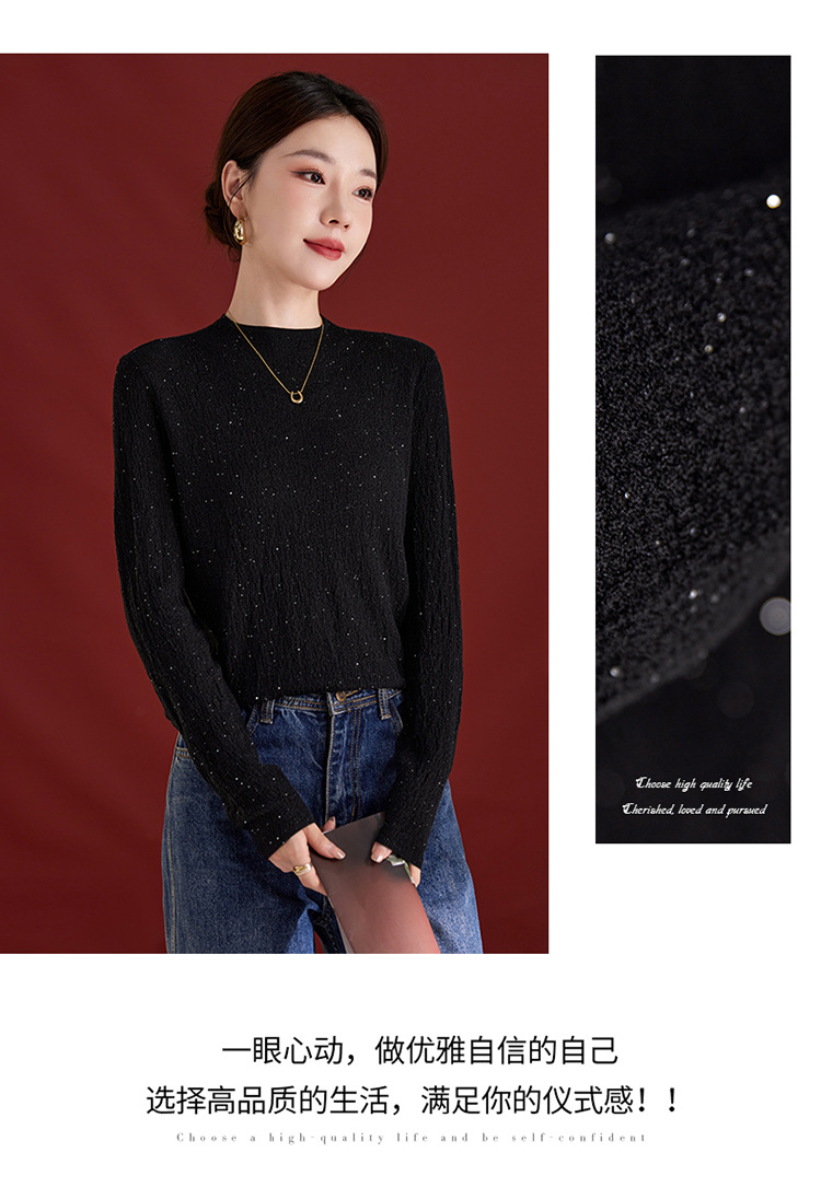 SM 1536一线成衣珠片纱羊毛衫时尚洋气显瘦毛衣圆领针织衫 商品图0