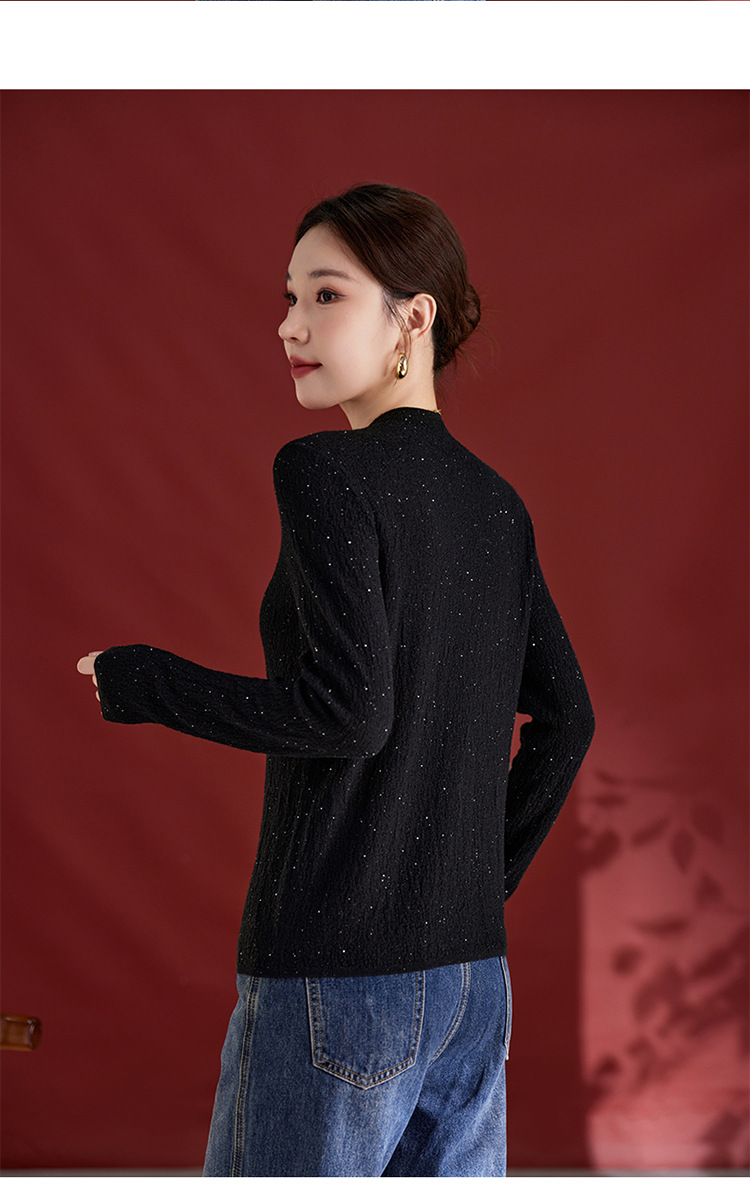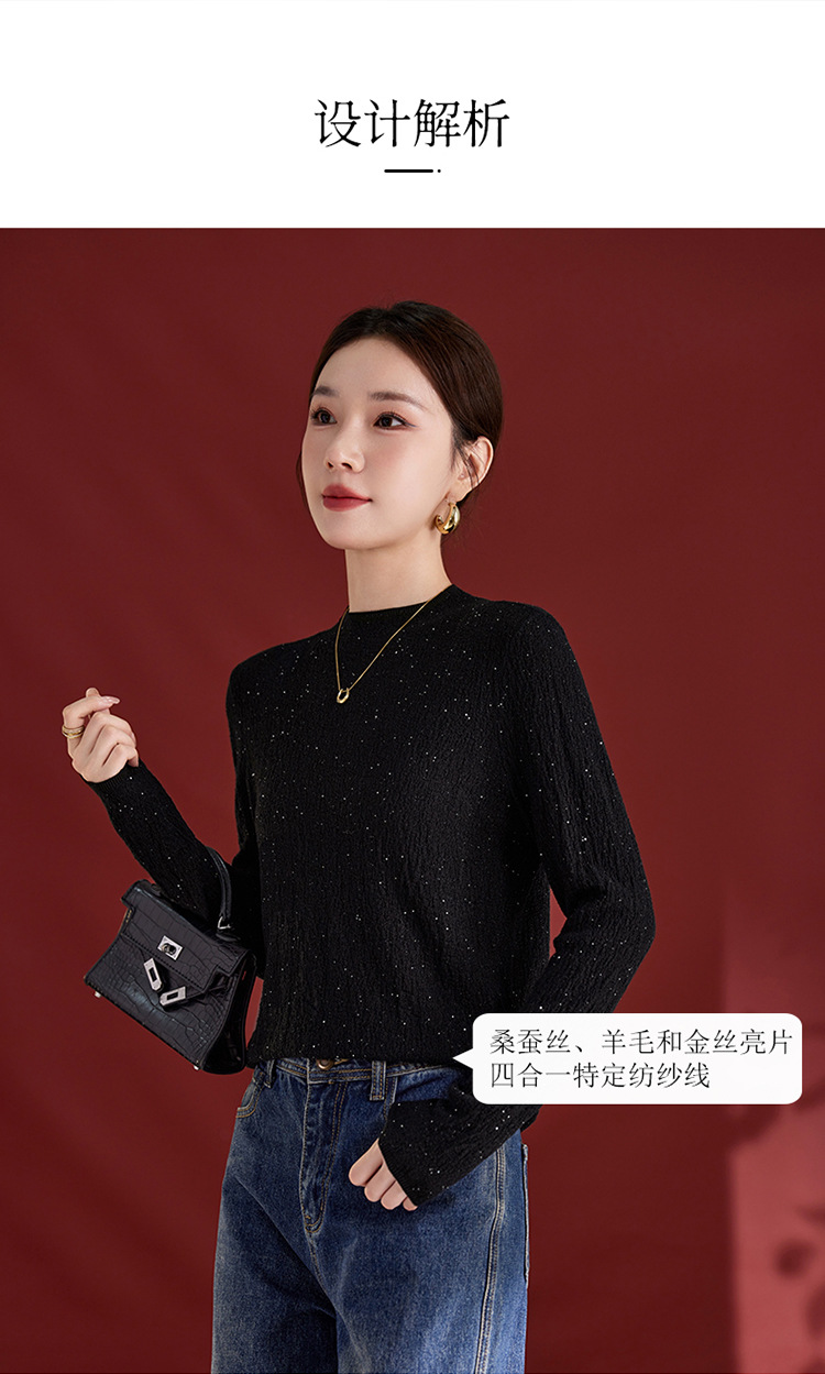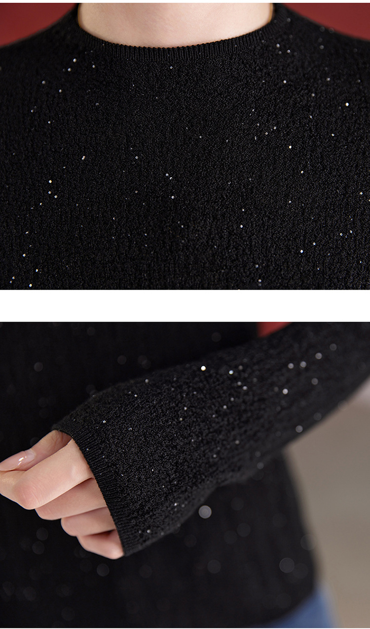 SM 1536一线成衣珠片纱羊毛衫时尚洋气显瘦毛衣圆领针织衫 商品图3