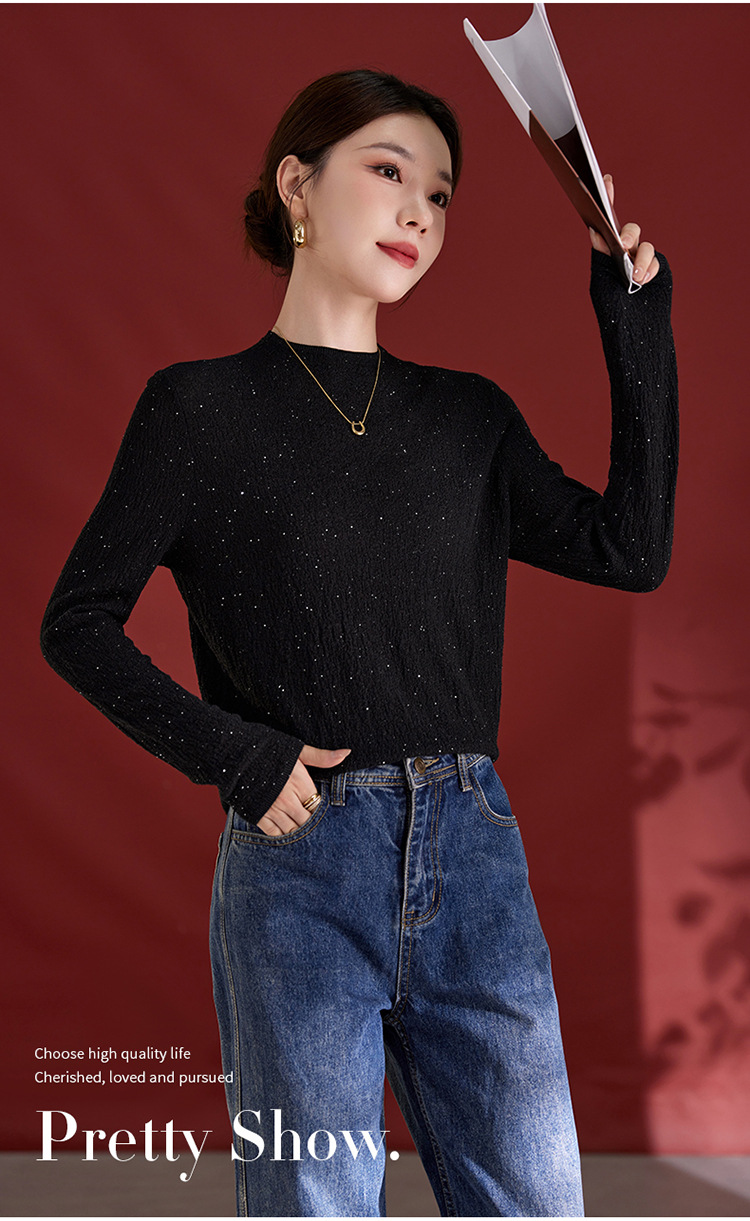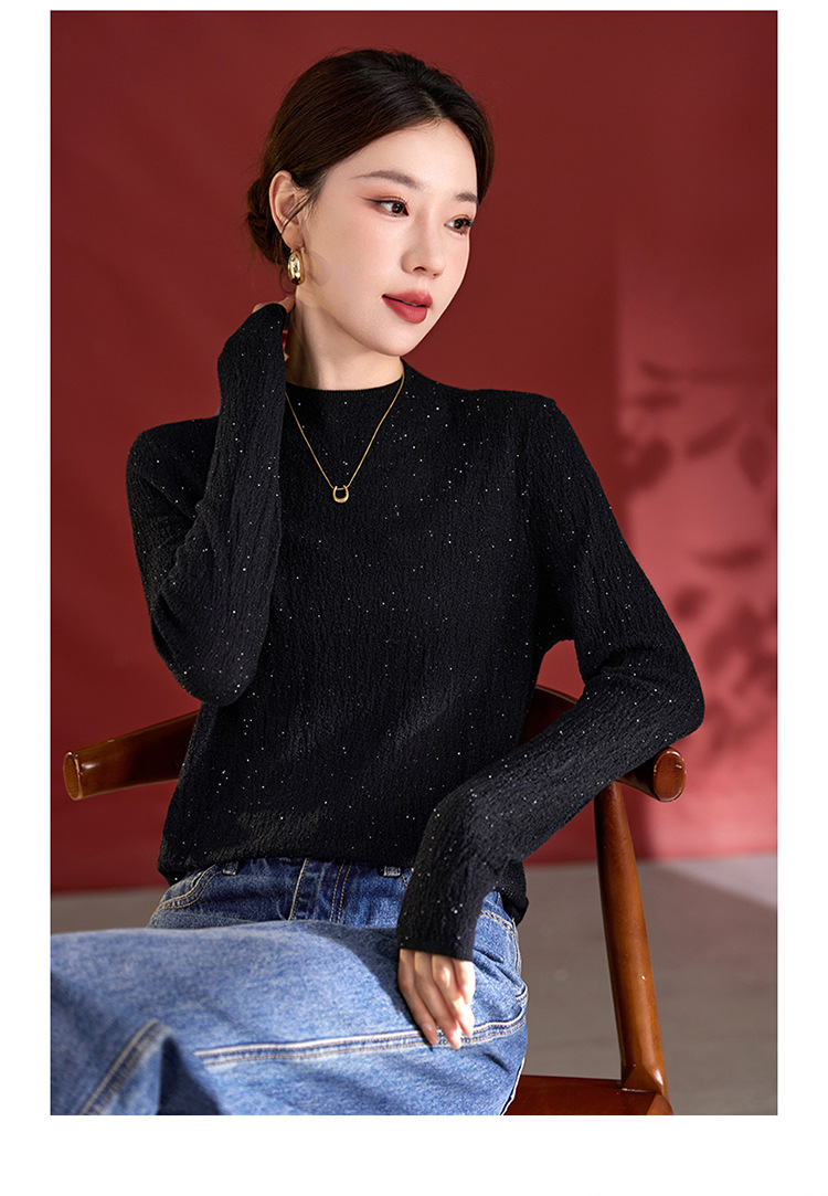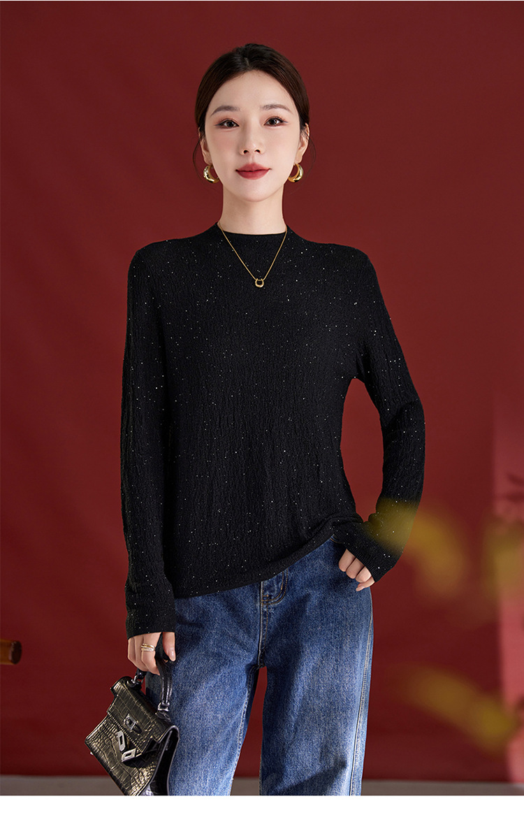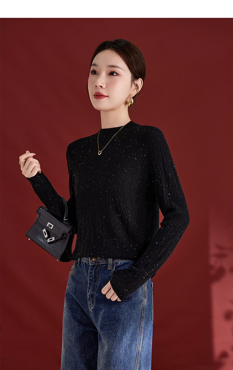 SM 1536一线成衣珠片纱羊毛衫时尚洋气显瘦毛衣圆领针织衫 商品图3