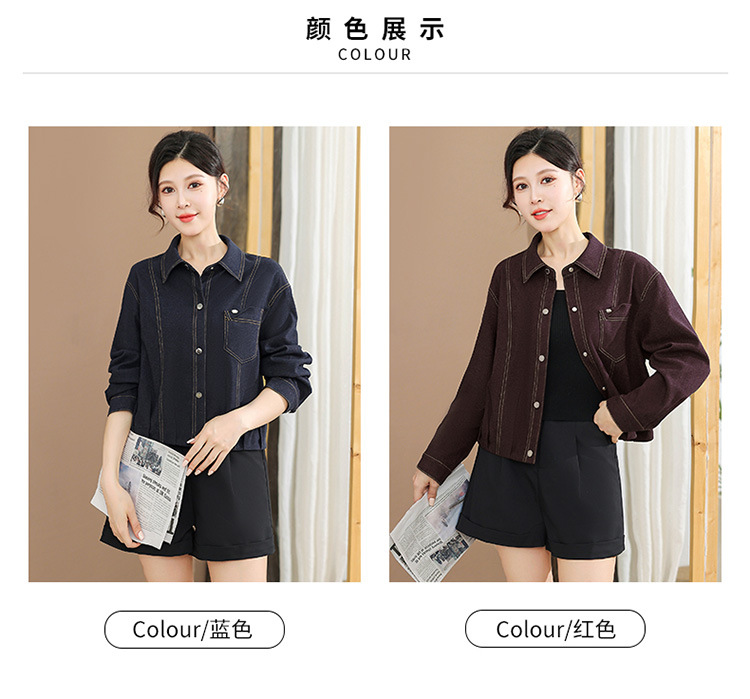 QYM YB25B63-Y外套宽松时尚休闲翻领牛仔长袖上衣 商品图2