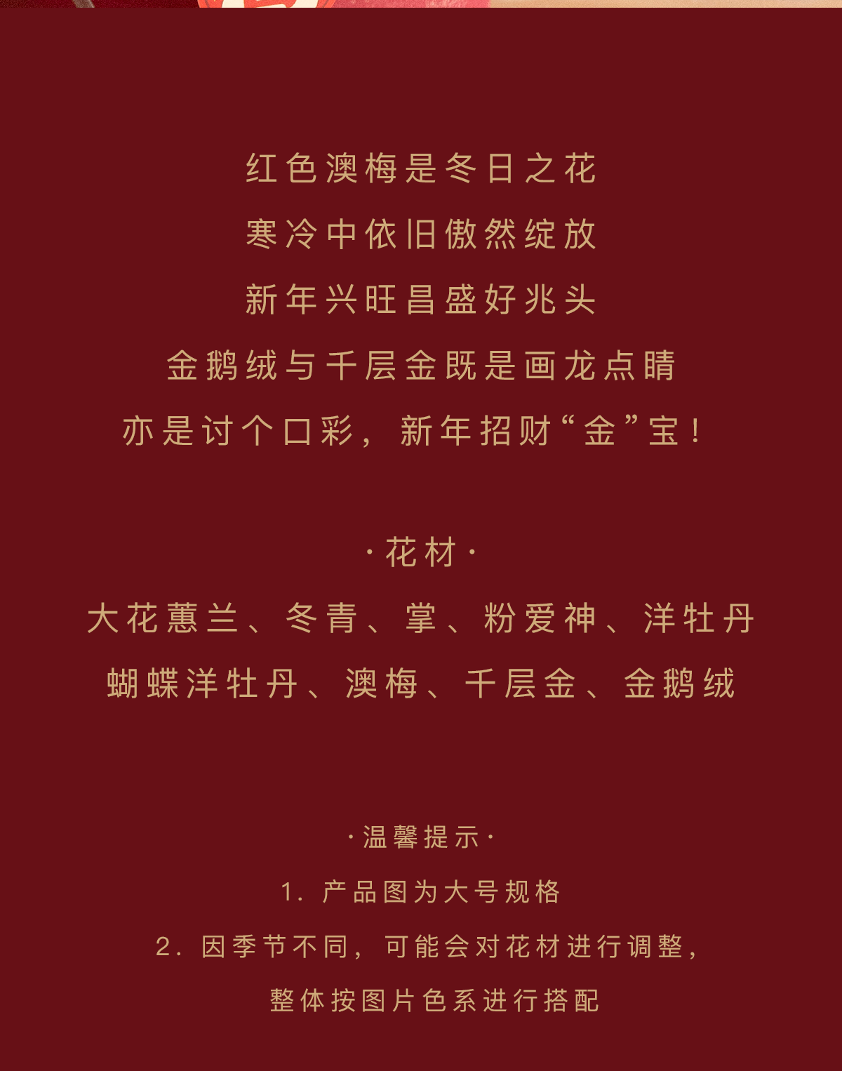 温馨提示:因季节不同会对花材进行调整,整体按图片色系进行搭配。