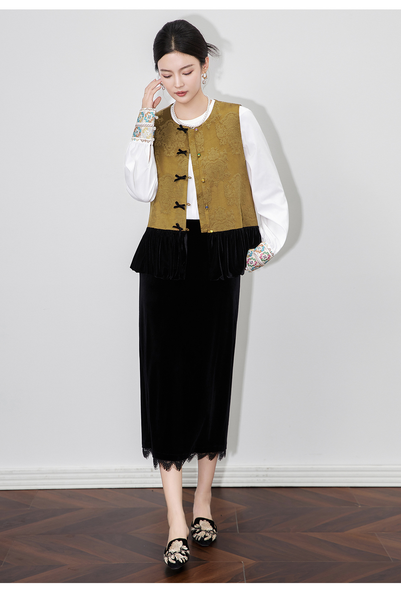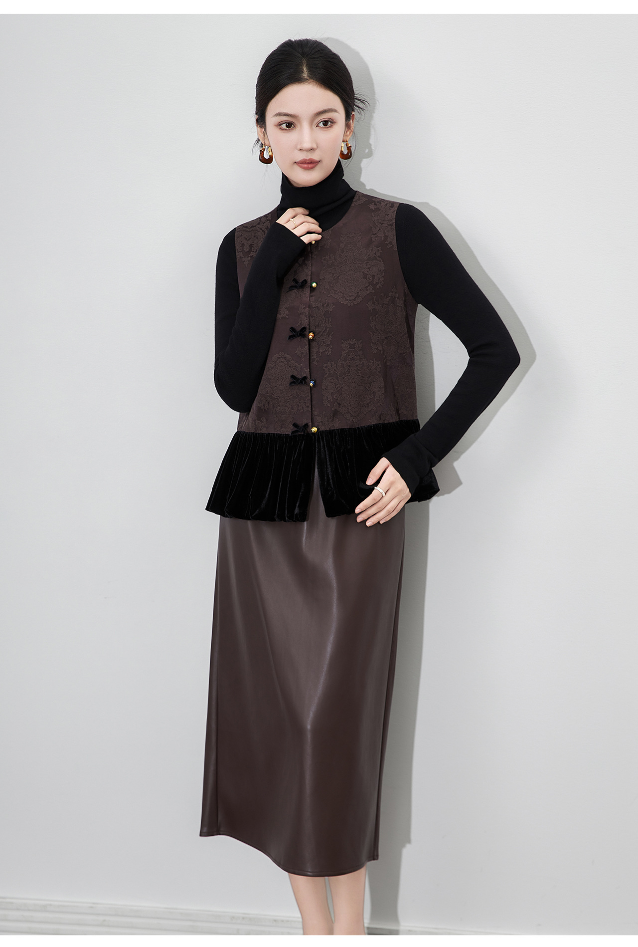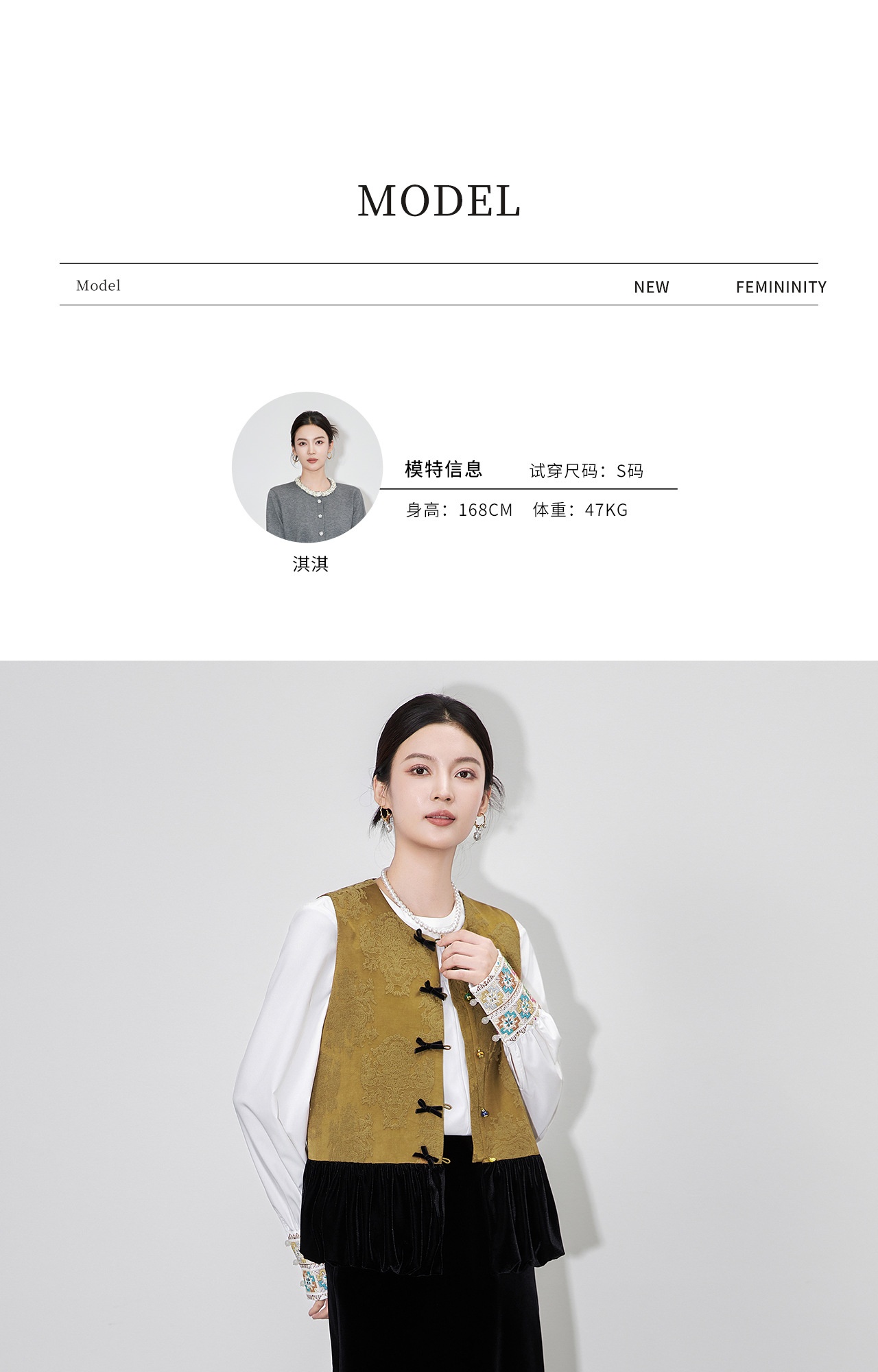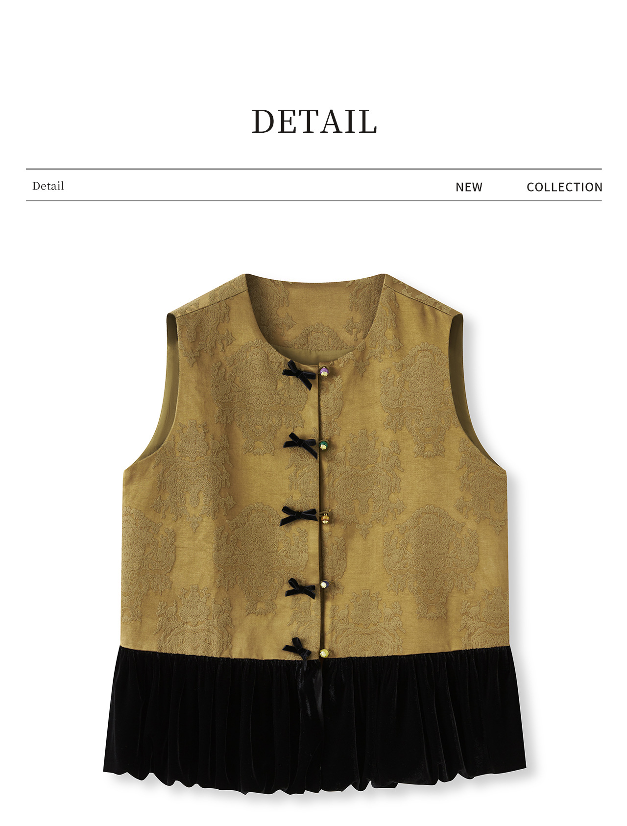 「高货wl」全新升级【铂金会员330/天猫439/差价109】(15459)洛诗琳新中式提花拼接丝绒马甲2025秋季衣显瘦国风上衣
