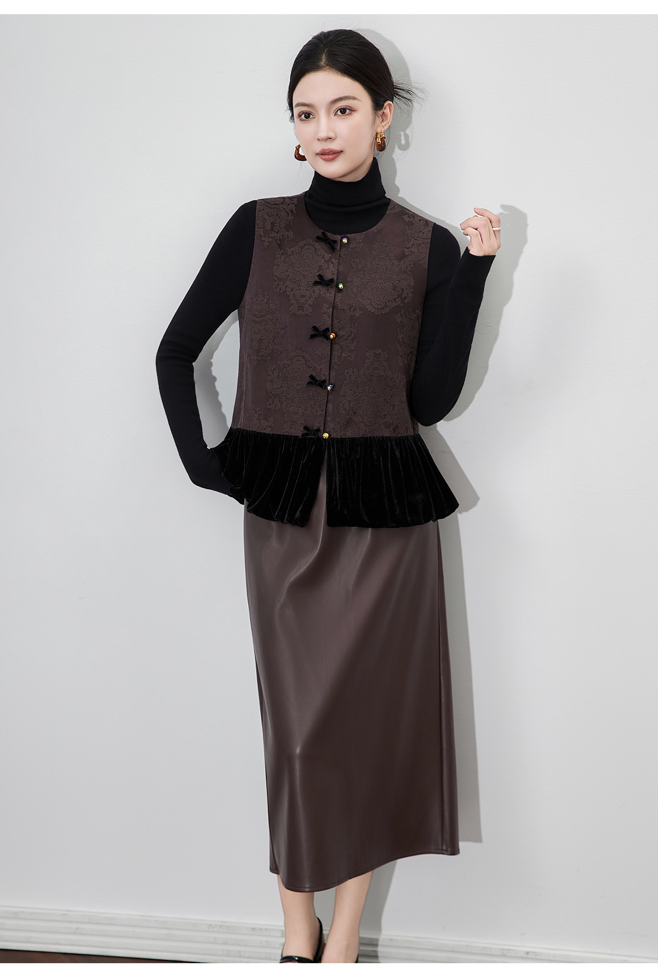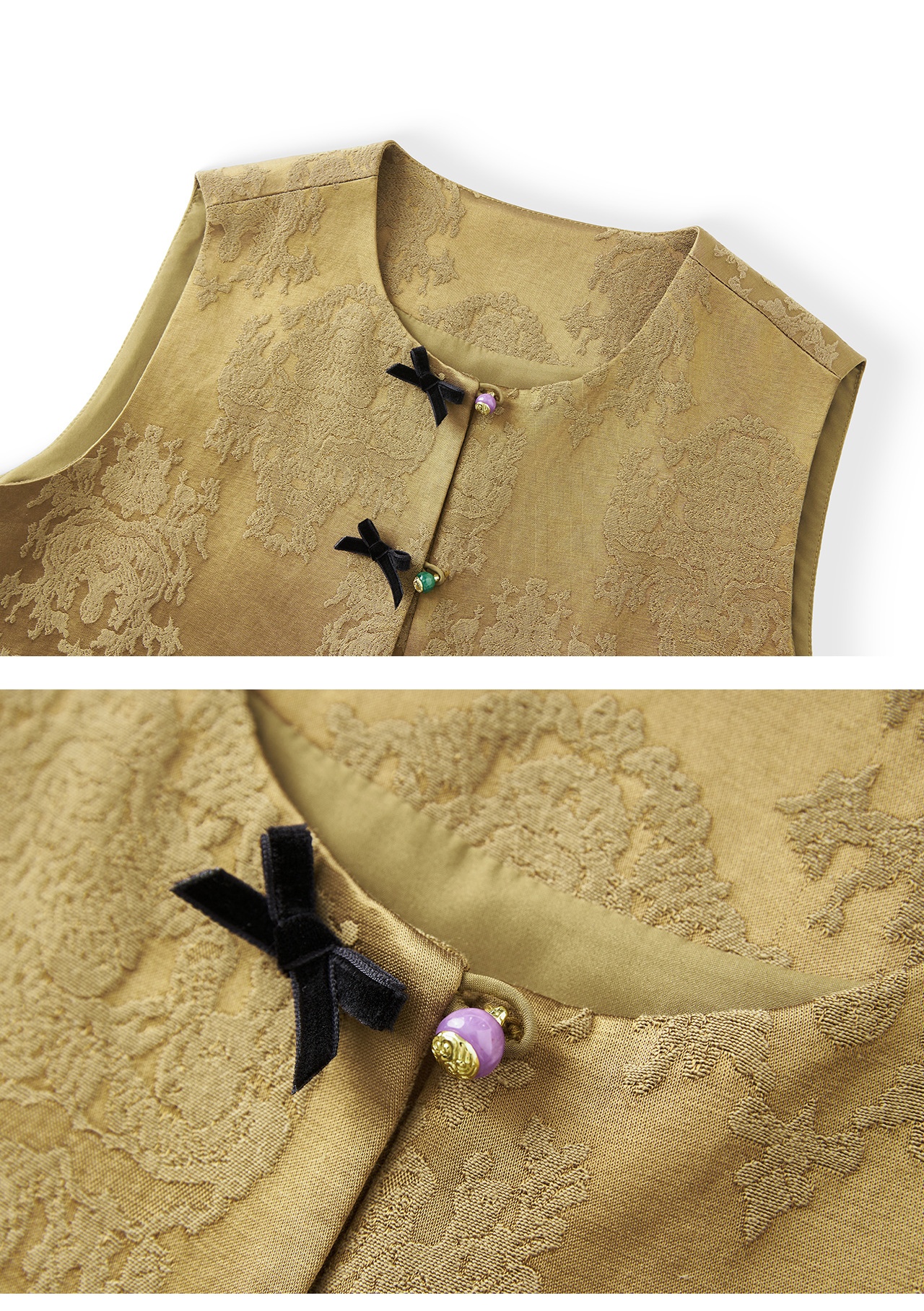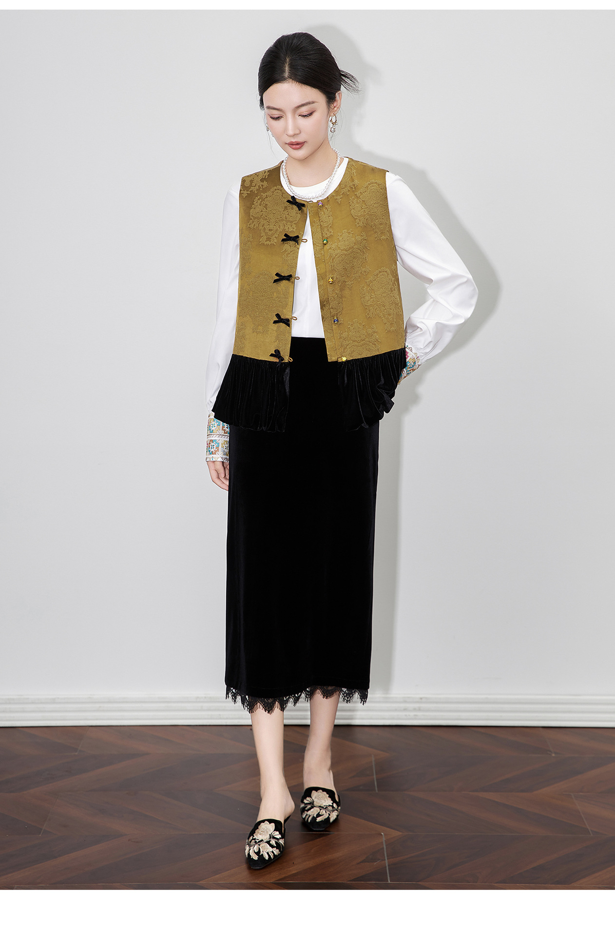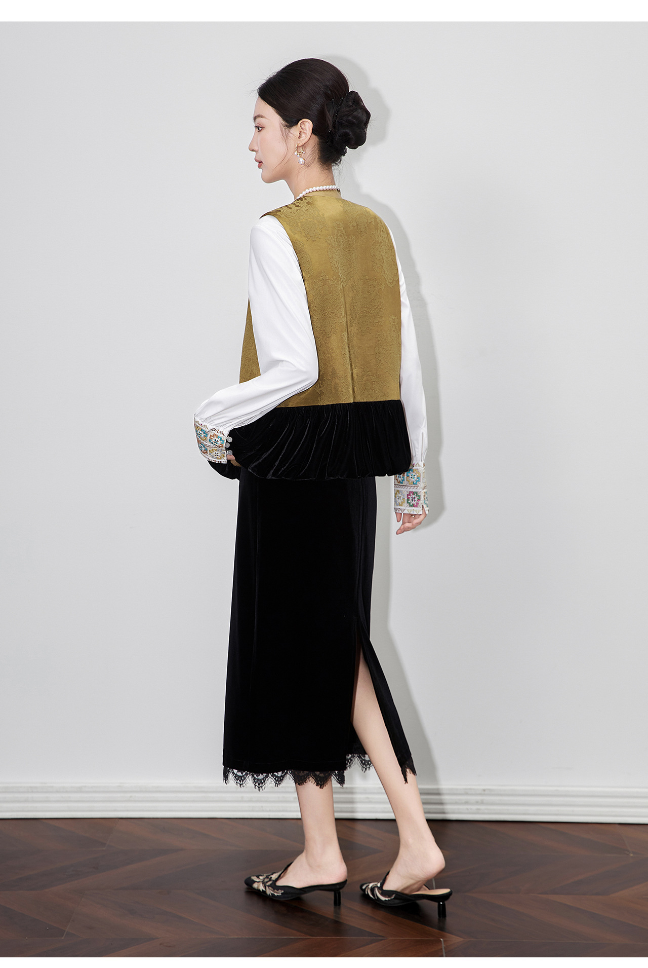 「高货wl」全新升级【铂金会员330/天猫439/差价109】(15459)洛诗琳新中式提花拼接丝绒马甲2025秋季衣显瘦国风上衣