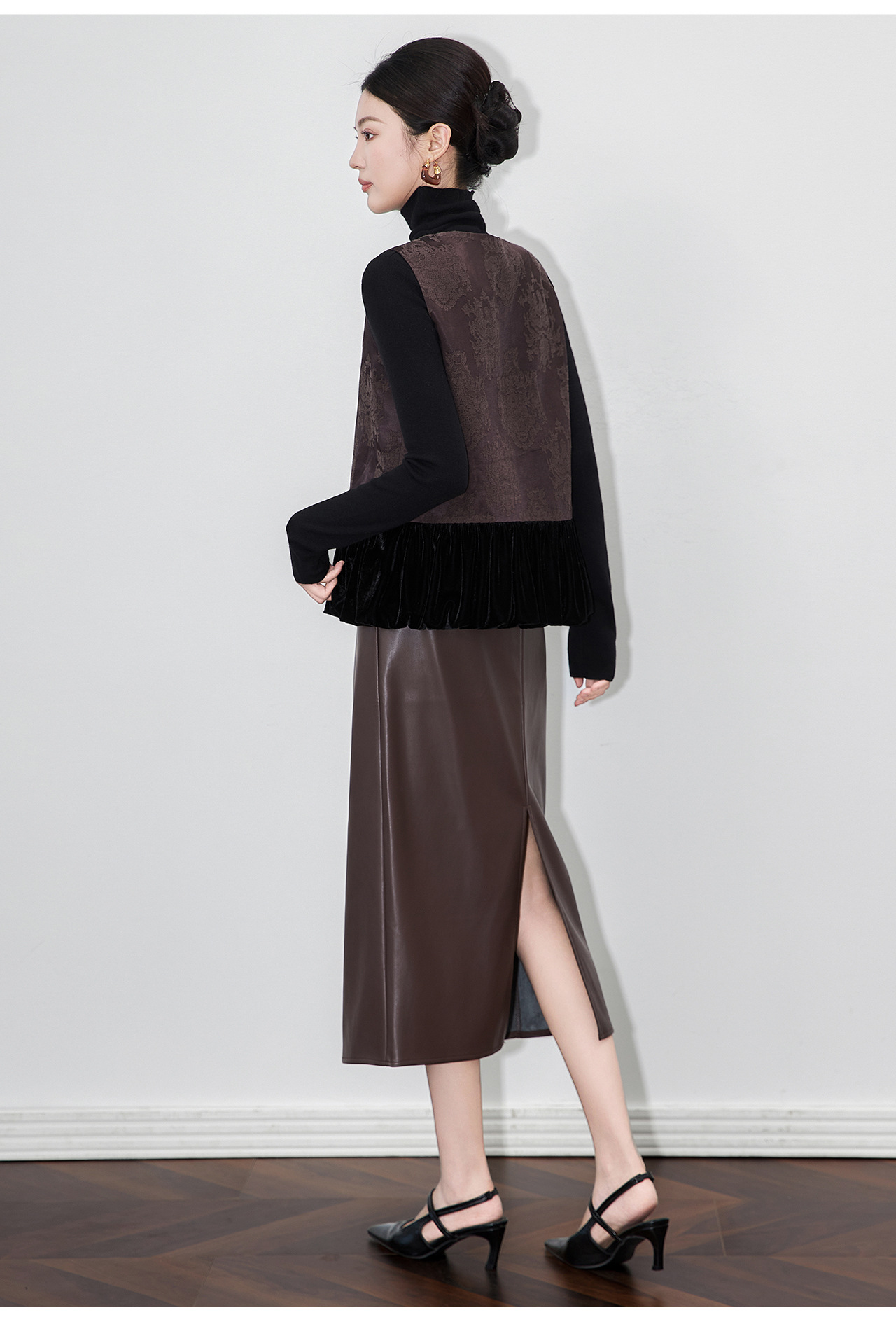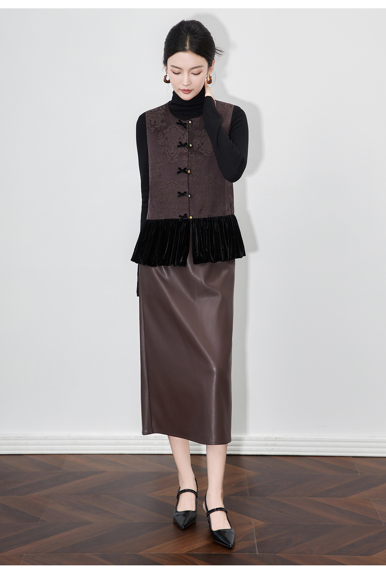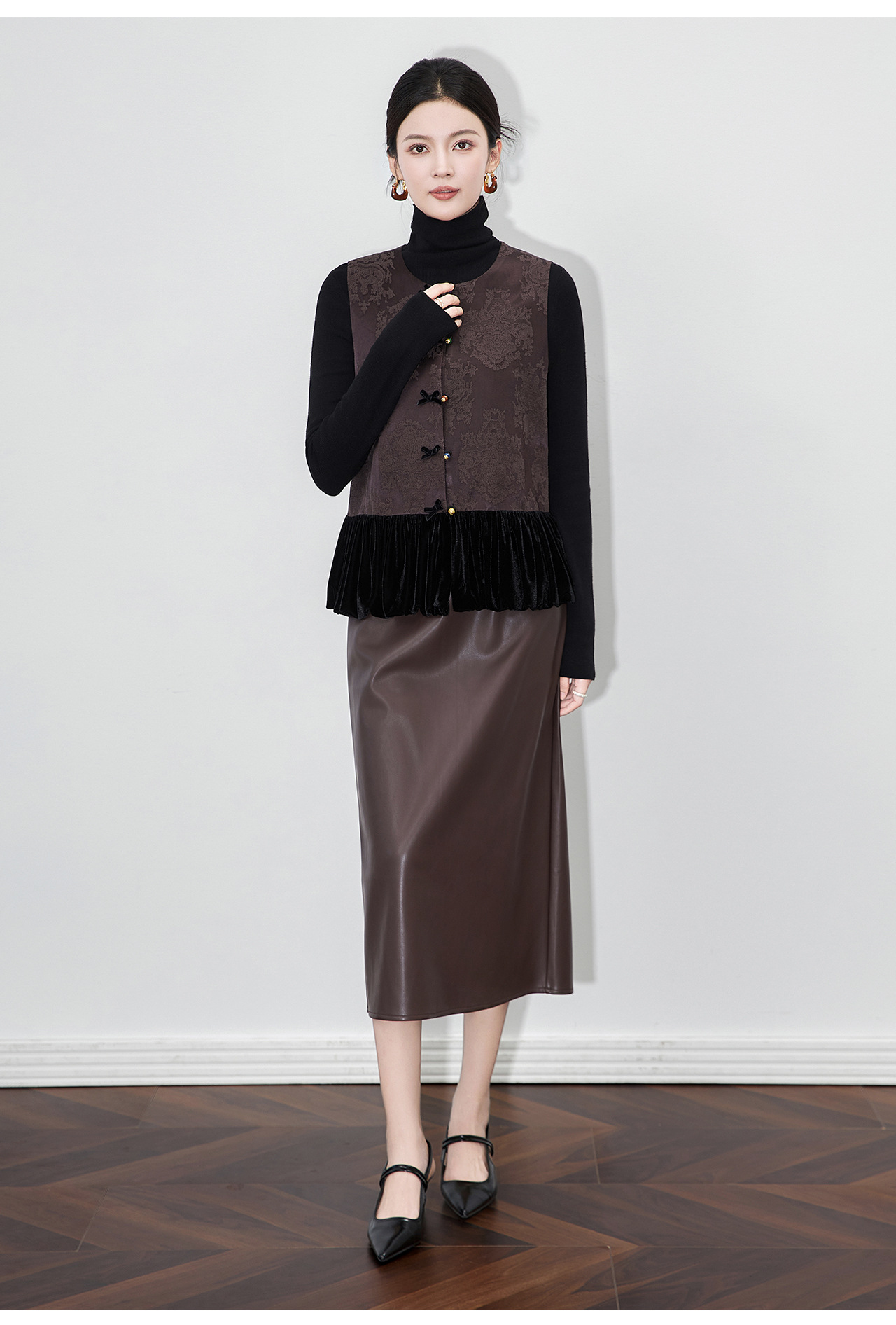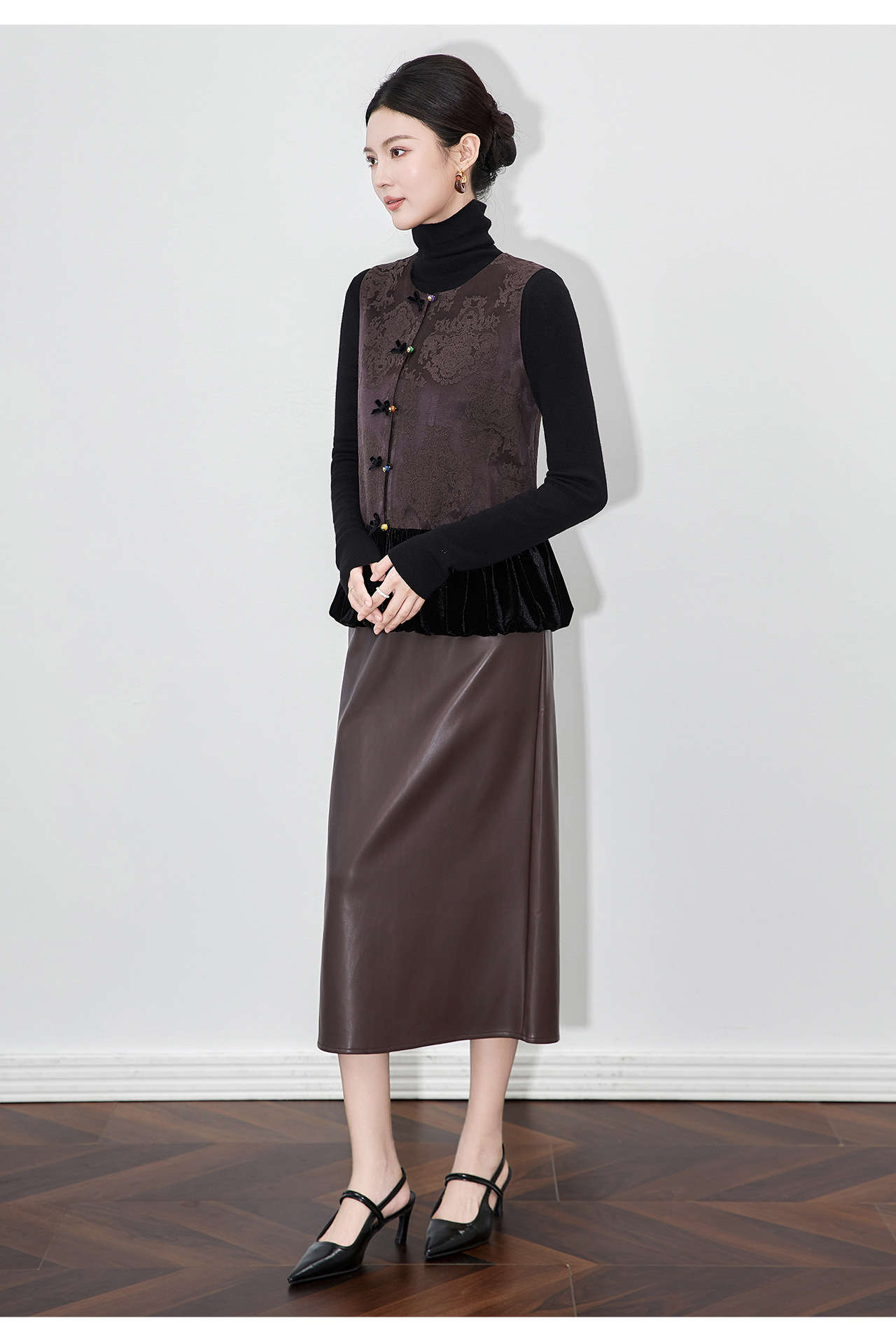 「高货wl」全新升级【铂金会员330/天猫439/差价109】(15459)洛诗琳新中式提花拼接丝绒马甲2025秋季衣显瘦国风上衣