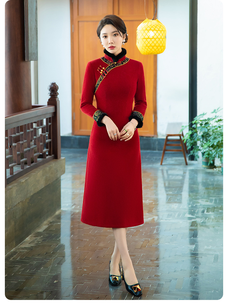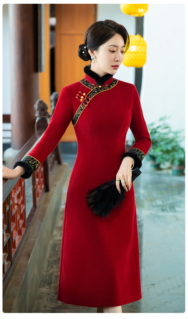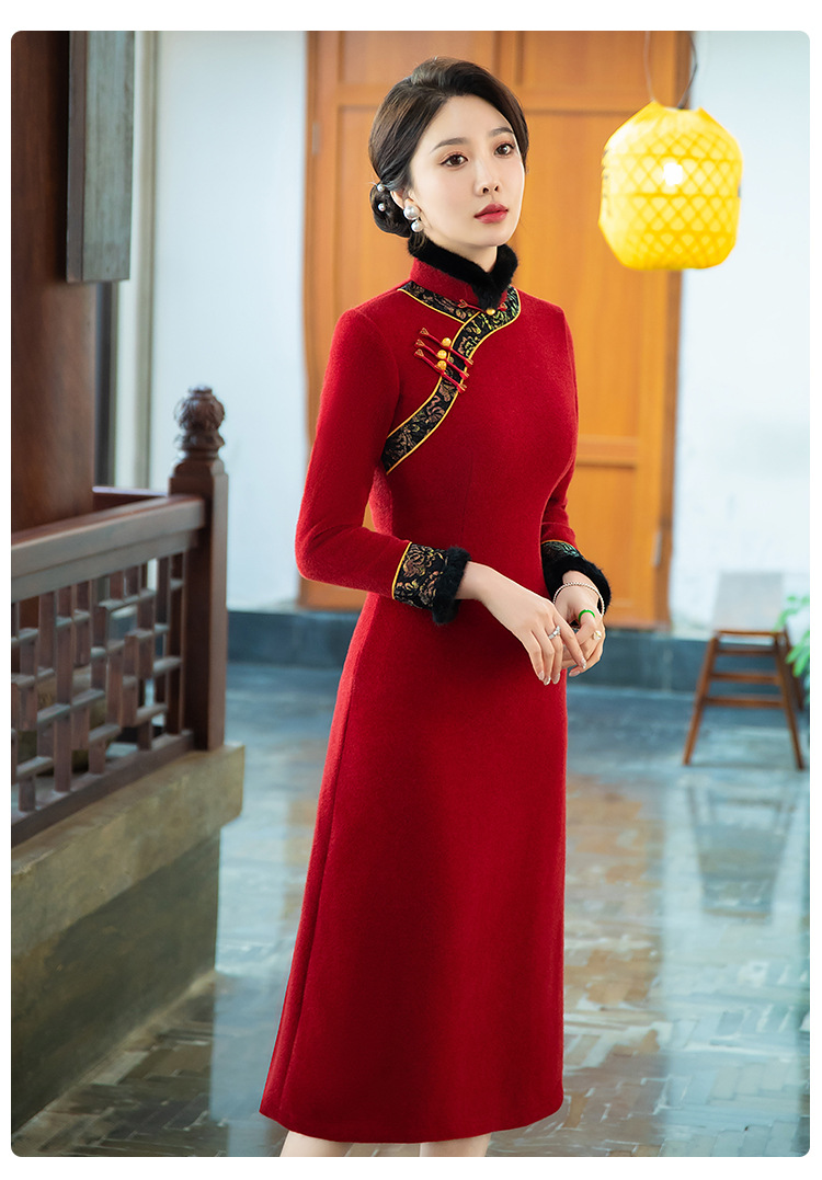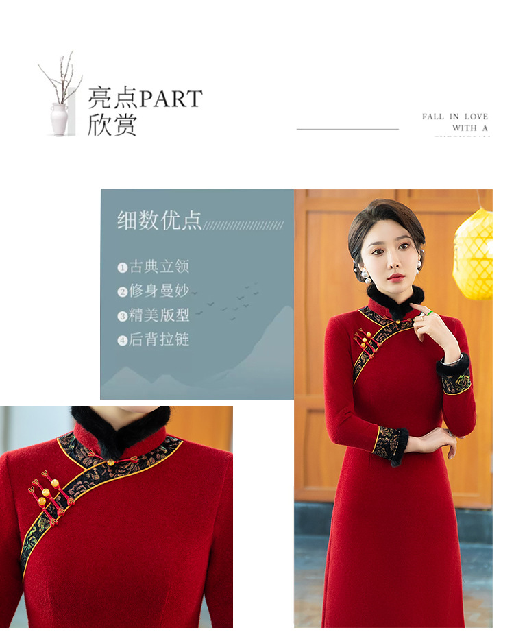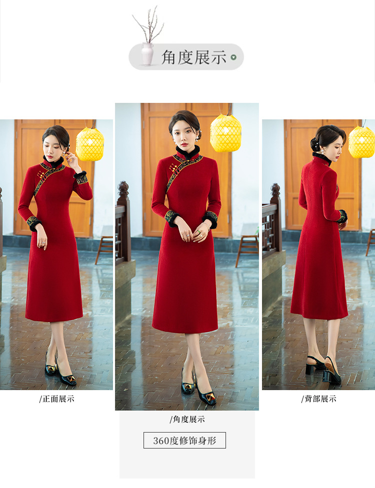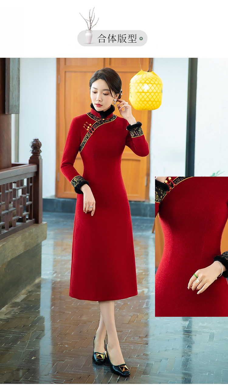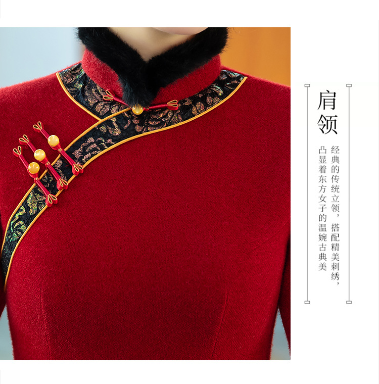 SYG-760喜婆婆婚婚宴旗袍秋冬毛领新款冬款改良中国风长袖婚礼