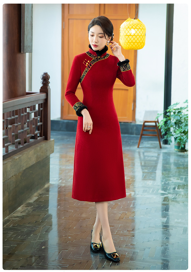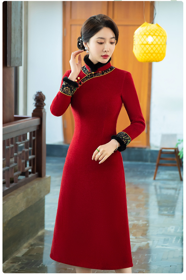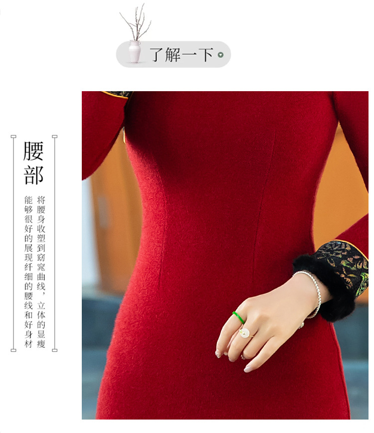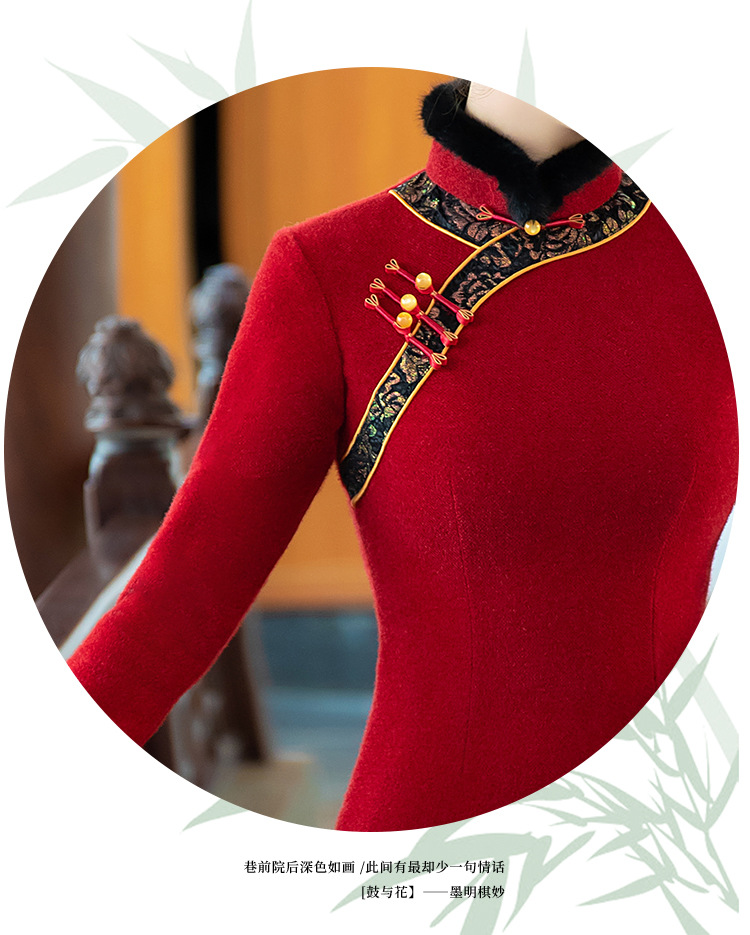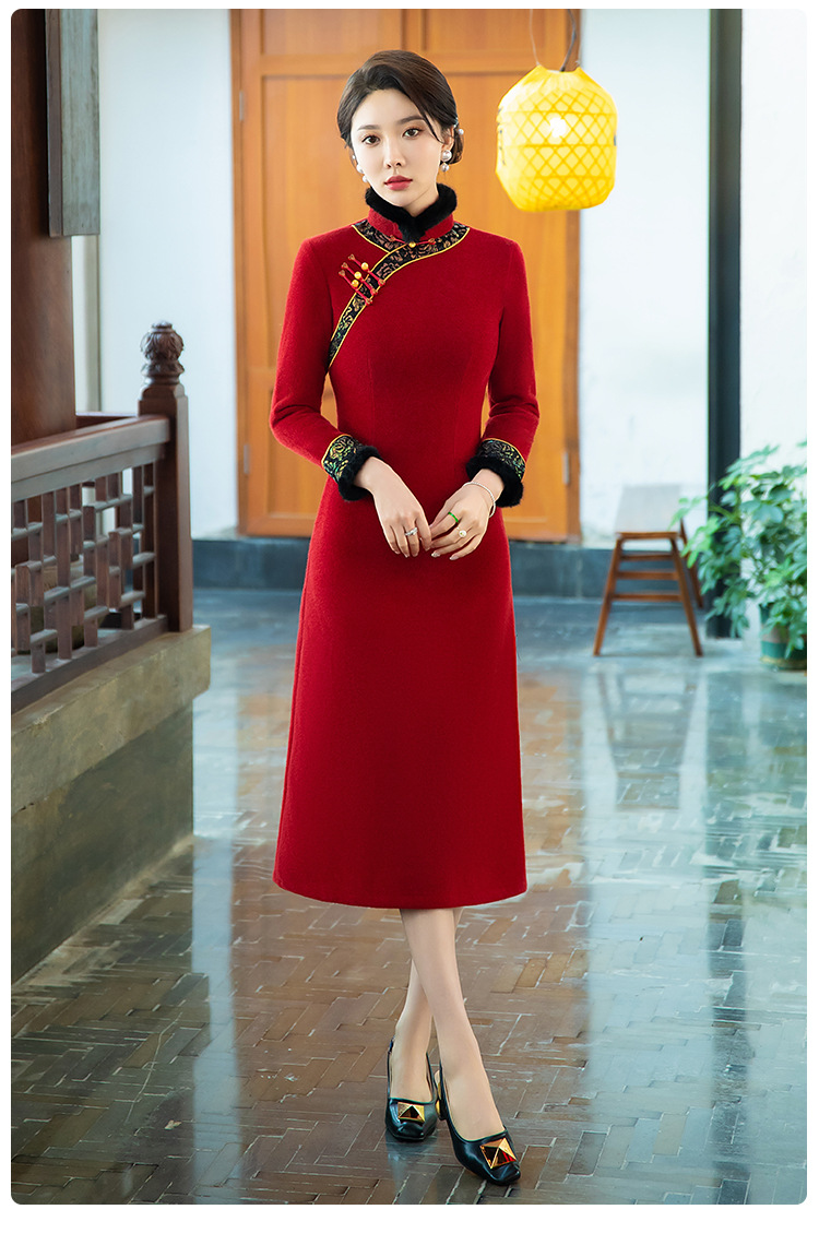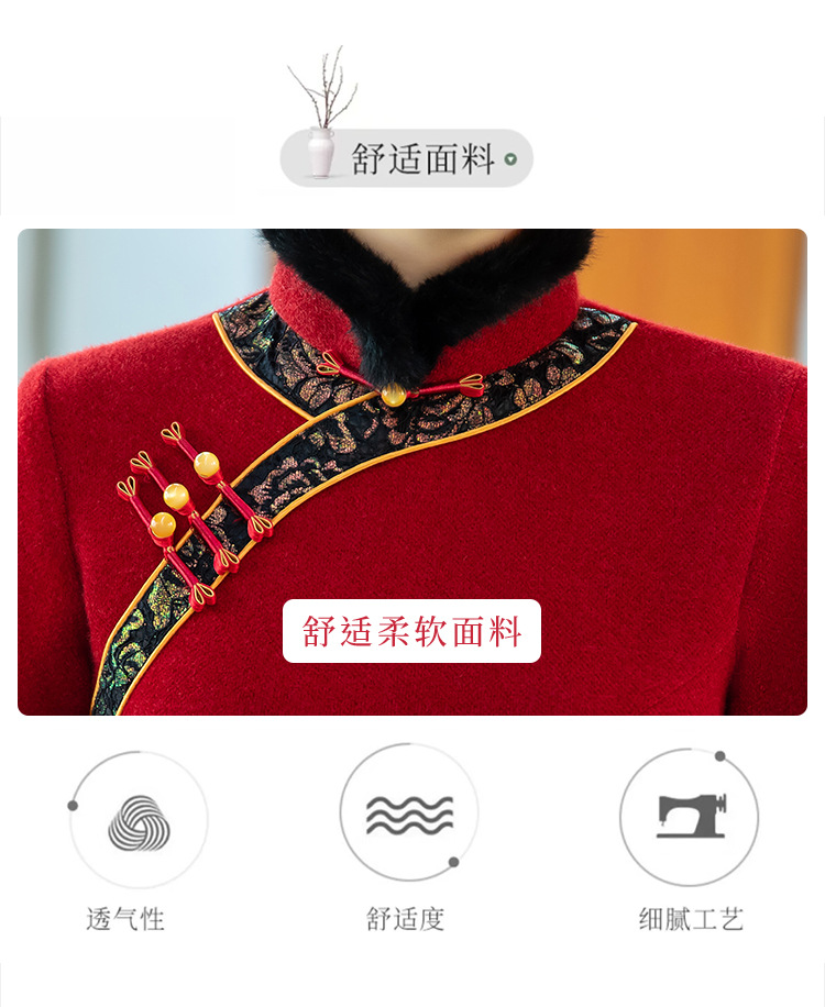 SYG-760喜婆婆婚婚宴旗袍秋冬毛领新款冬款改良中国风长袖婚礼