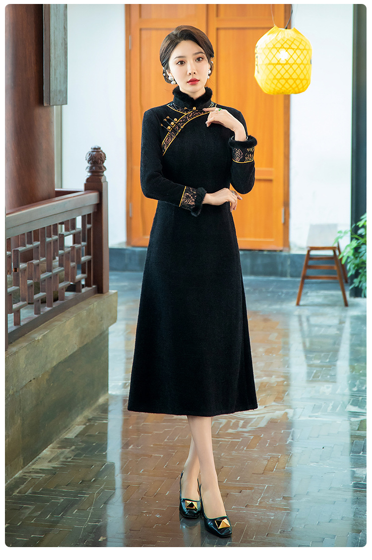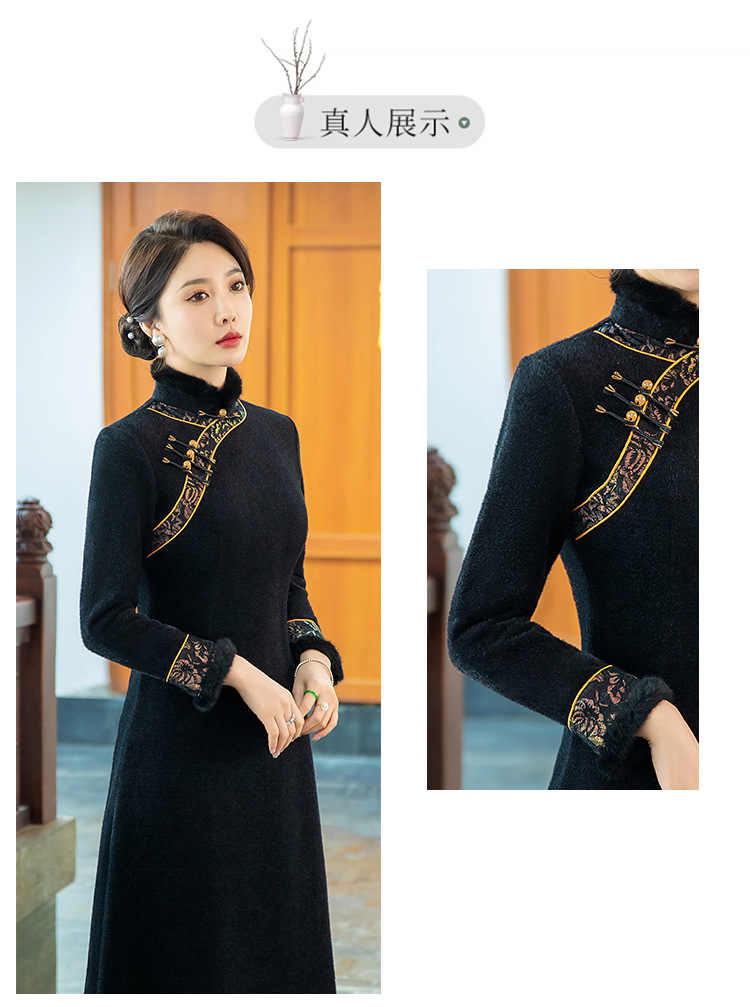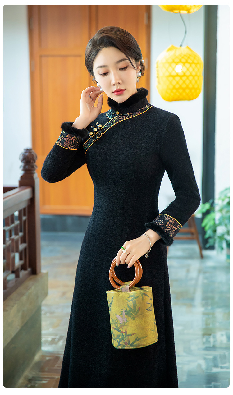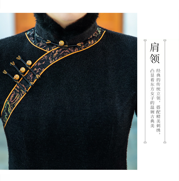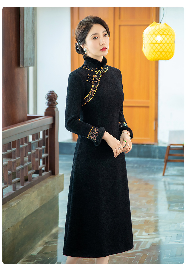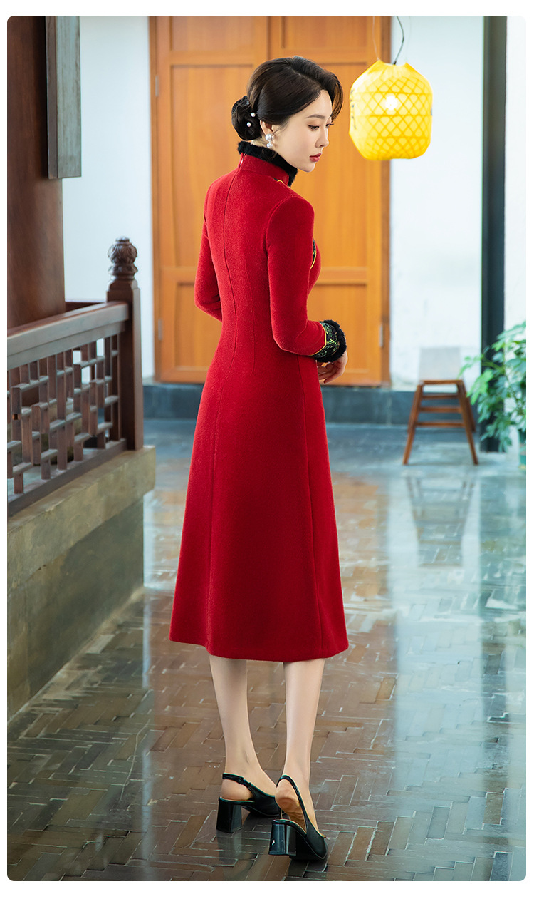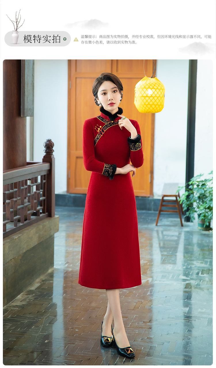 SYG-760喜婆婆婚婚宴旗袍秋冬毛领新款冬款改良中国风长袖婚礼
