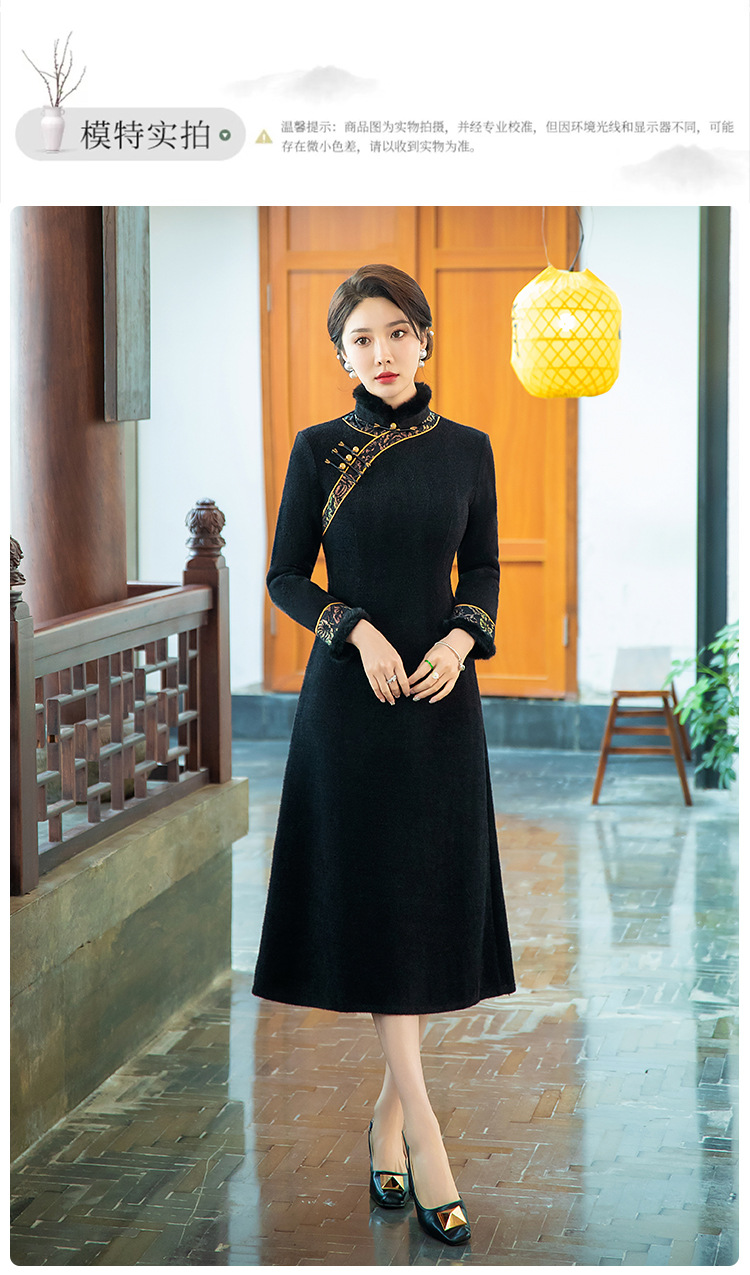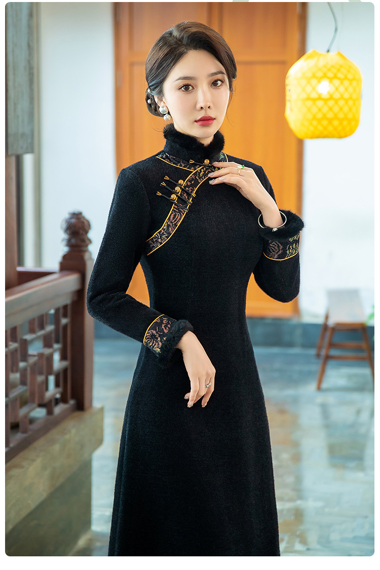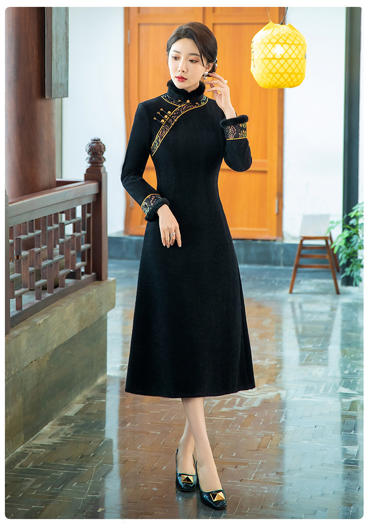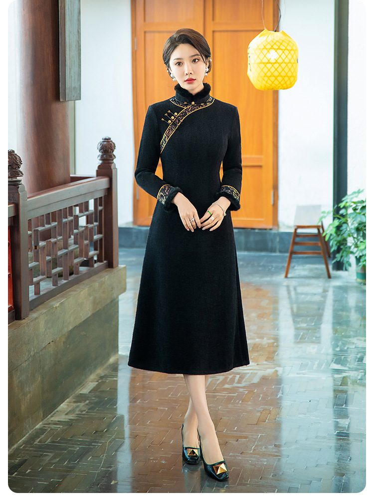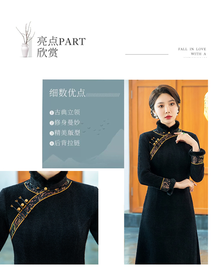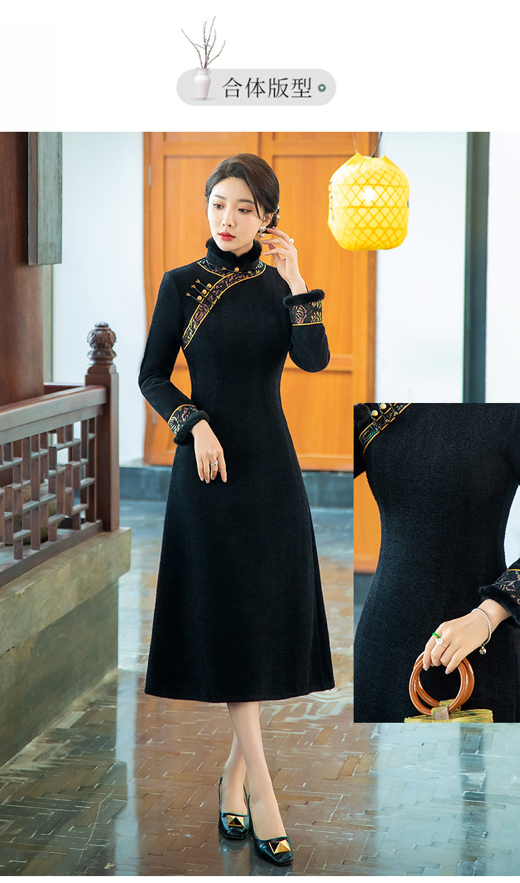SYG-760喜婆婆婚婚宴旗袍秋冬毛领新款冬款改良中国风长袖婚礼