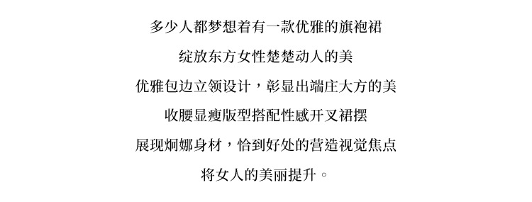 - 旗袍,属于上海的别样文化和魅力。女人的风韵,谁不曾梦见过在黄昏的小巷里,哒哒的高跟鞋声,摇摆的女子的背影,渐远渐远......