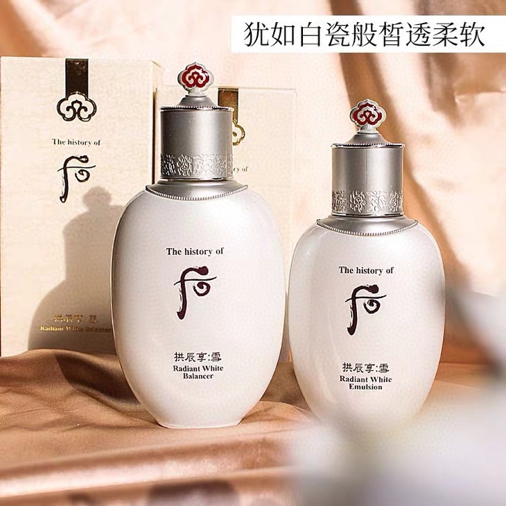 WHOO拱辰享雪#美白水/#美白乳👍拱辰享雪系列主打的是美白🌟,能击退各种原因造成的色素沉淀,淡斑补水💦。而且它还能晒后修复☀,击退暗黄,让你的肤色更亮白,并还带有初期抗老👊的效果。建议肤色不均、暗黄有褐斑、想要美白的宝宝必备🉐,非常的温和,质地特别清爽🍃没有油腻的赶脚哦~