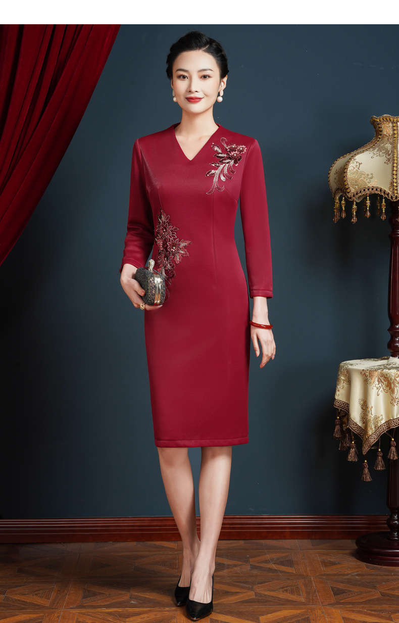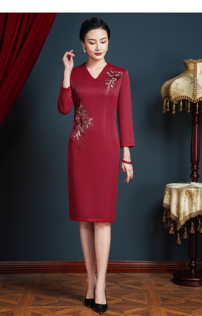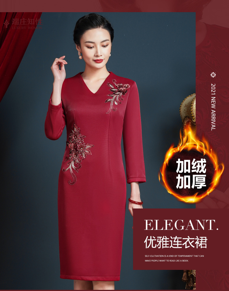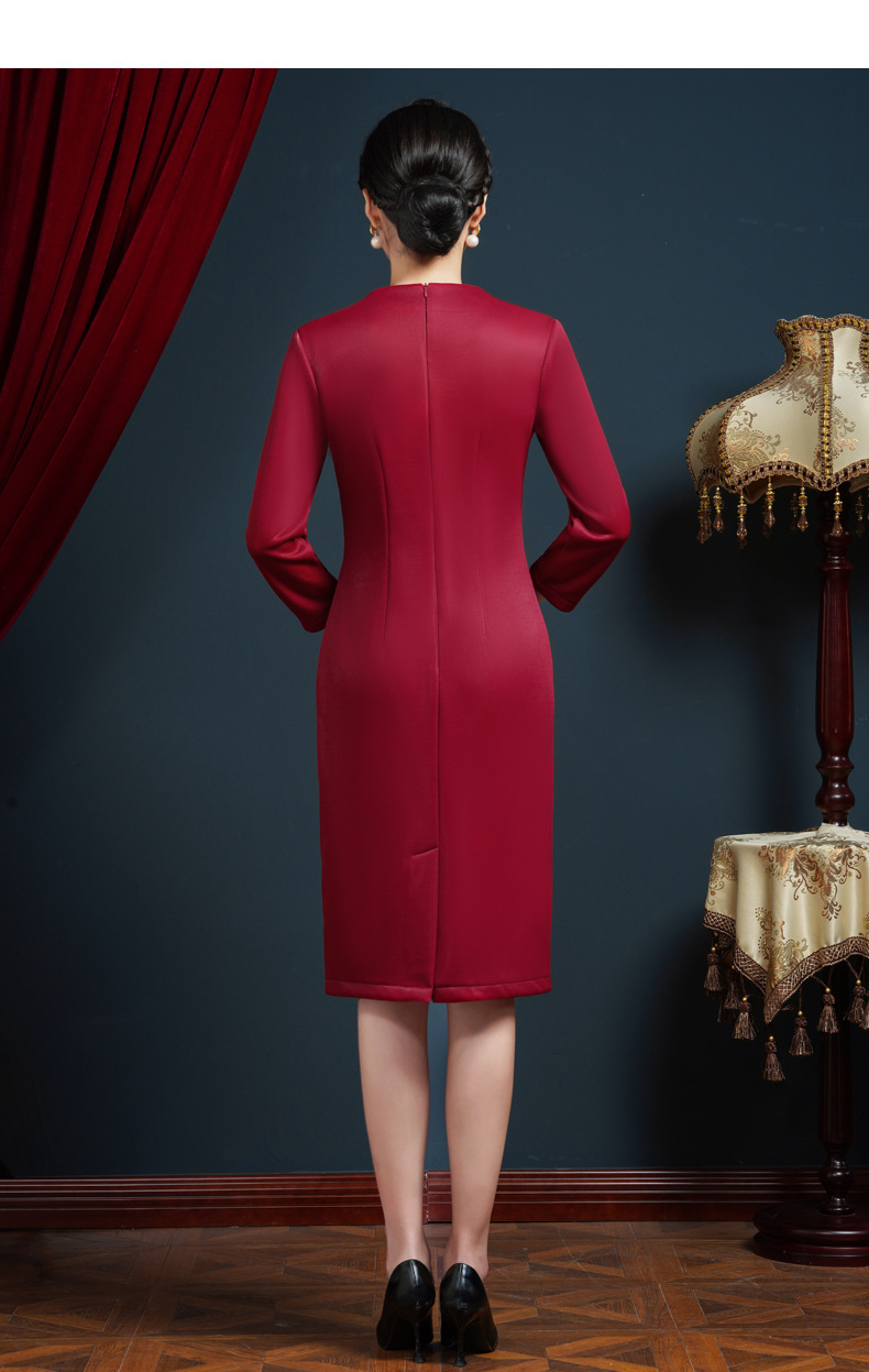 上海旗袍厂JC-62300婚宴装大码连衣裙年轻婚礼礼服高贵丈母娘加绒加厚秋冬