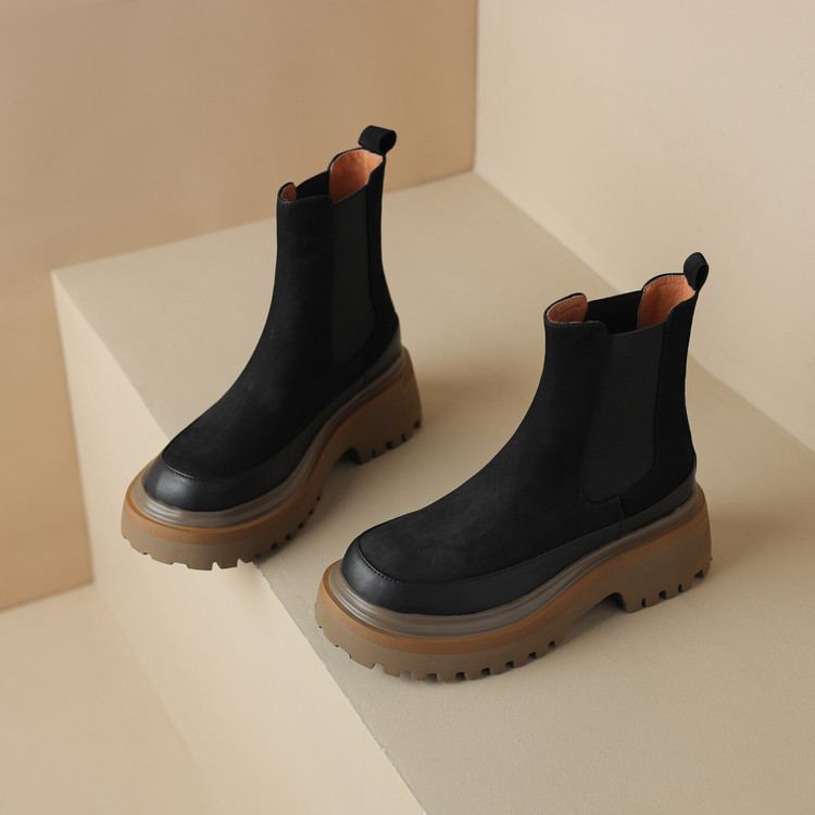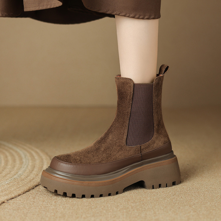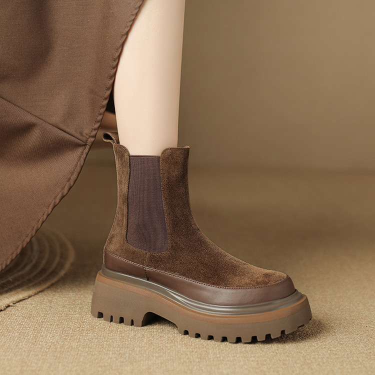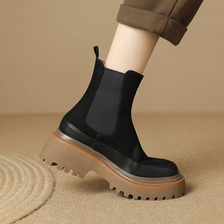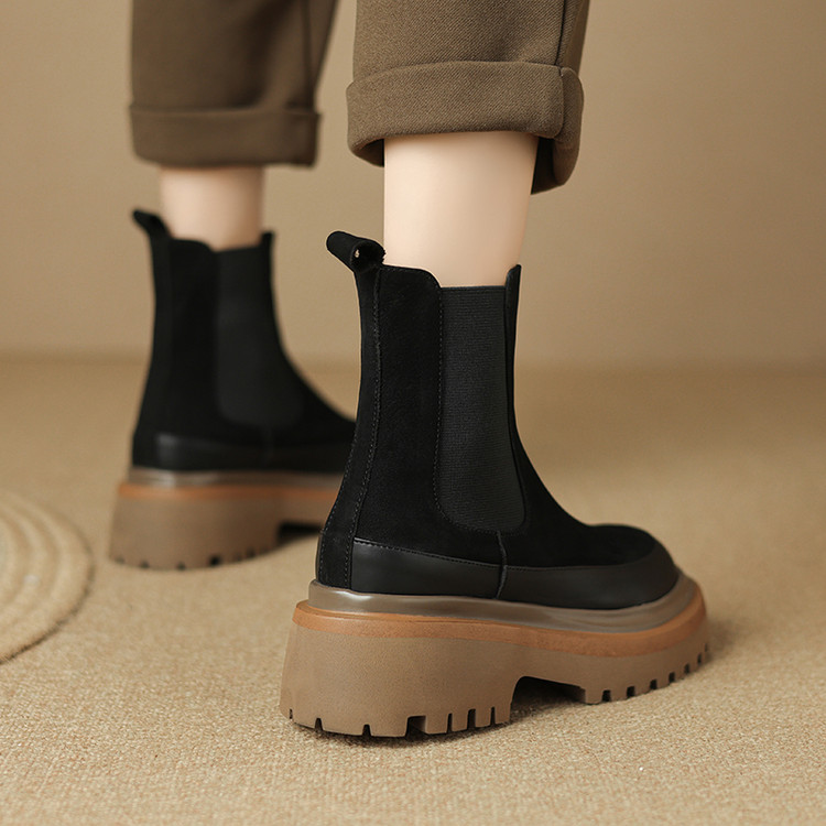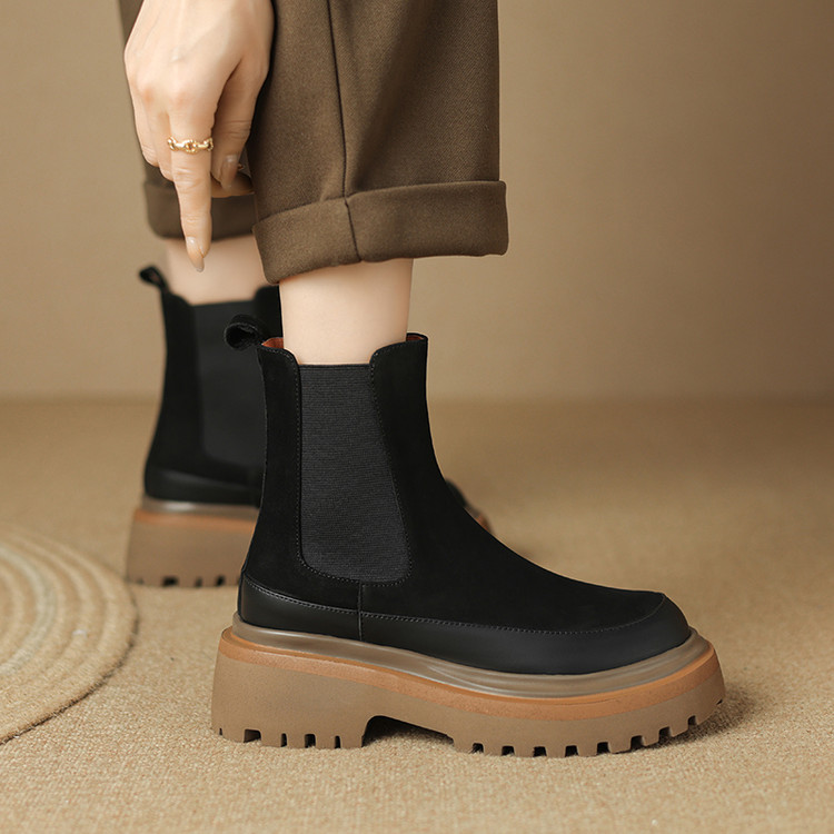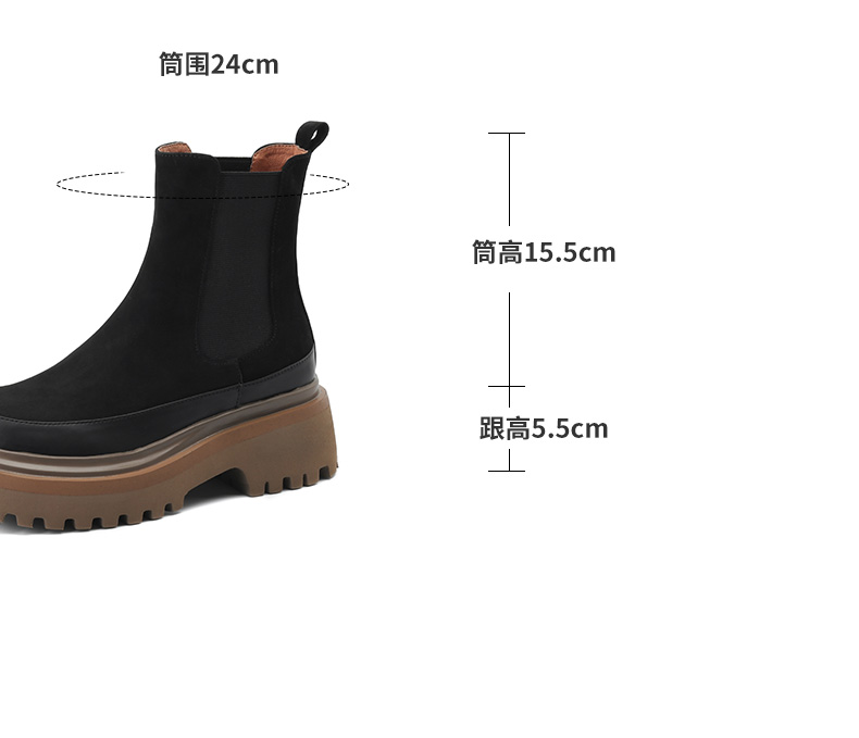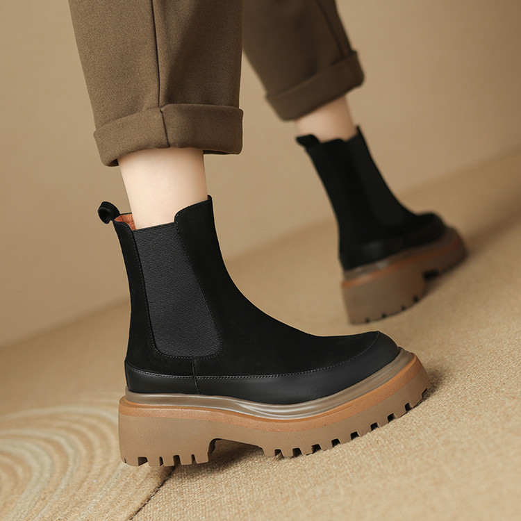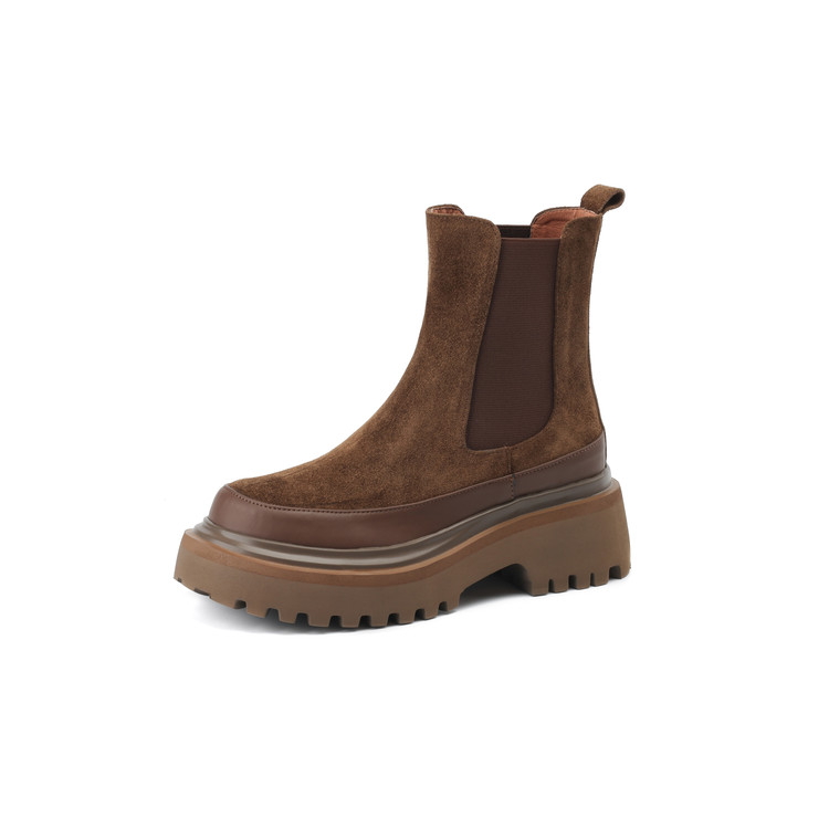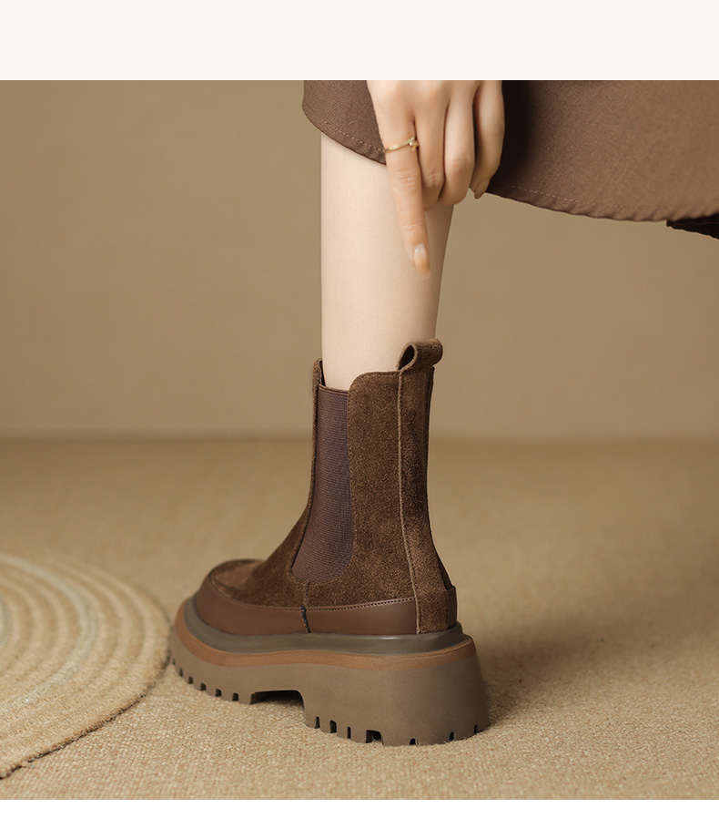【预售5天】轻巧舒适圆头松糕底切尔西靴女秋冬新款真皮复古磨砂厚底短筒骑士靴MDY&AM2169-20