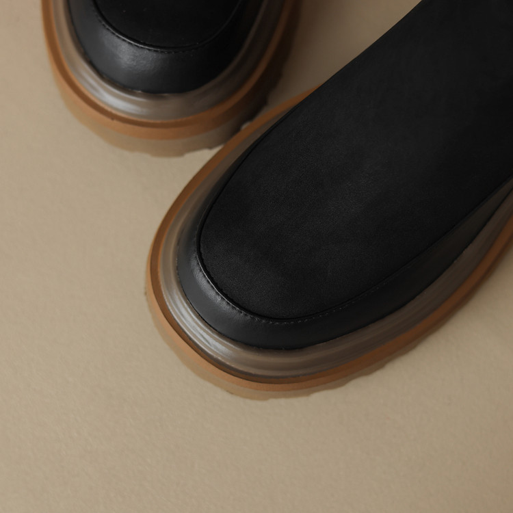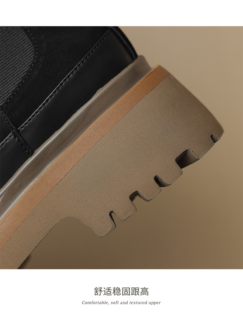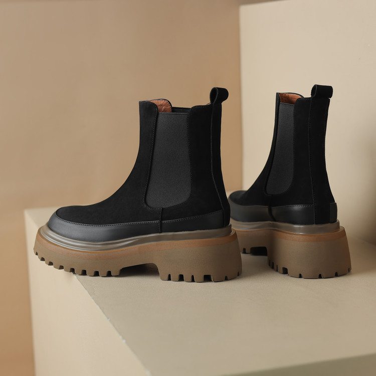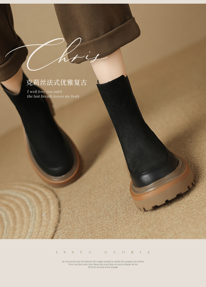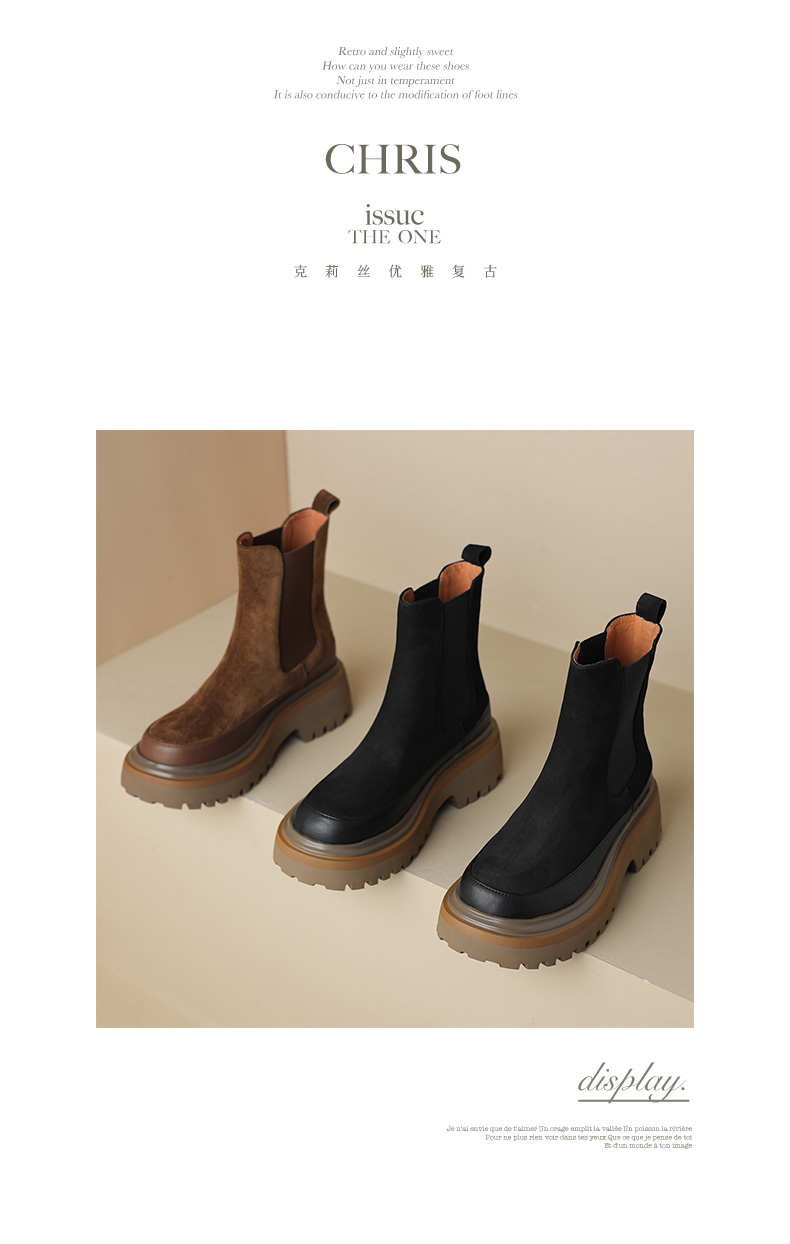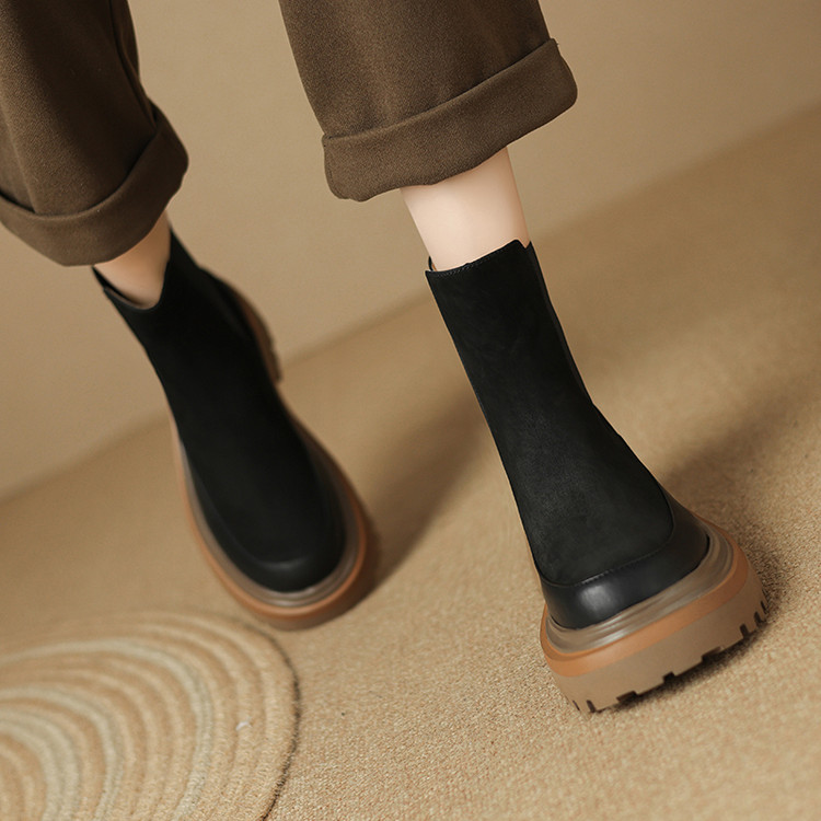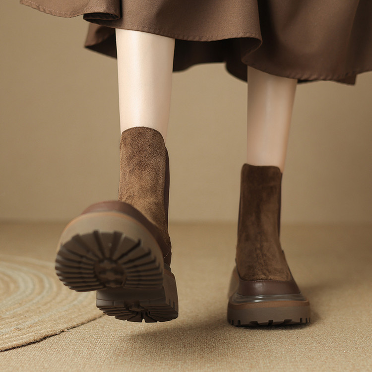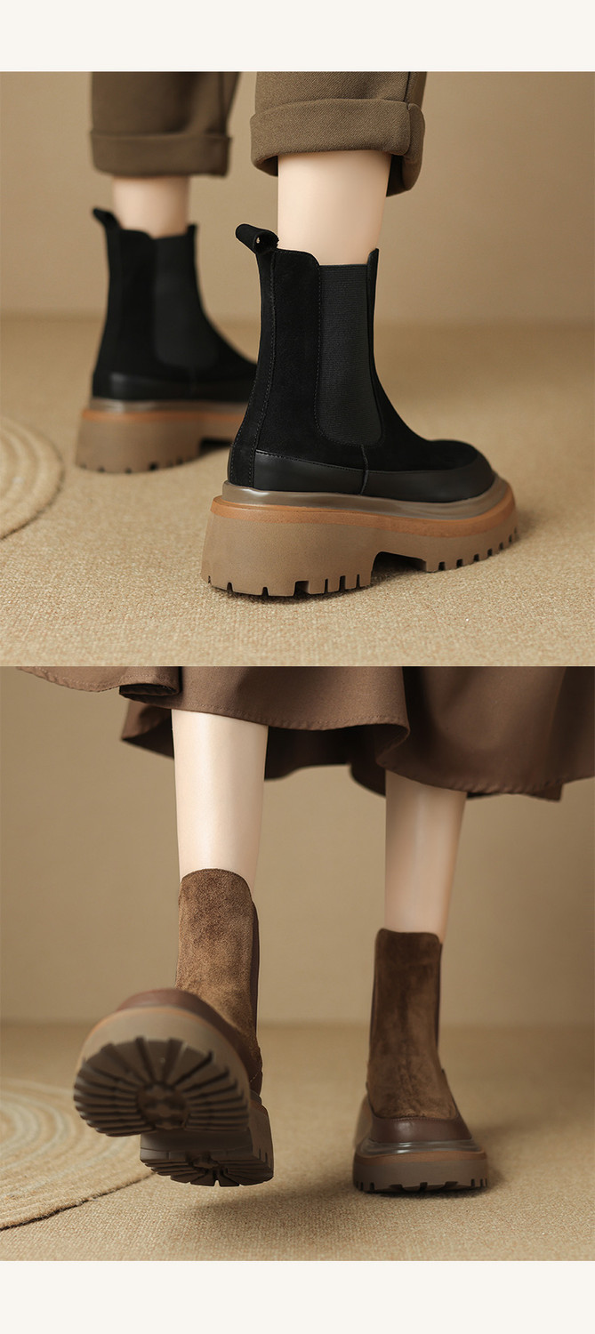 【预售5天】轻巧舒适圆头松糕底切尔西靴女秋冬新款真皮复古磨砂厚底短筒骑士靴MDY&AM2169-20