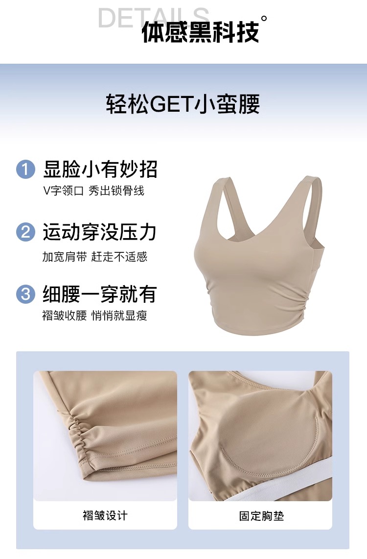 跃牌【禅语梵心】美背固定胸垫运动内衣女收腰裸感瑜伽服文胸WX5152