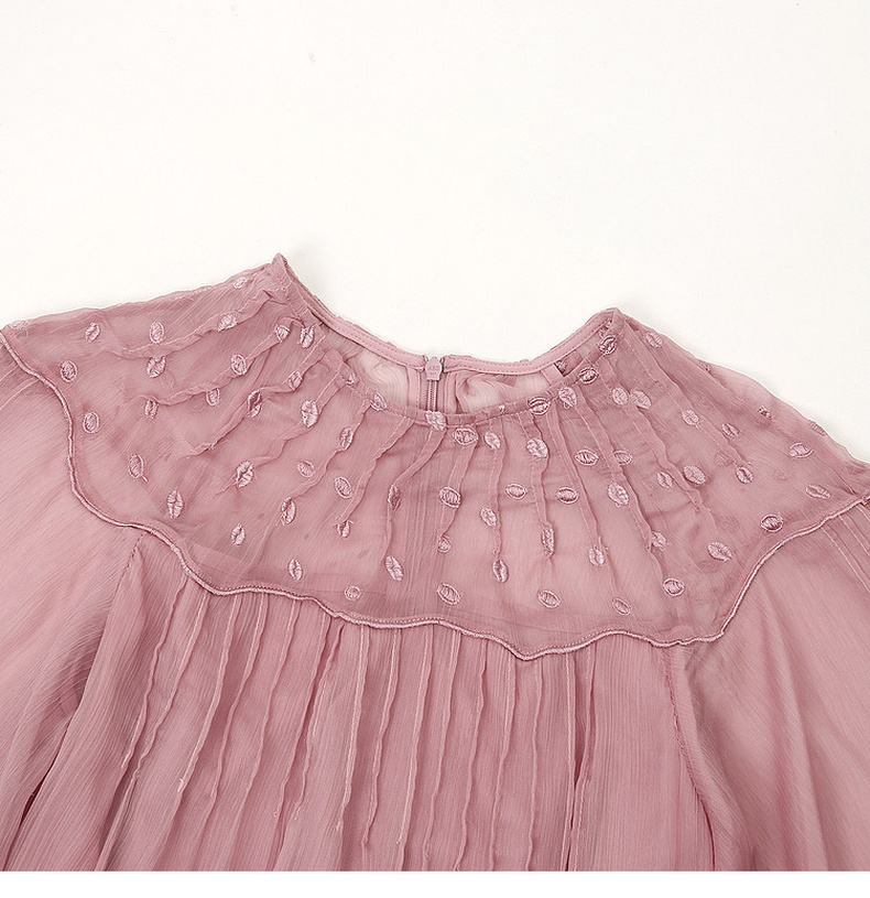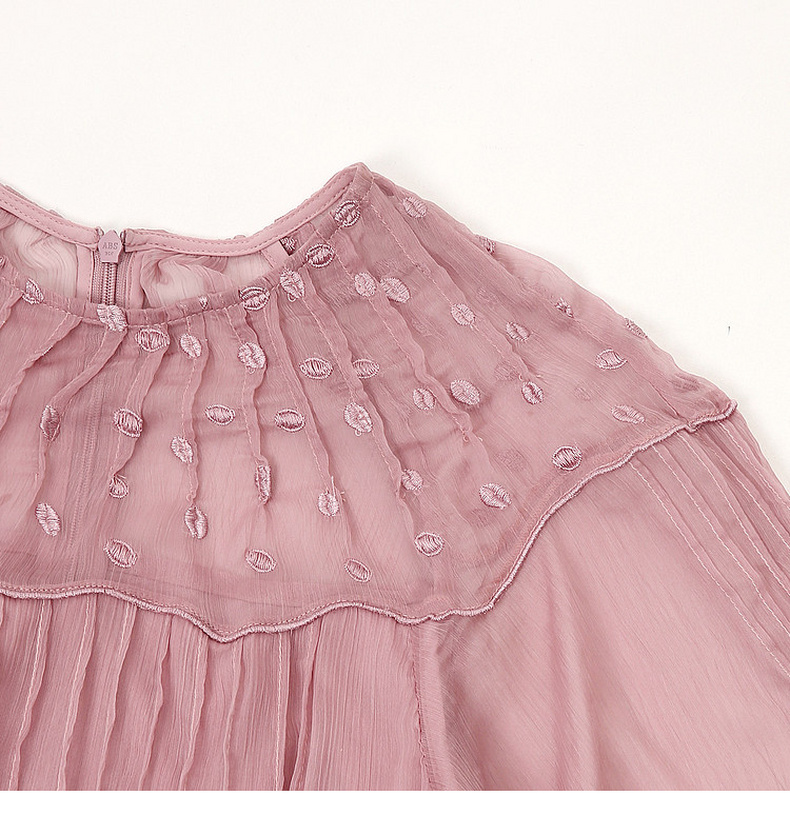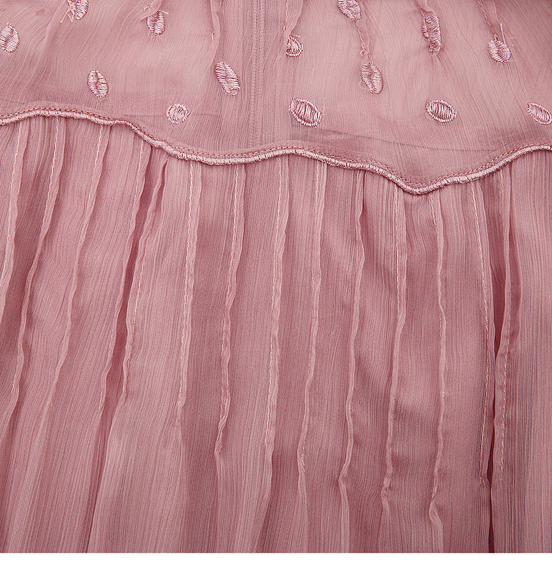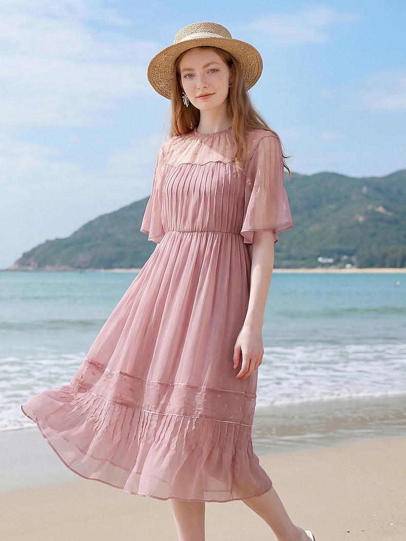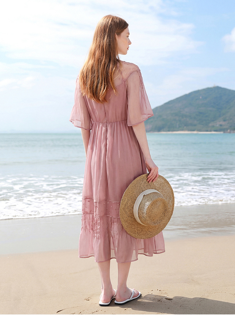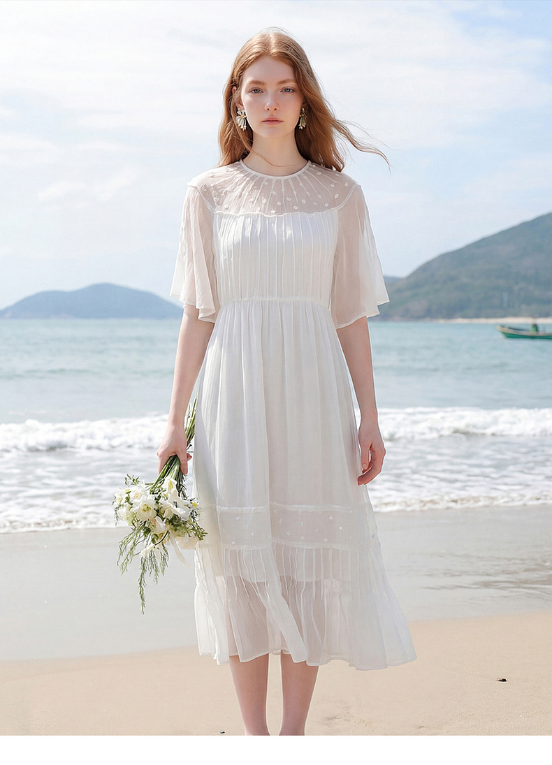 天猫同步【轻奢!沙滩裙】拉夏贝尔/La Chapelle刺绣重工圆领短袖宽松连衣裙轻奢女收腰显瘦度假风