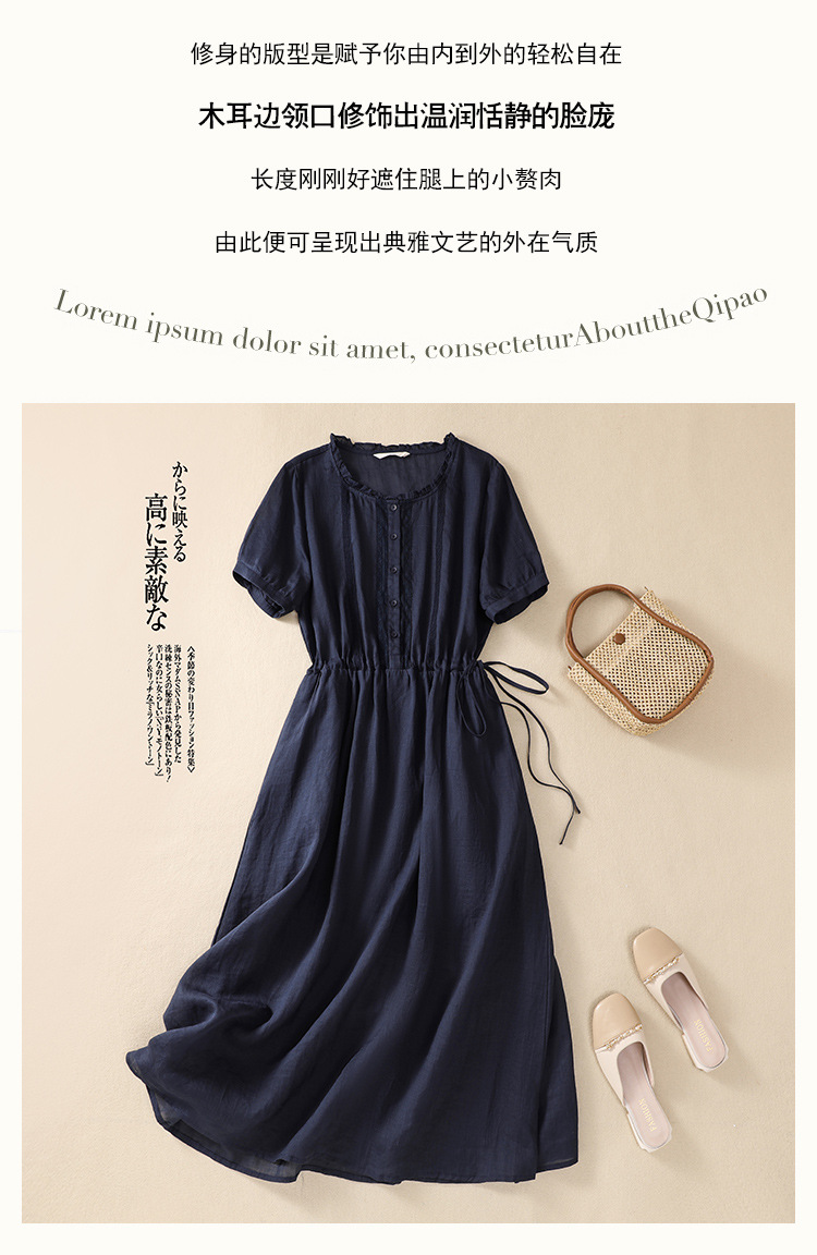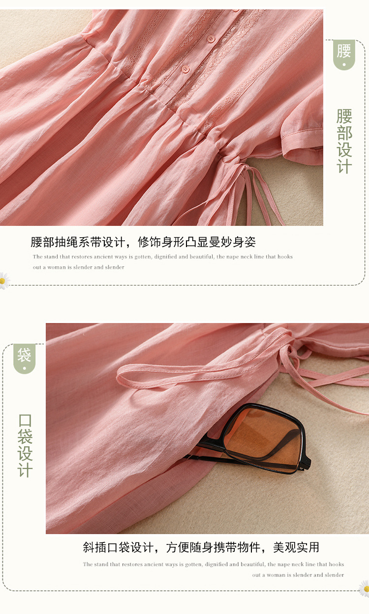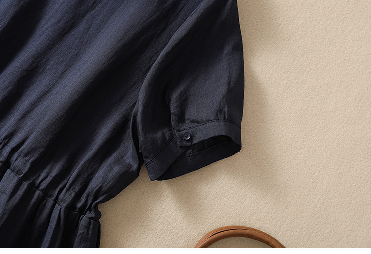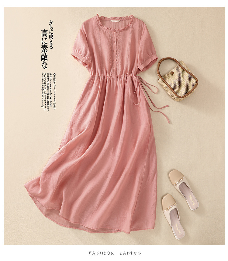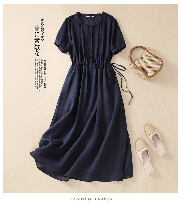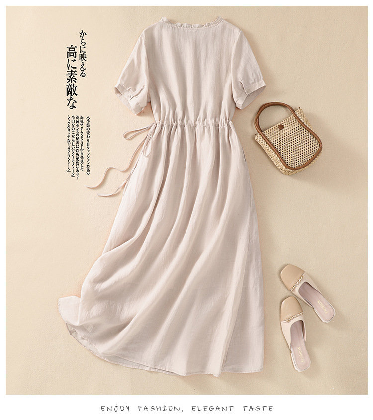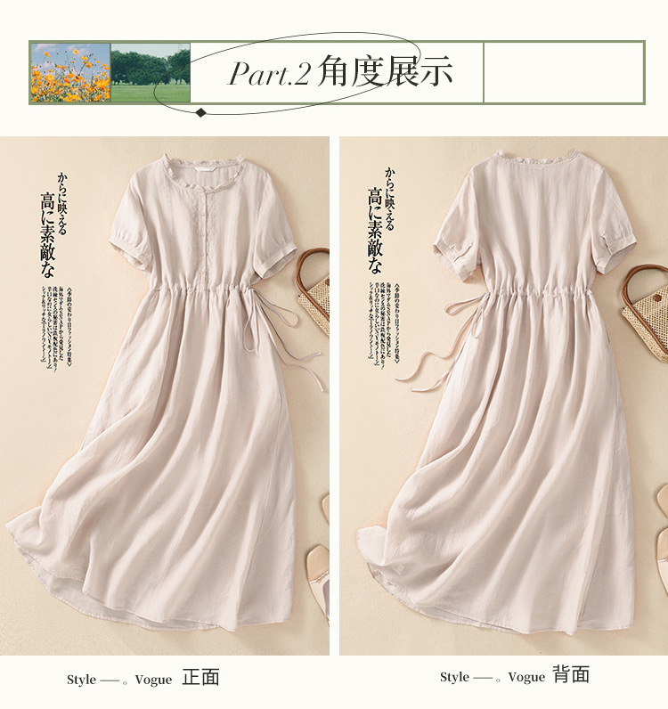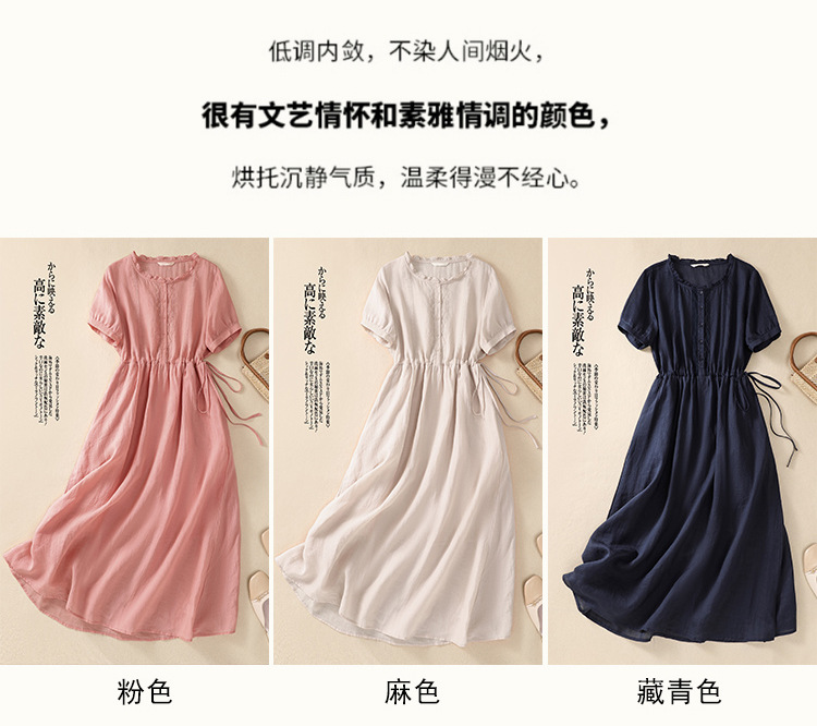 雀说新款棉麻文艺通勤简约纯色轻薄显瘦中长款连衣裙AL9056