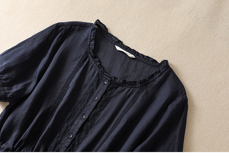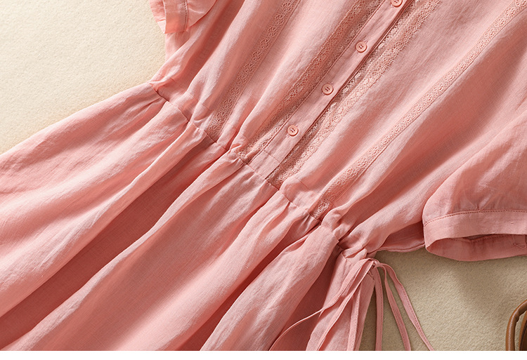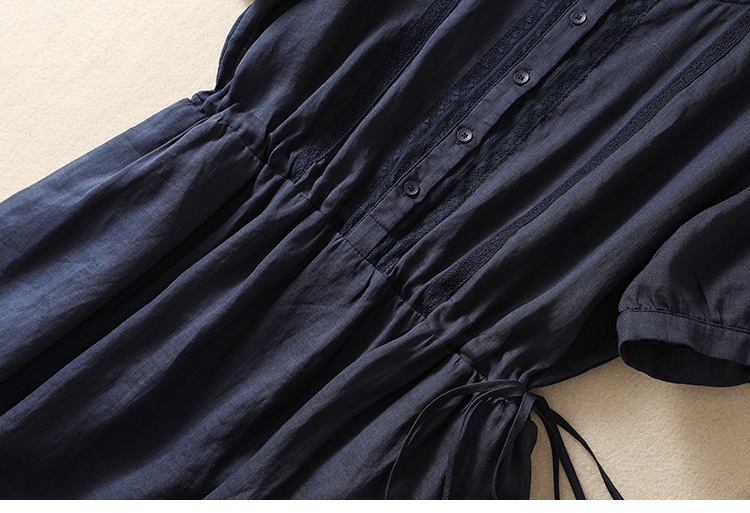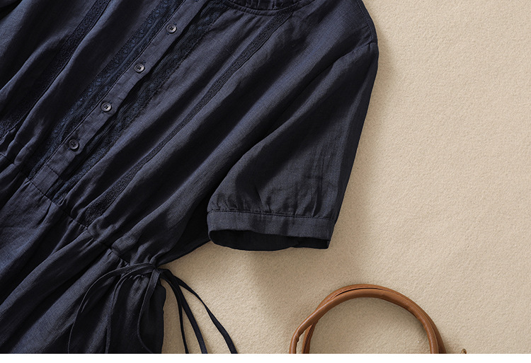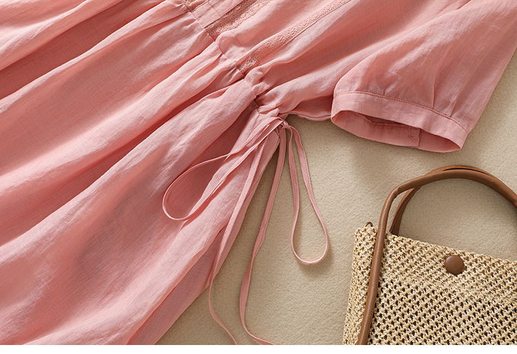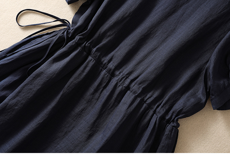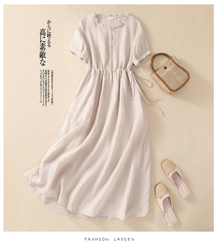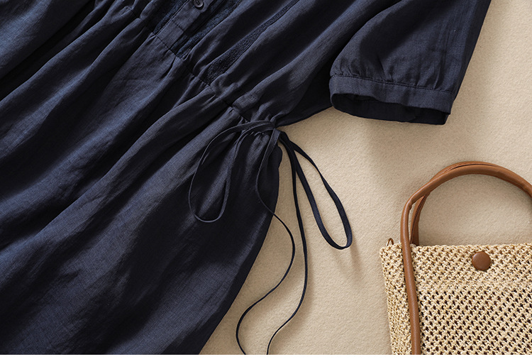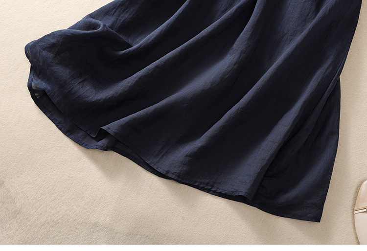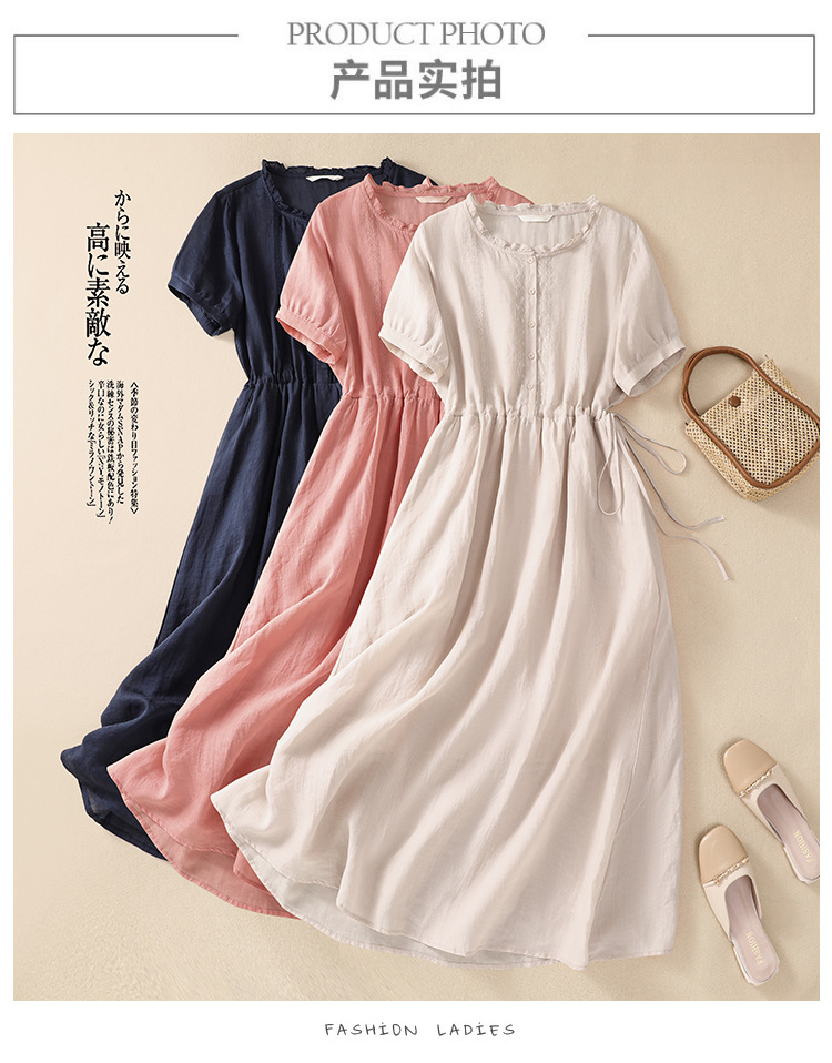 雀说新款棉麻文艺通勤简约纯色轻薄显瘦中长款连衣裙AL9056