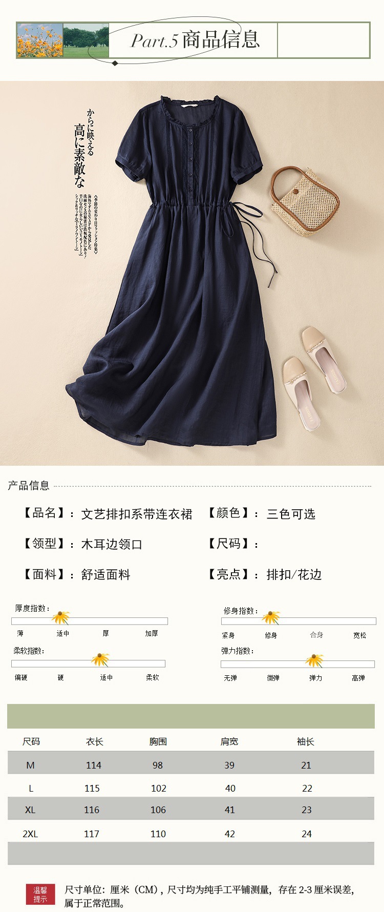面料:棉麻混纺
